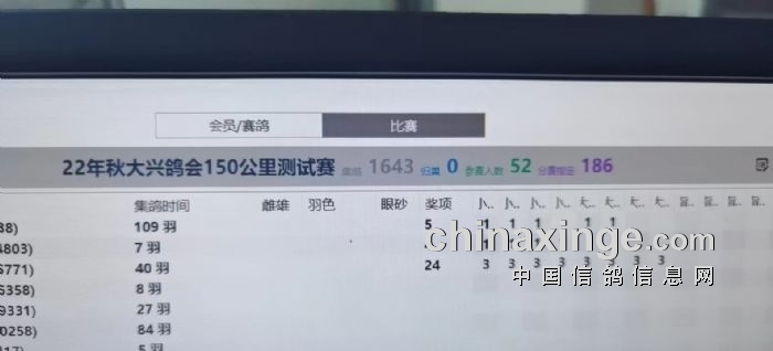 25年大兴“金洲杯”千元环一关有效归巢(按棚号)