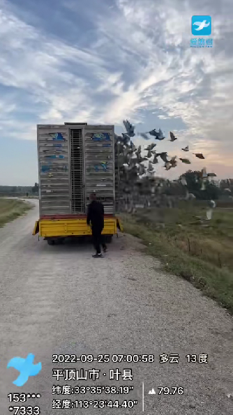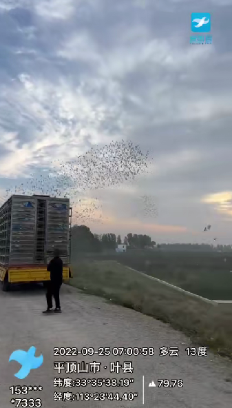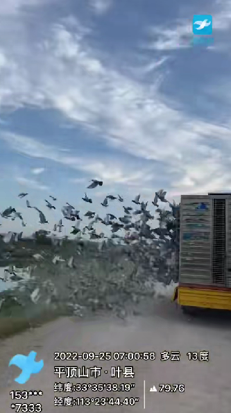 各位鸽友大家好! 襄阳市信鸽协会举办的2022年秋季200公里普赛于9月25日07:00分在叶县(东经:113度23分20.93秒,北纬33度35分46.08秒)开笼,鸽群走势良好。 预祝各位鸽友取得好成绩!