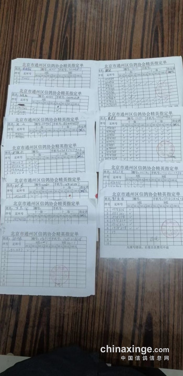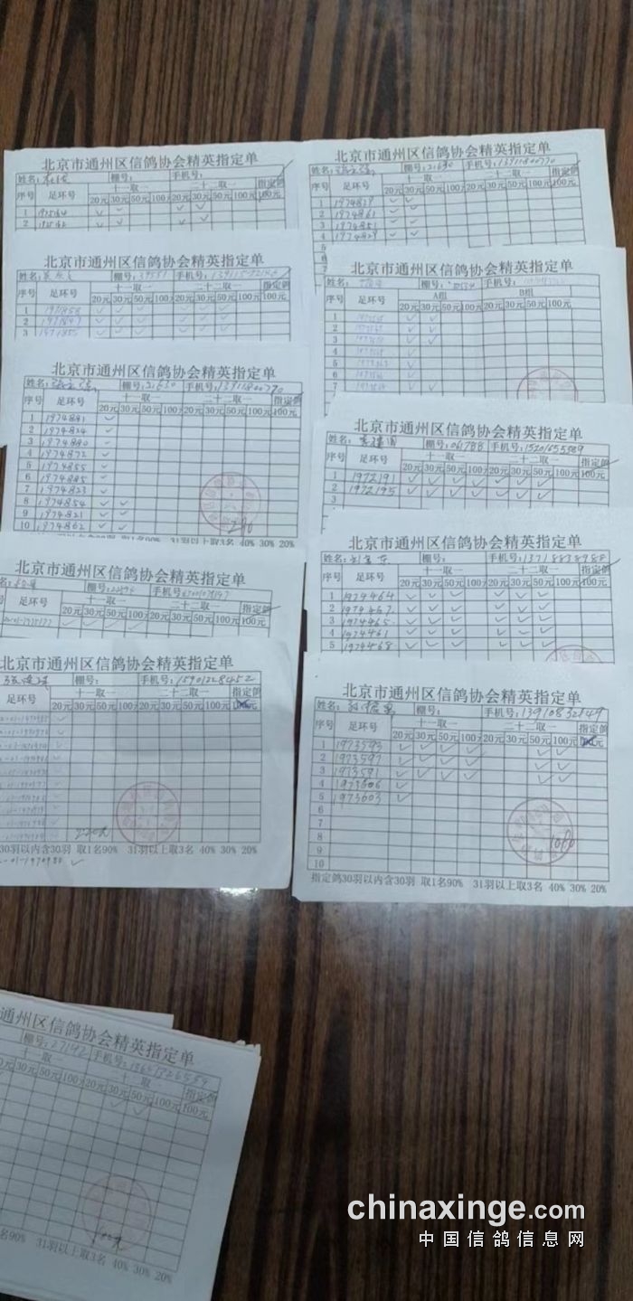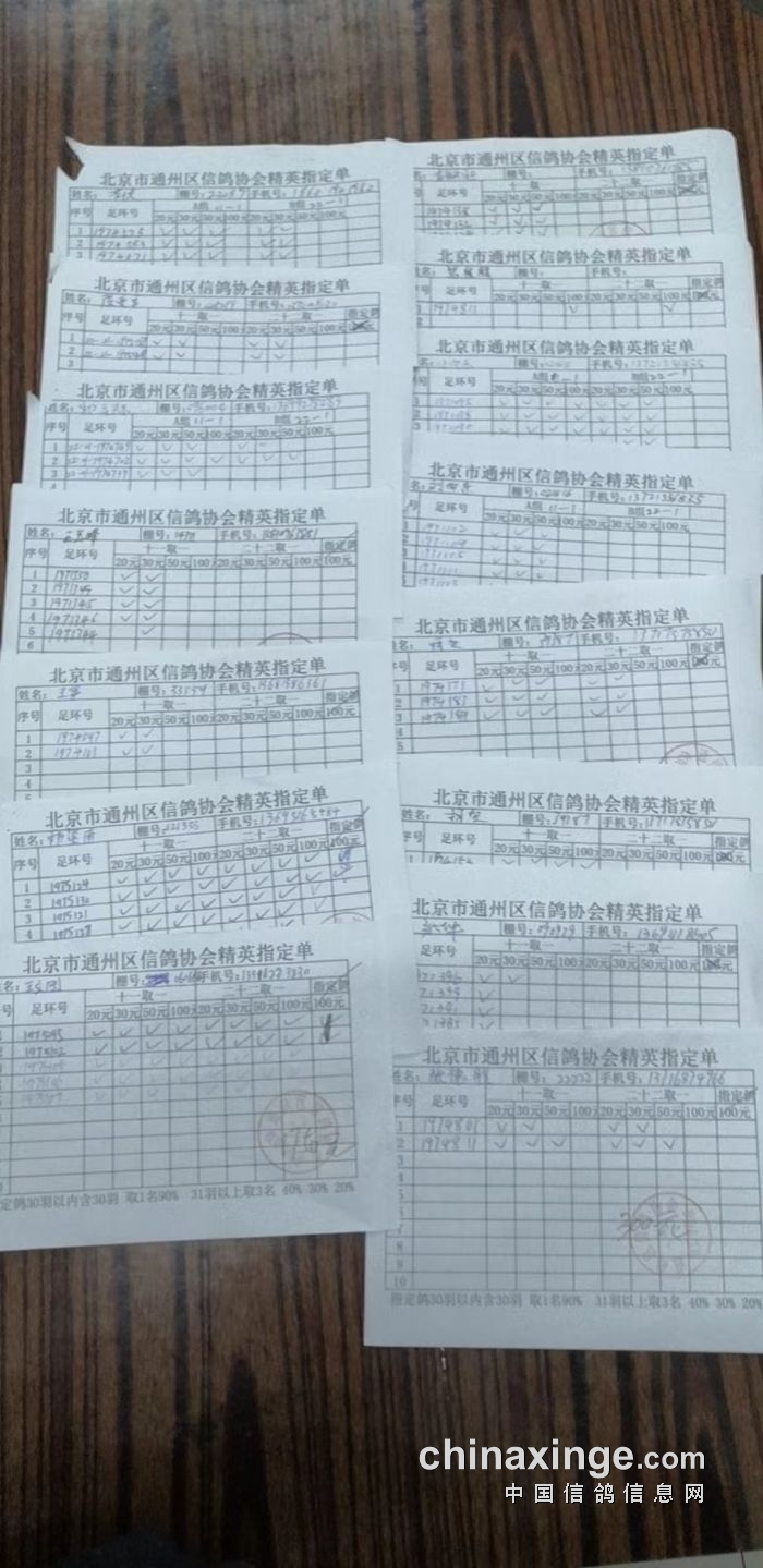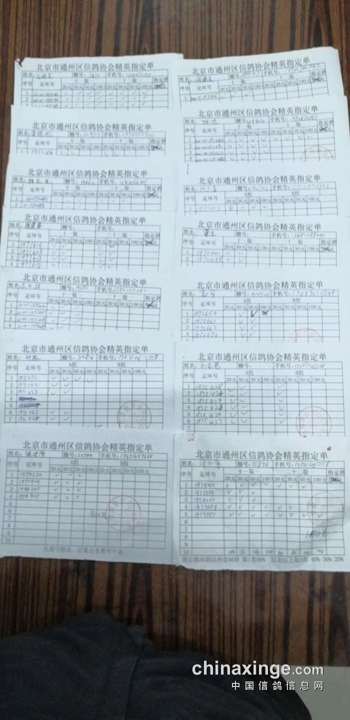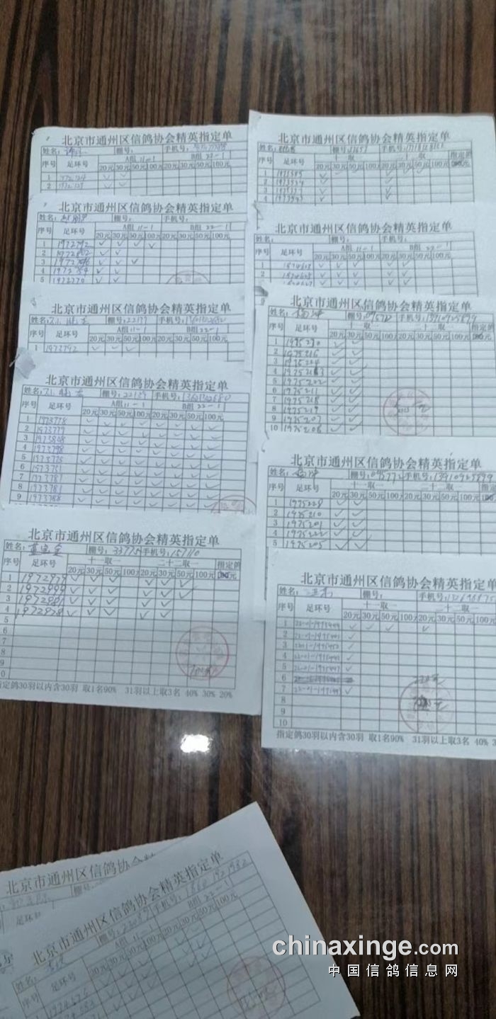 通州区信鸽协会2025年11月26日500公里现场参赛原单