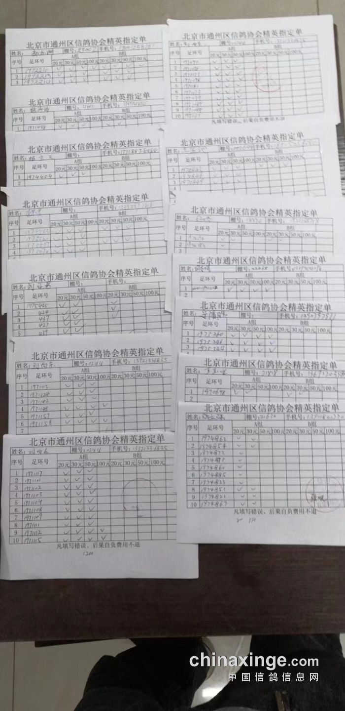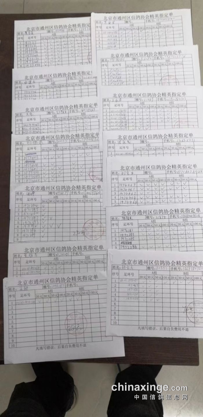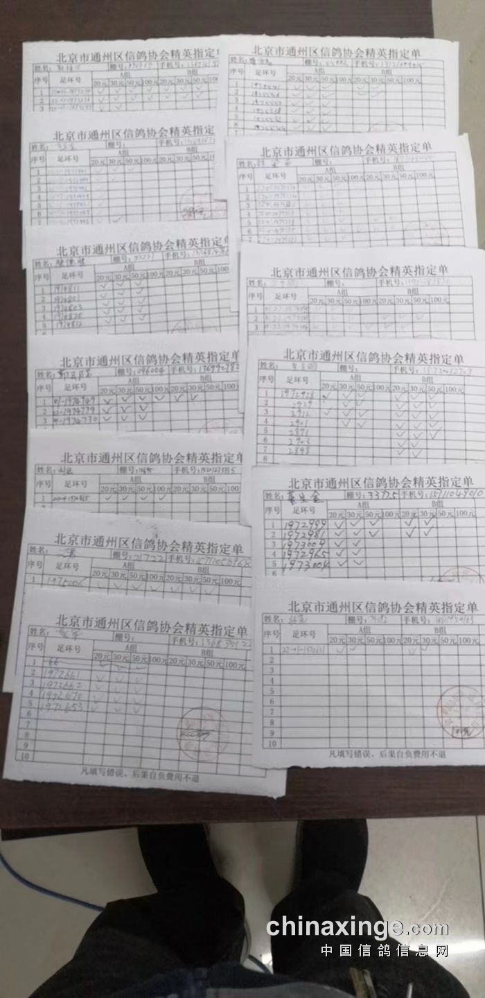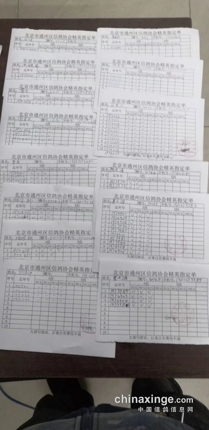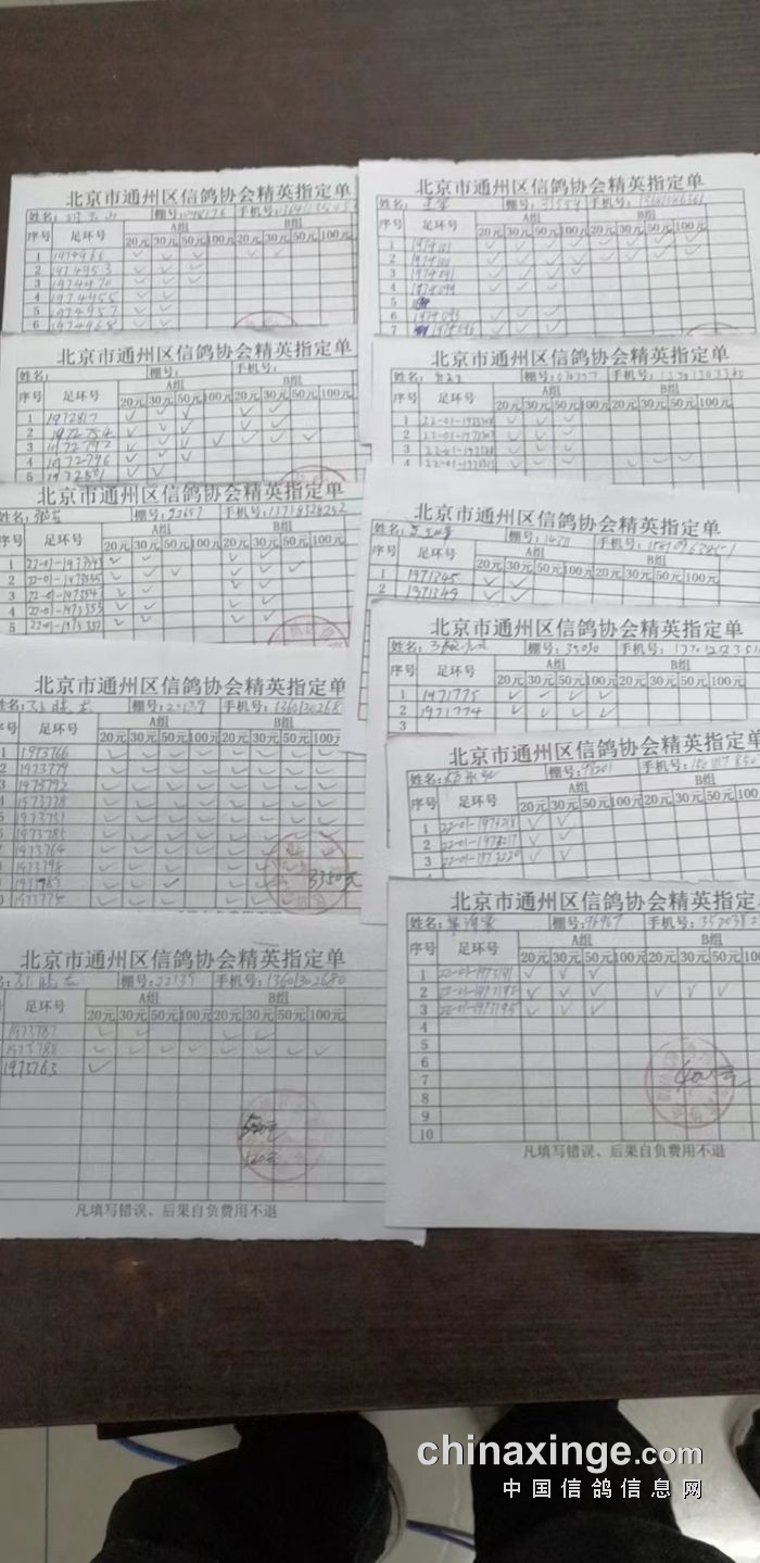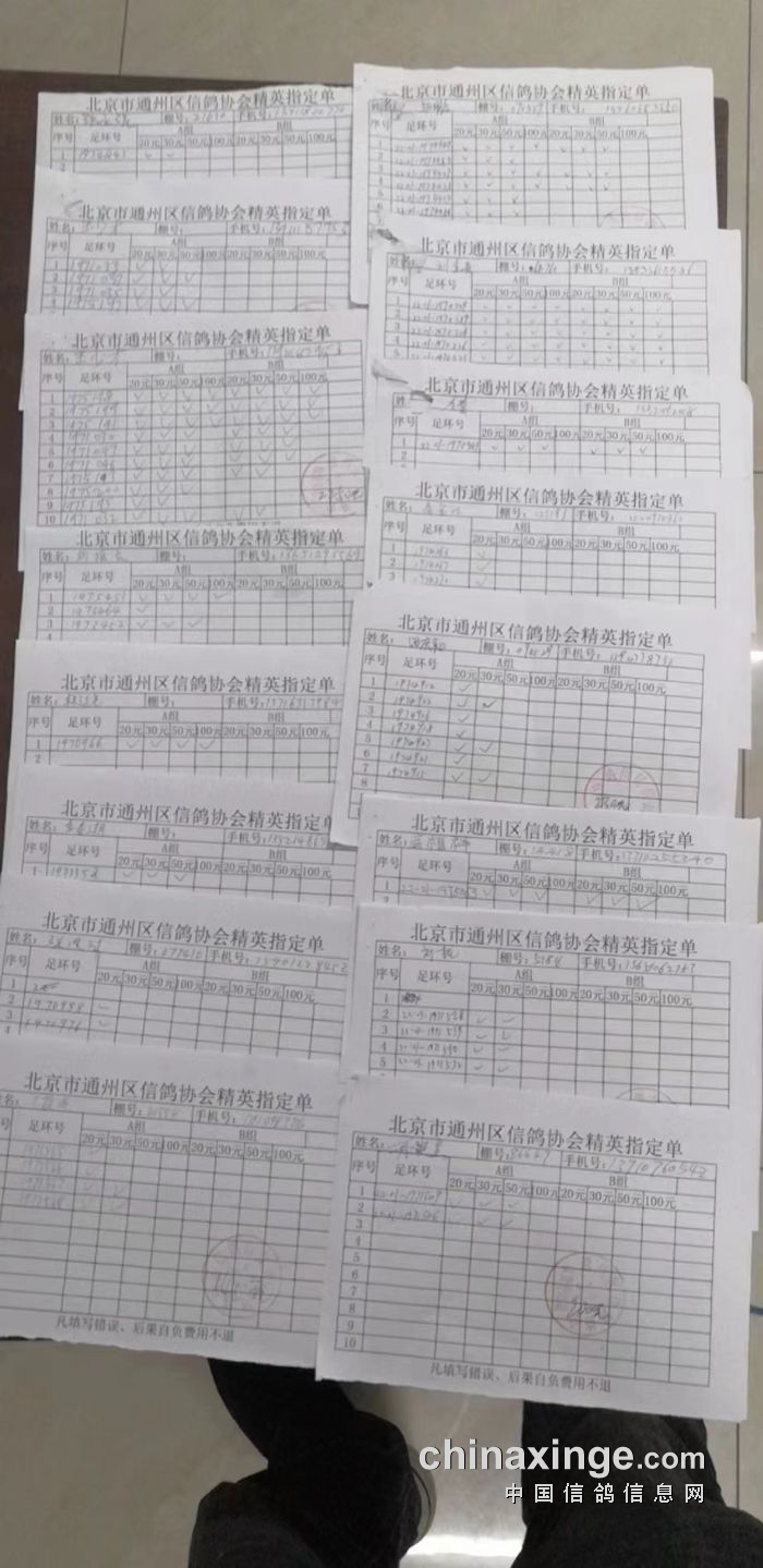 通州区信鸽协会2025年11月26日500公里现场参赛原单