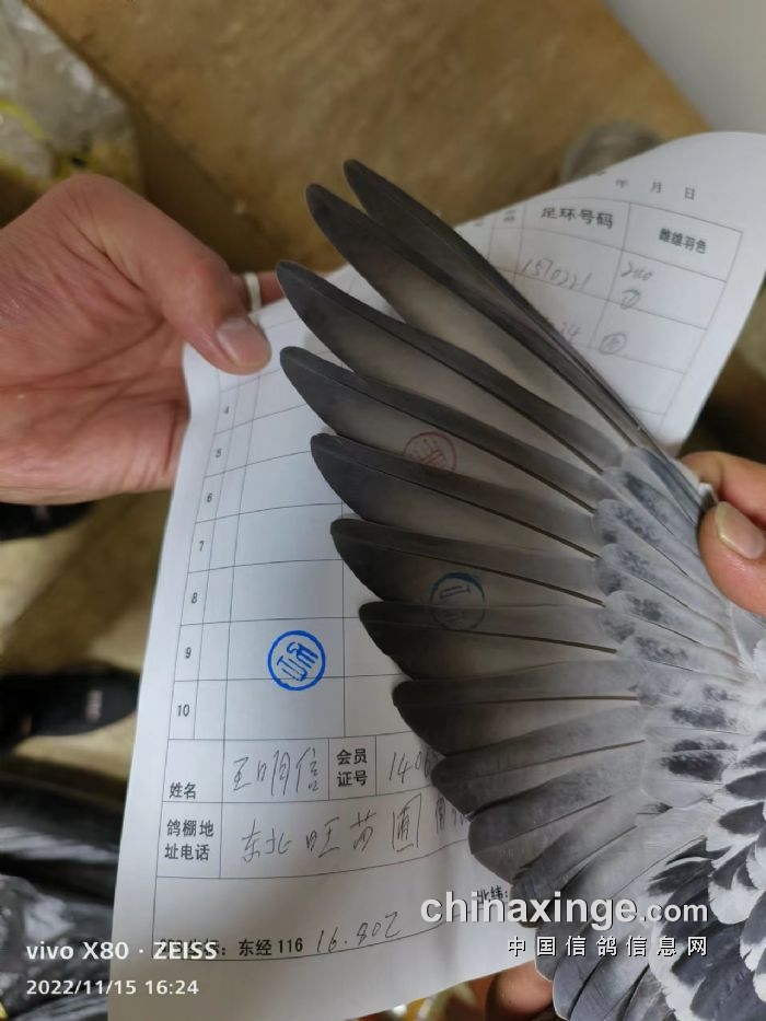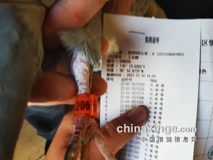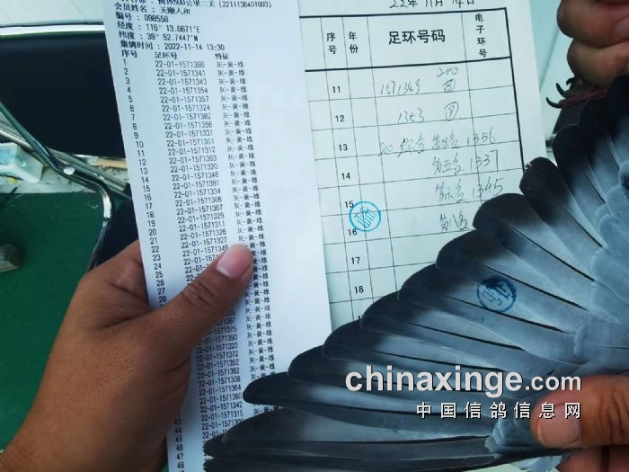2022年丰台信鸽协会200元特比环第二关菏泽500公里单关前十查棚