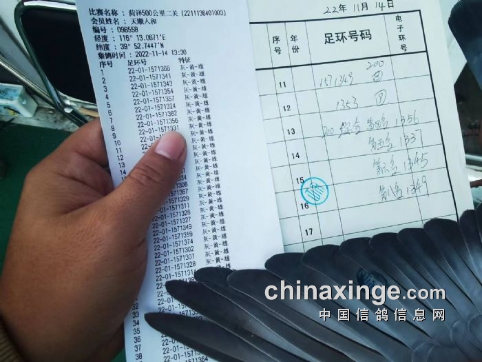 2022年丰台信鸽协会200元特比环二关综合前十查棚