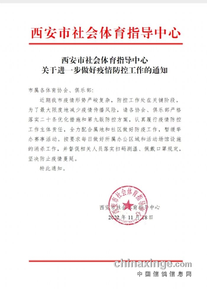 西安市社会体育指导中心关于进一步做好疫情防控工作的通知