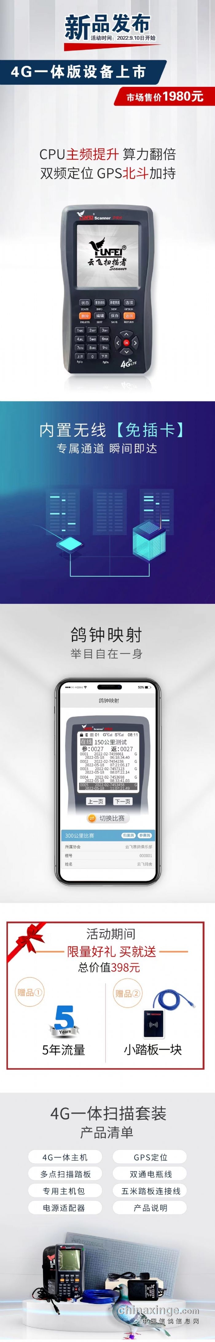 旧主机+旧模块+旧踏板+1000换新的一体扫描套装,送5年流量及新建赛鸽用的小踏板一块总价值398