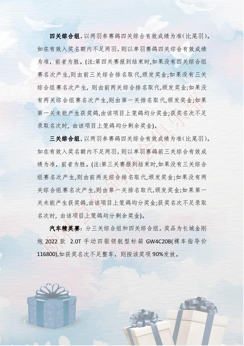 柳林县信鸽协会2023年秋季【四关鸽王】特比环精英赛规程