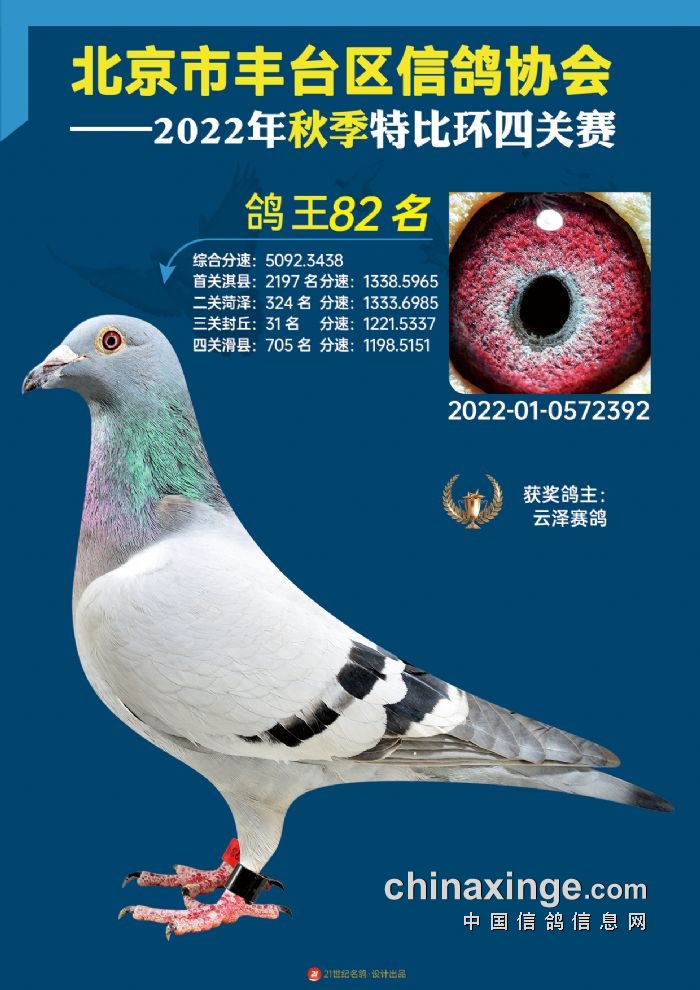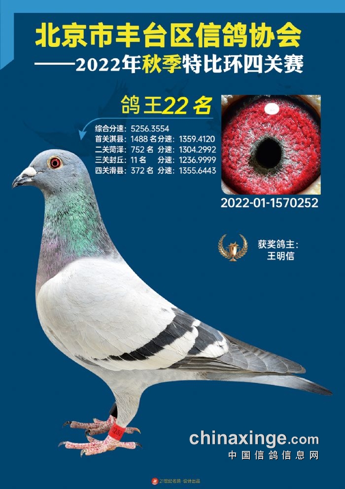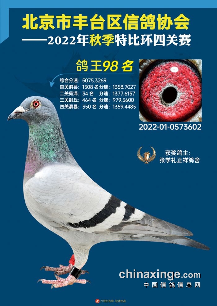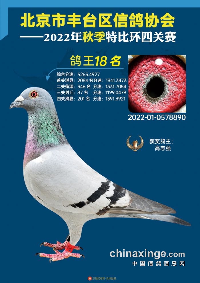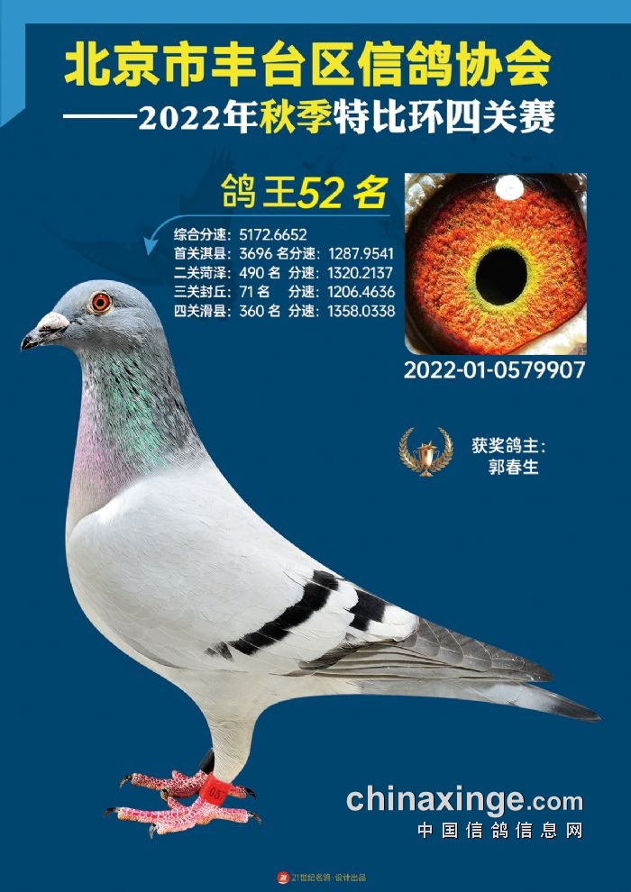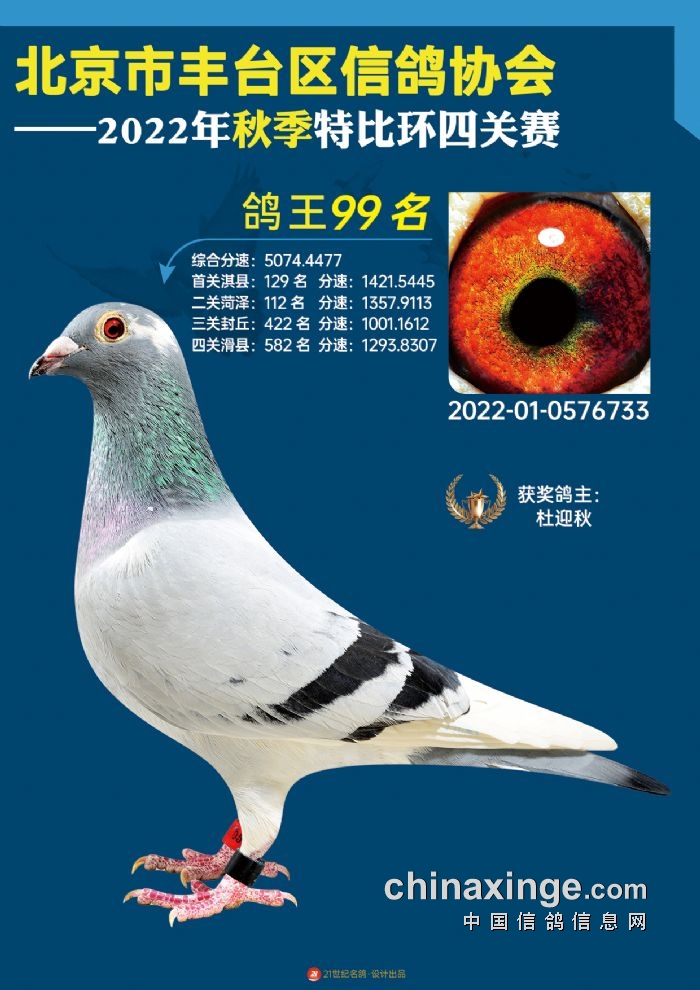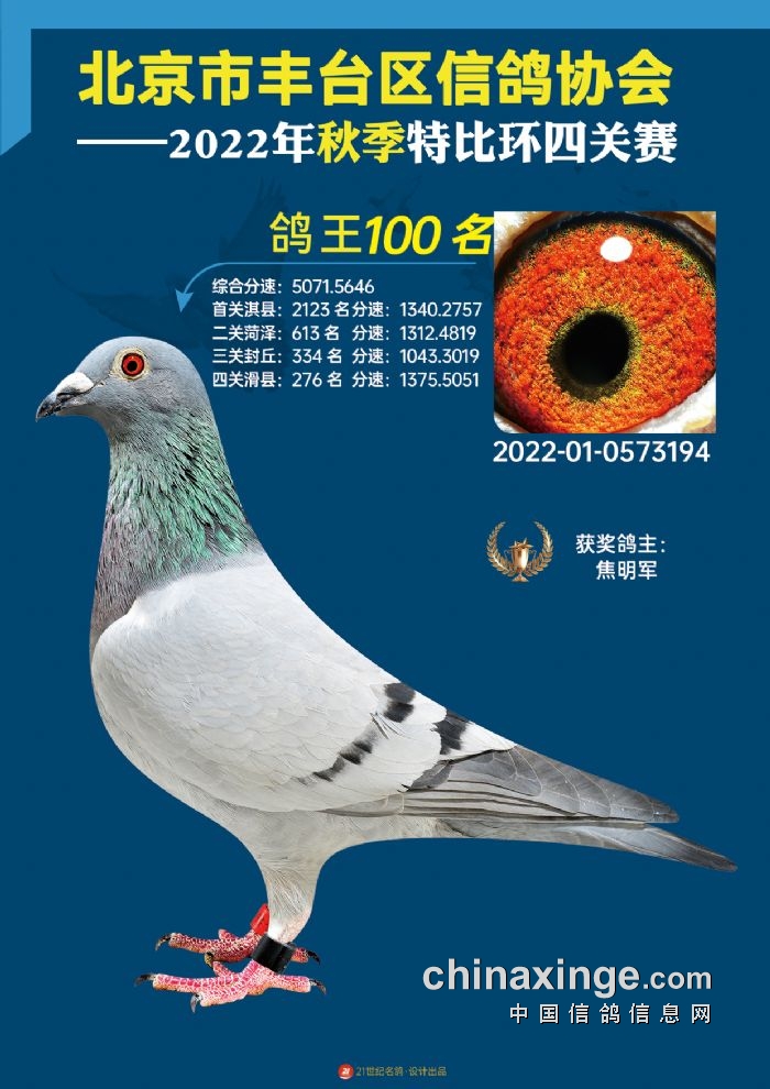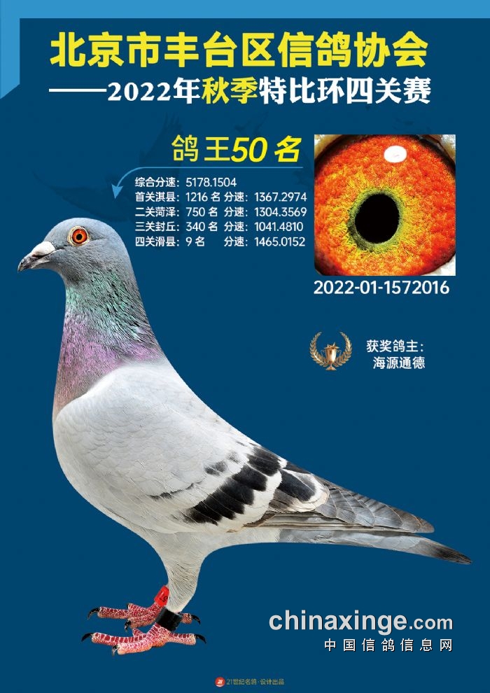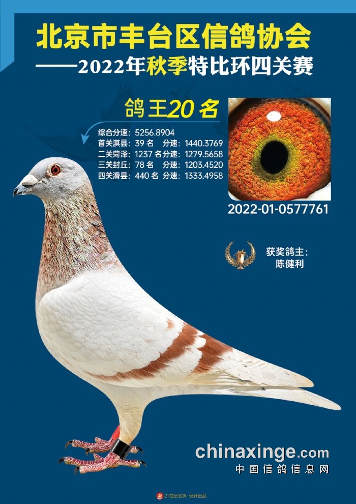 2022年丰台鸽会百元特比环四关综合鸽王前100名照片