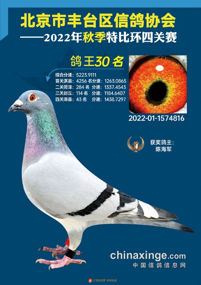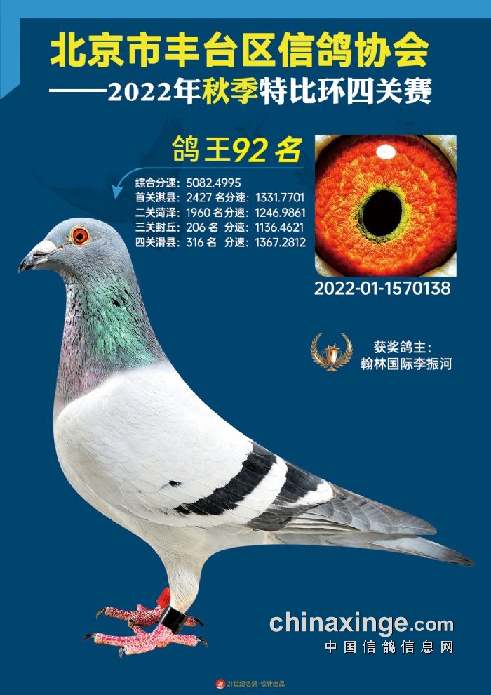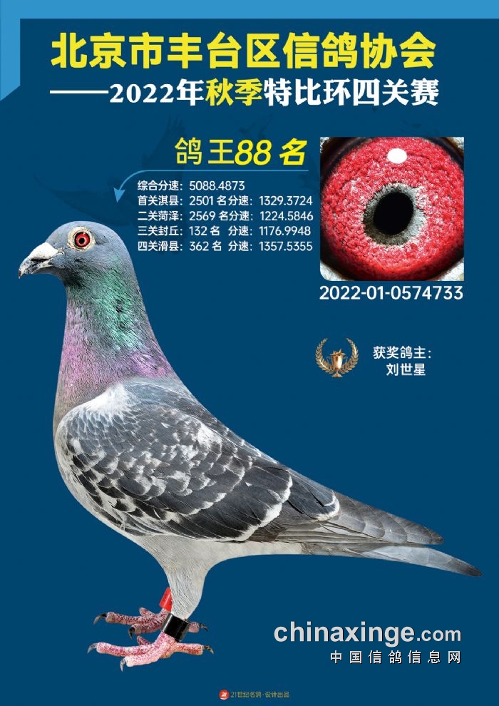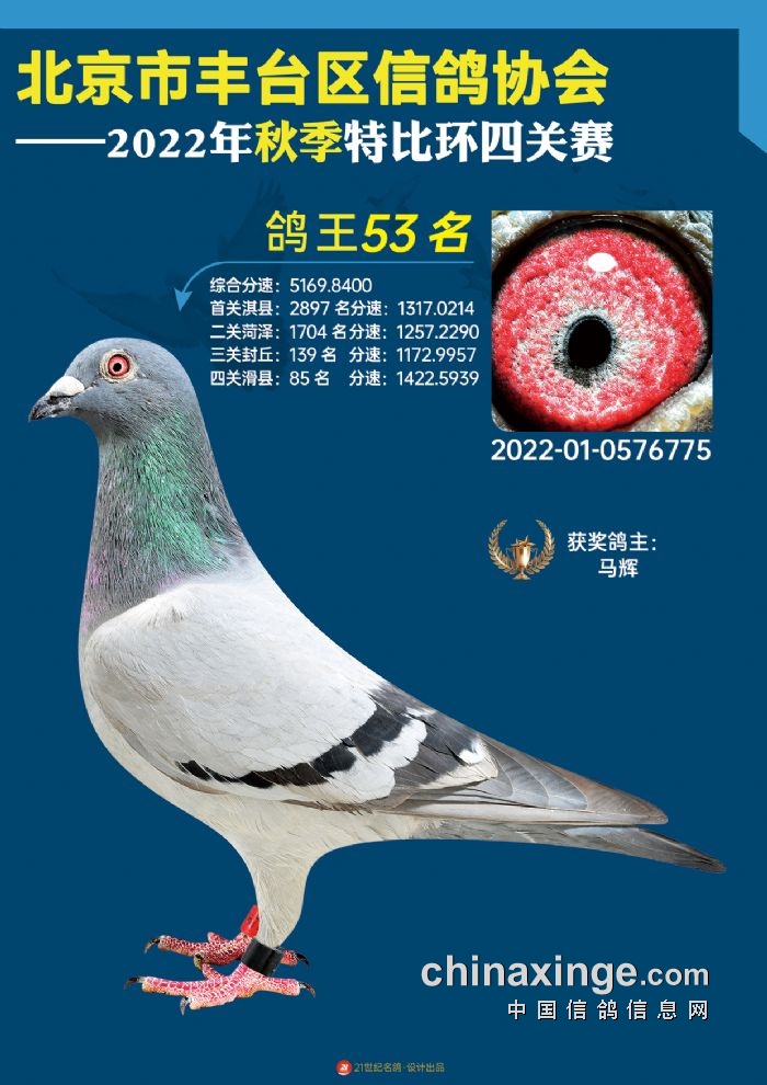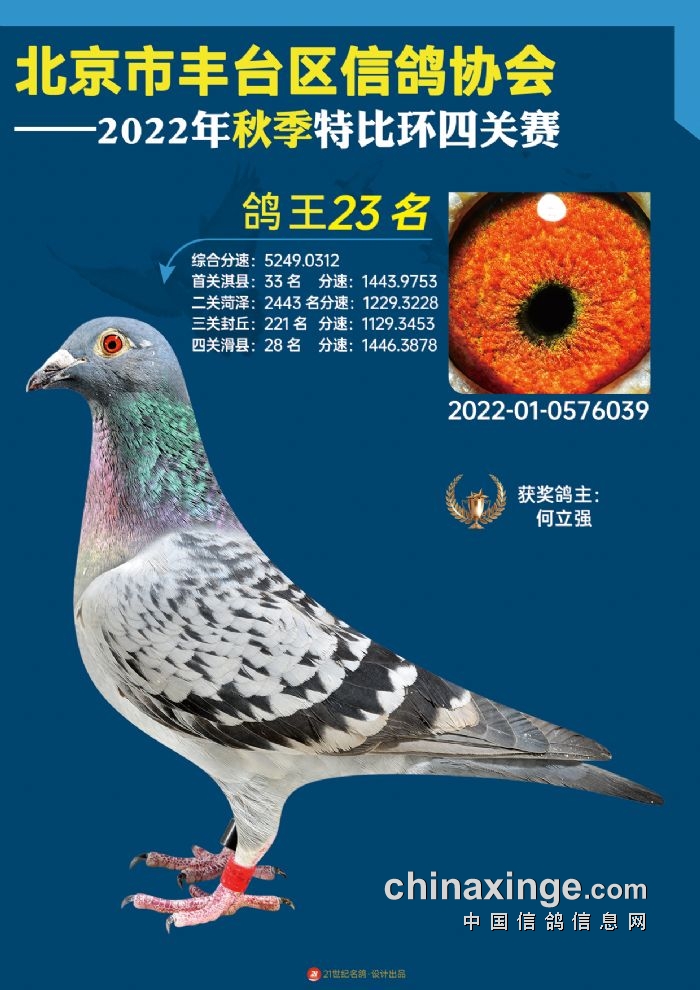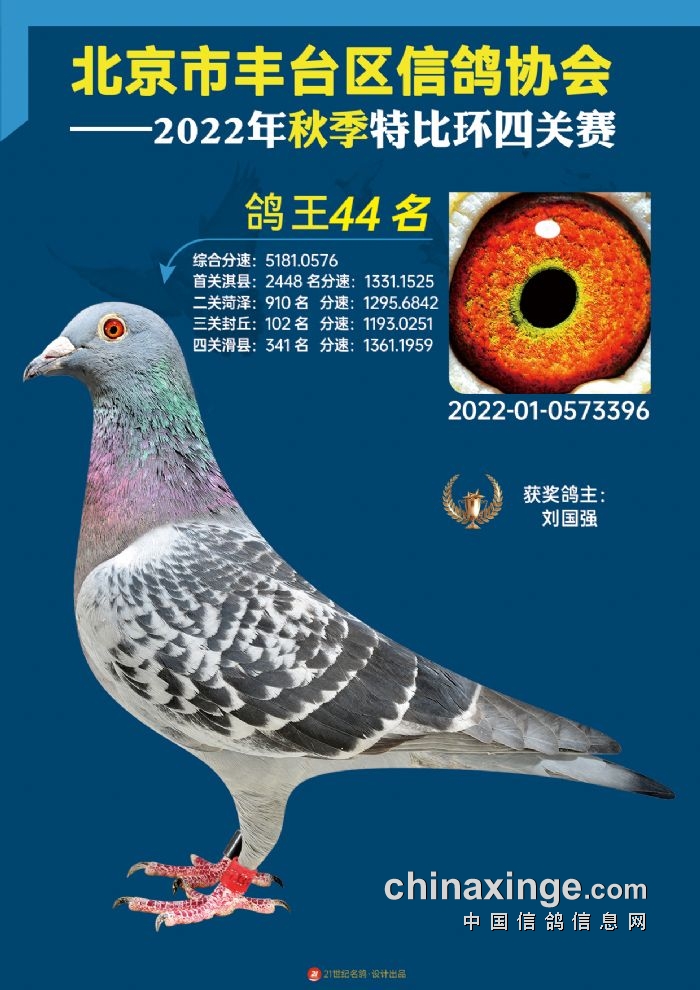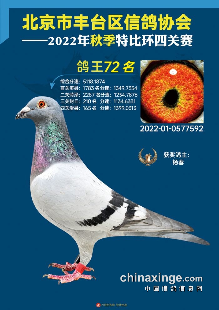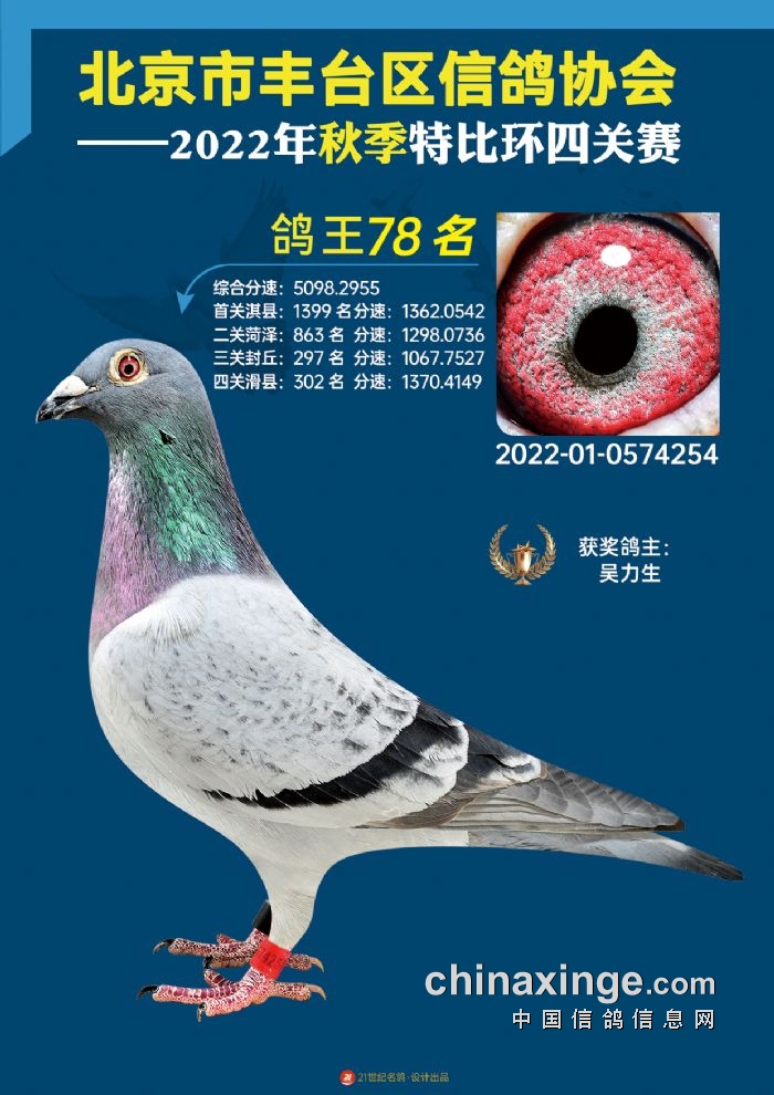 2022年丰台鸽会百元特比环四关综合鸽王前100名照片