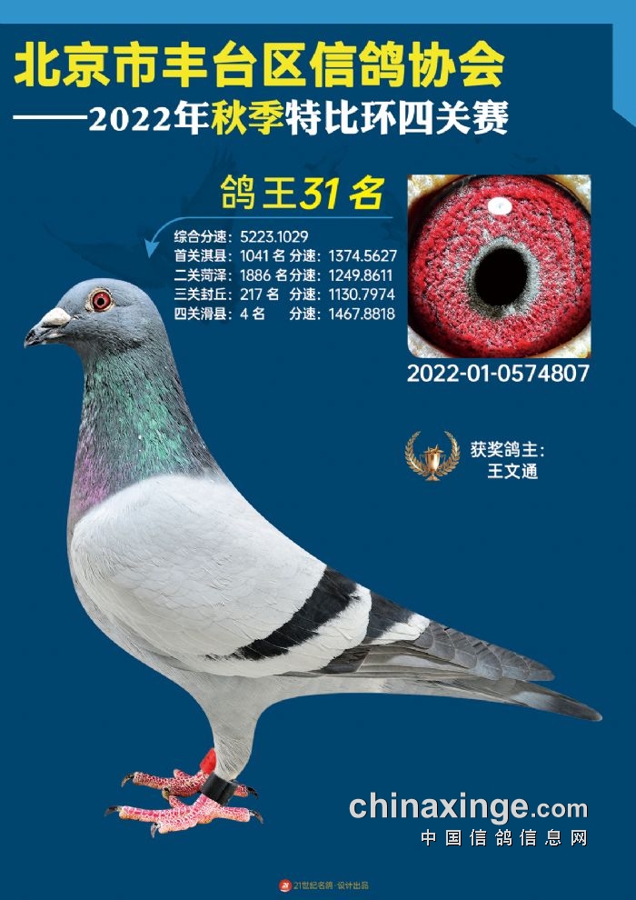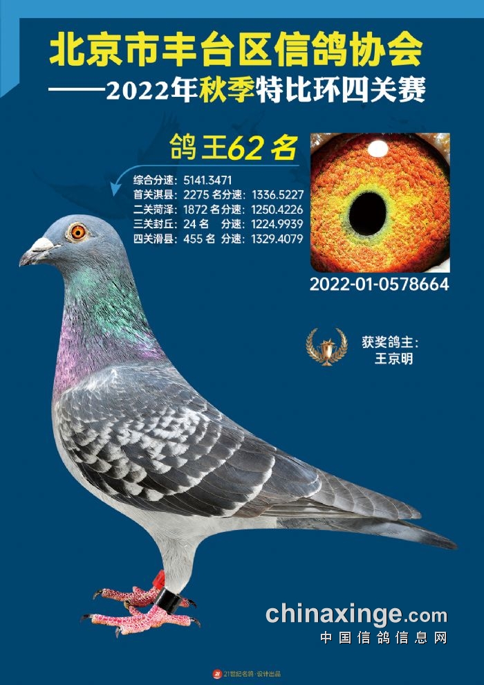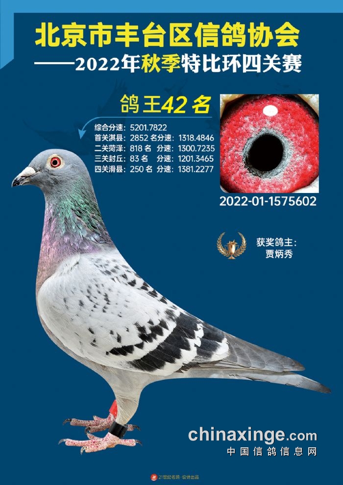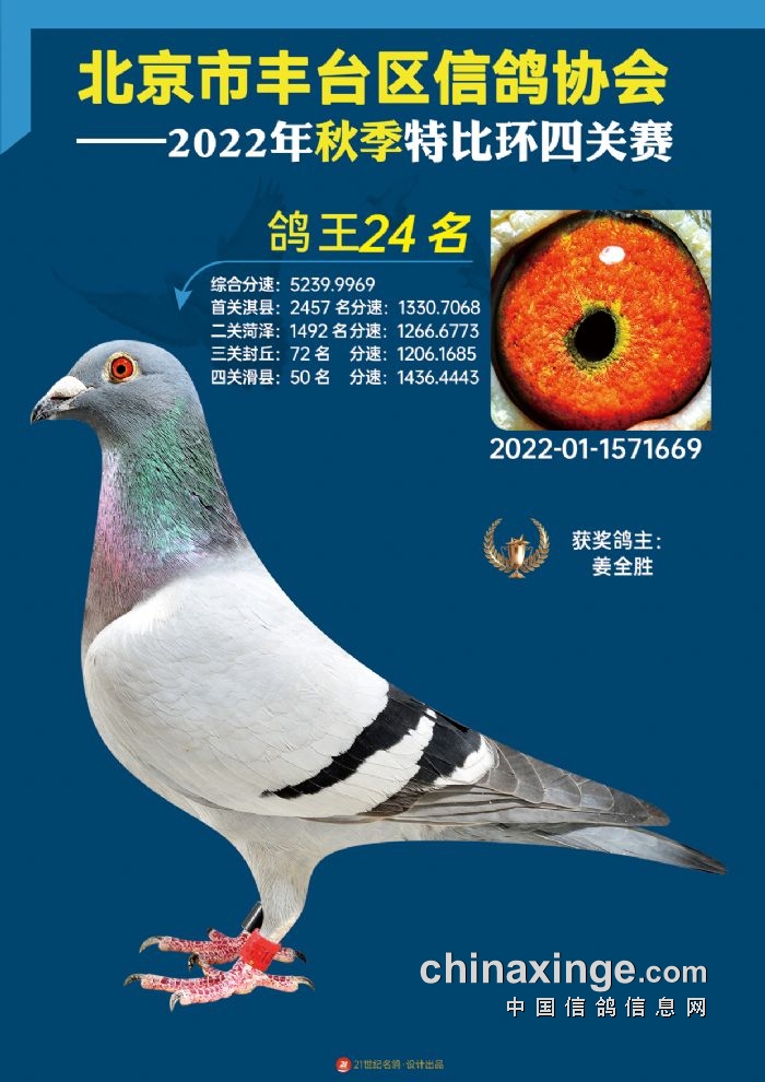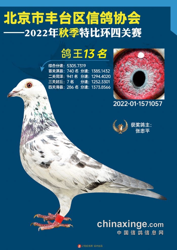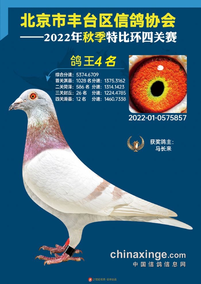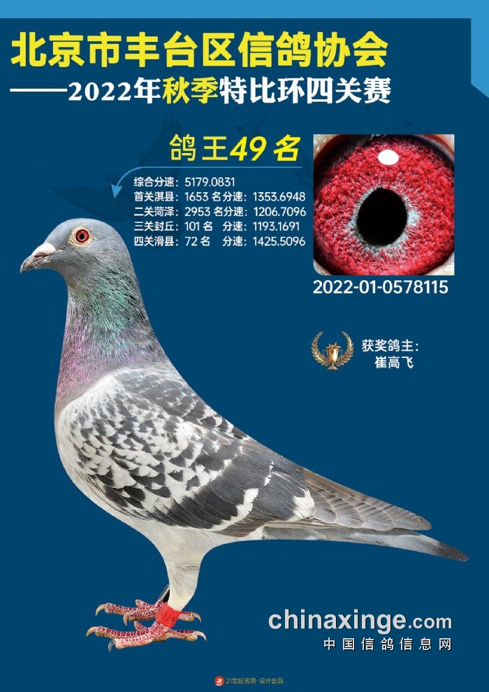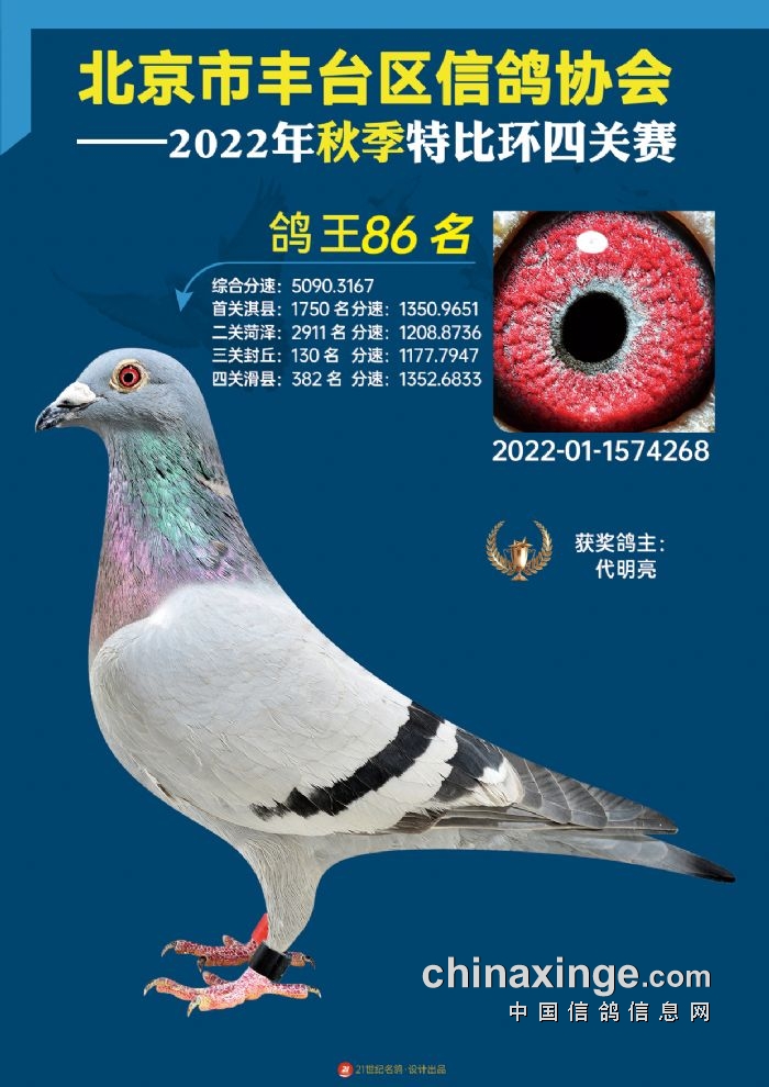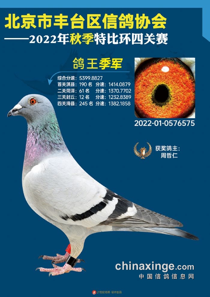 2022年丰台鸽会百元特比环四关综合鸽王前100名照片