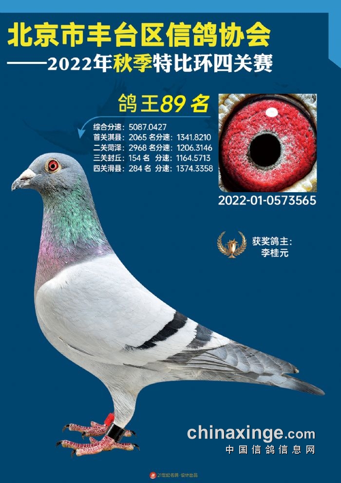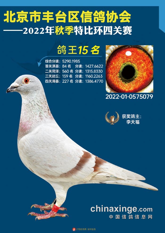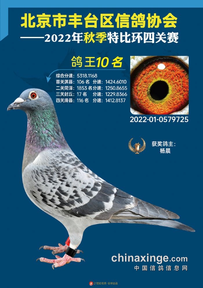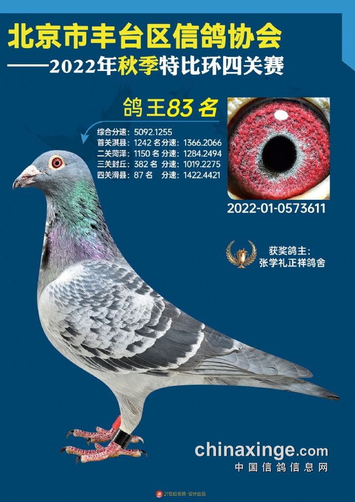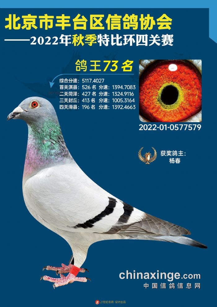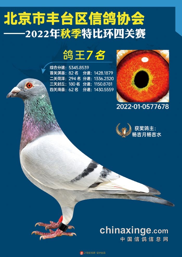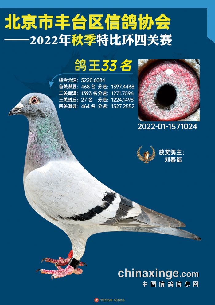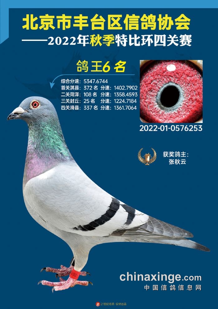 2022年丰台鸽会百元特比环四关综合鸽王前100名照片