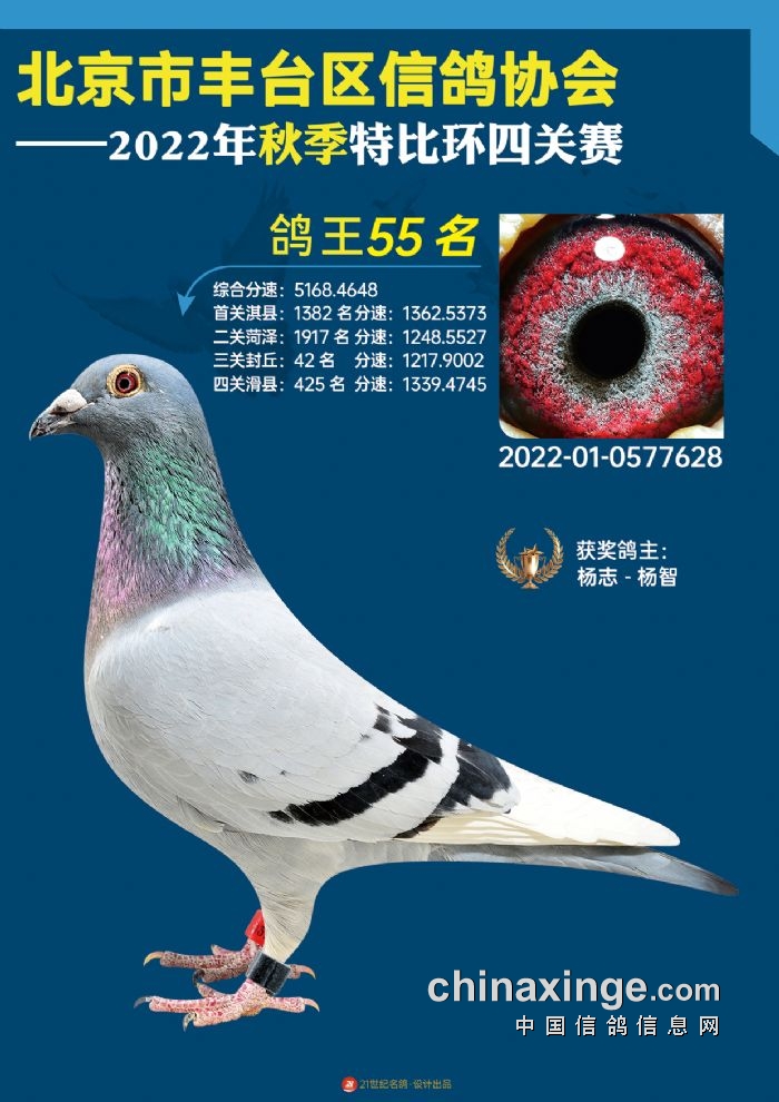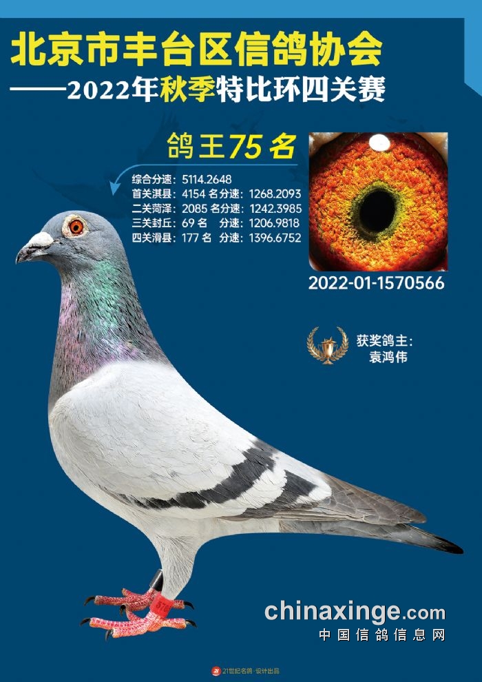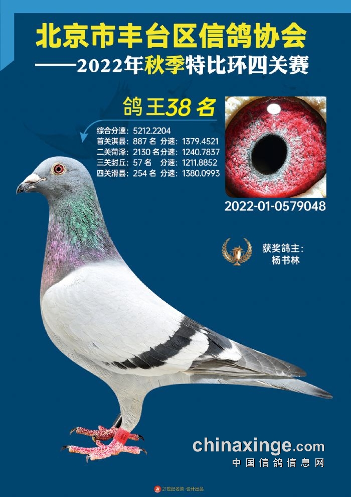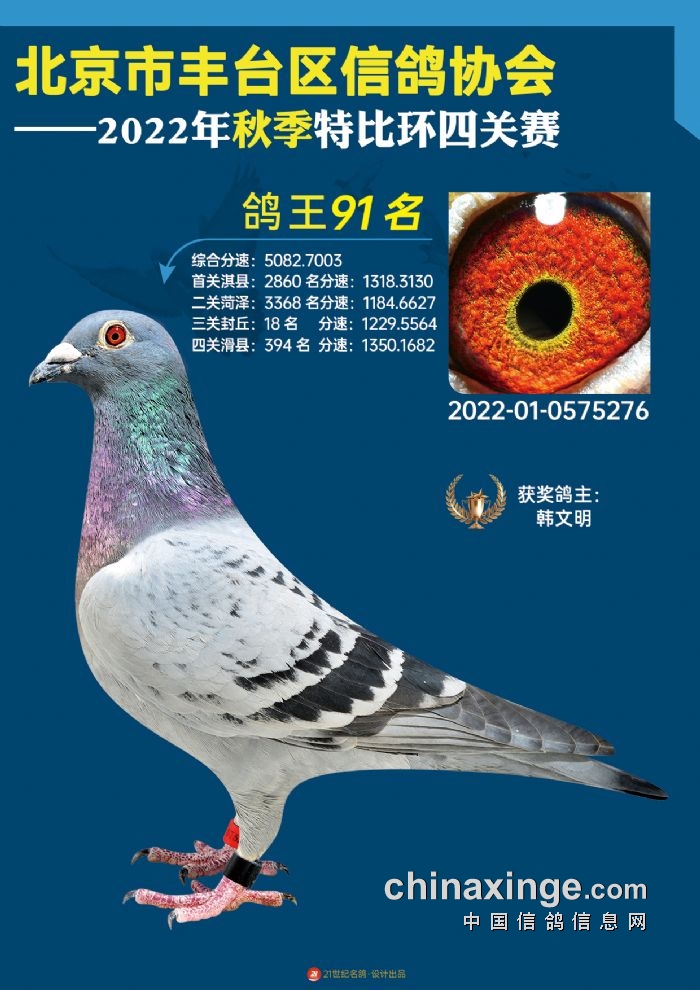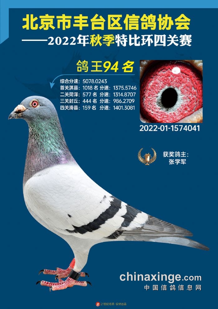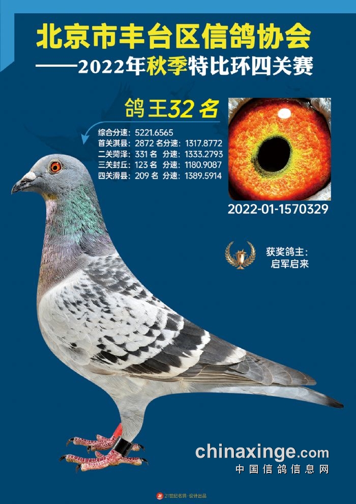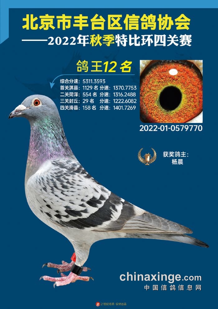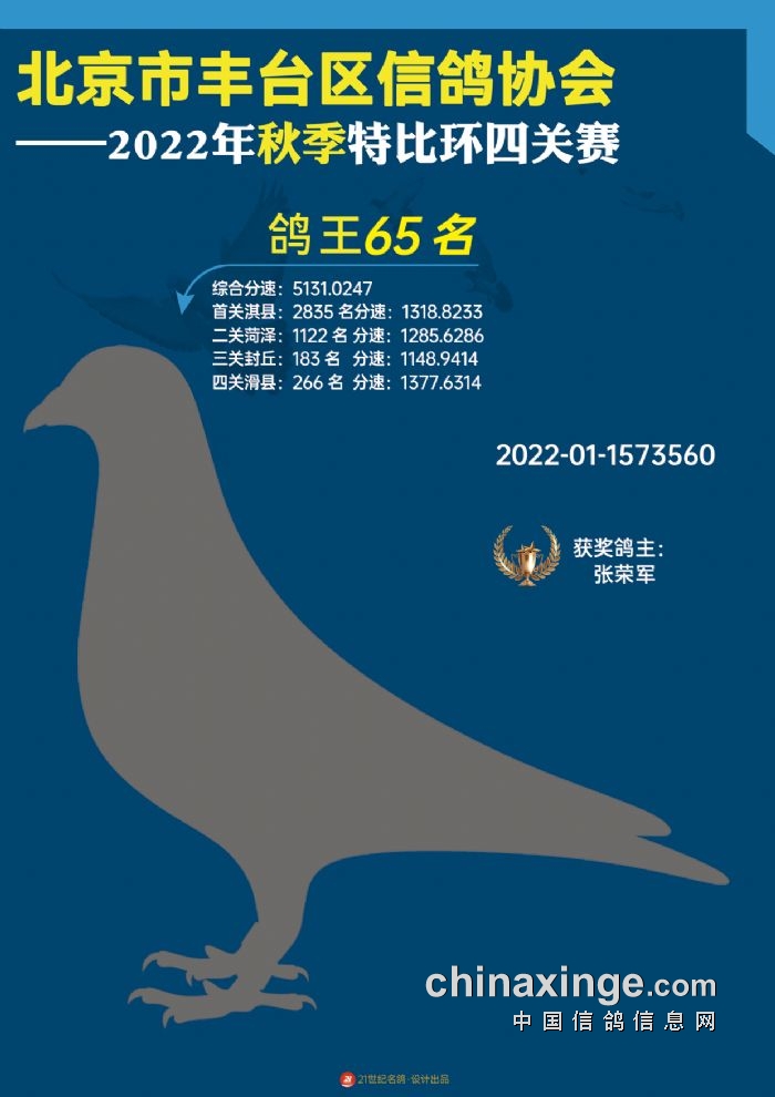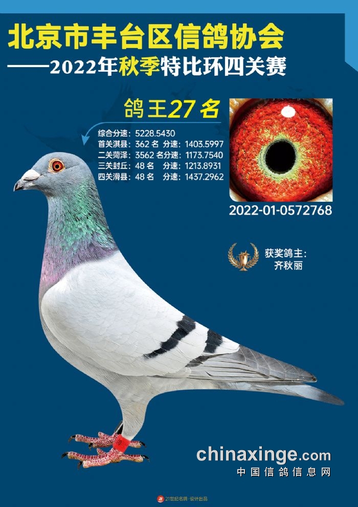 2022年丰台鸽会百元特比环四关综合鸽王前100名照片