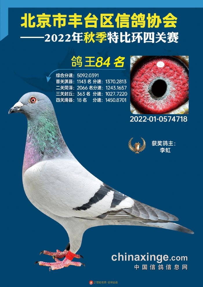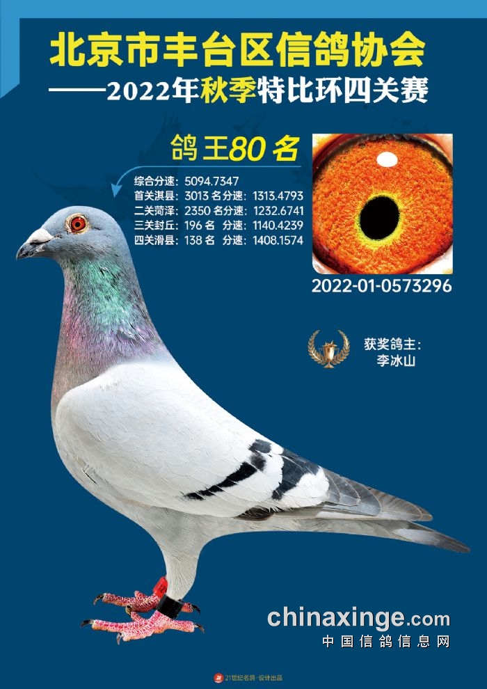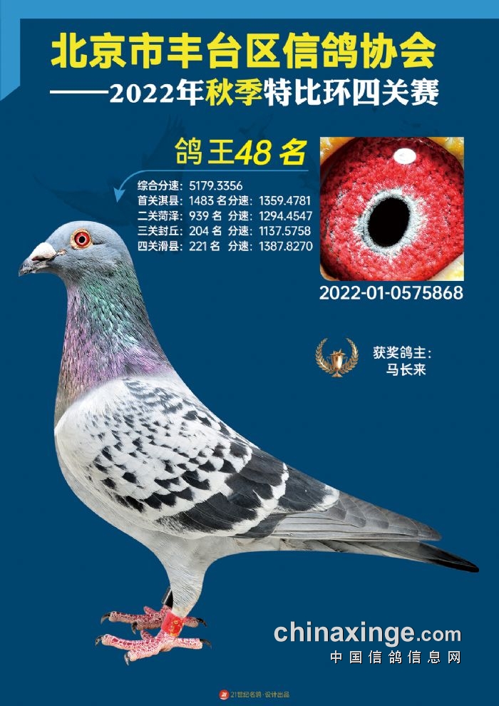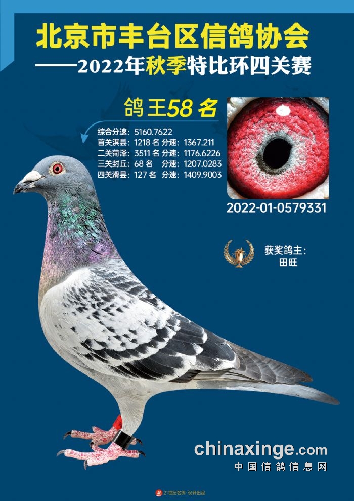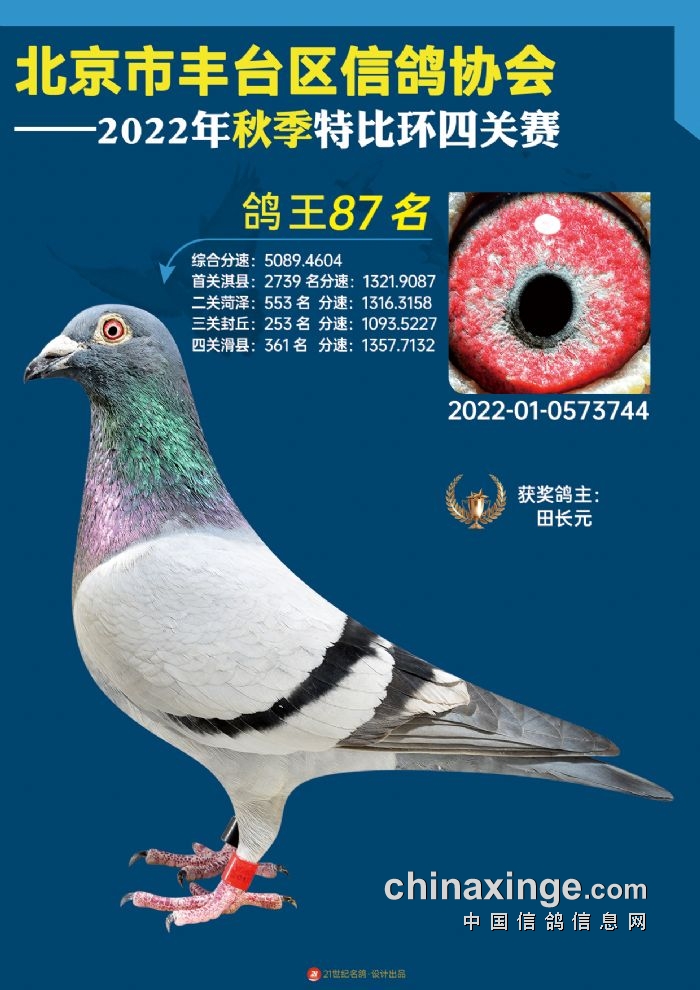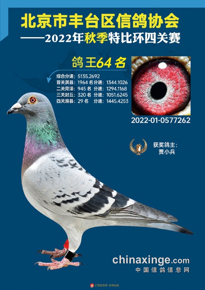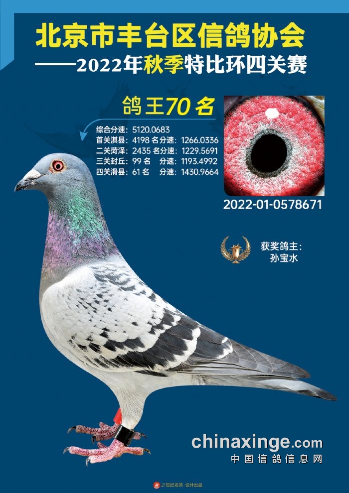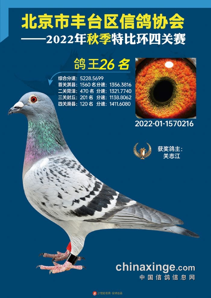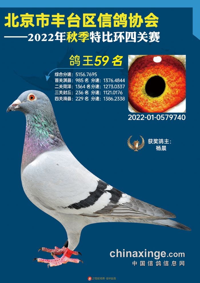 2022年丰台鸽会百元特比环四关综合鸽王前100名照片