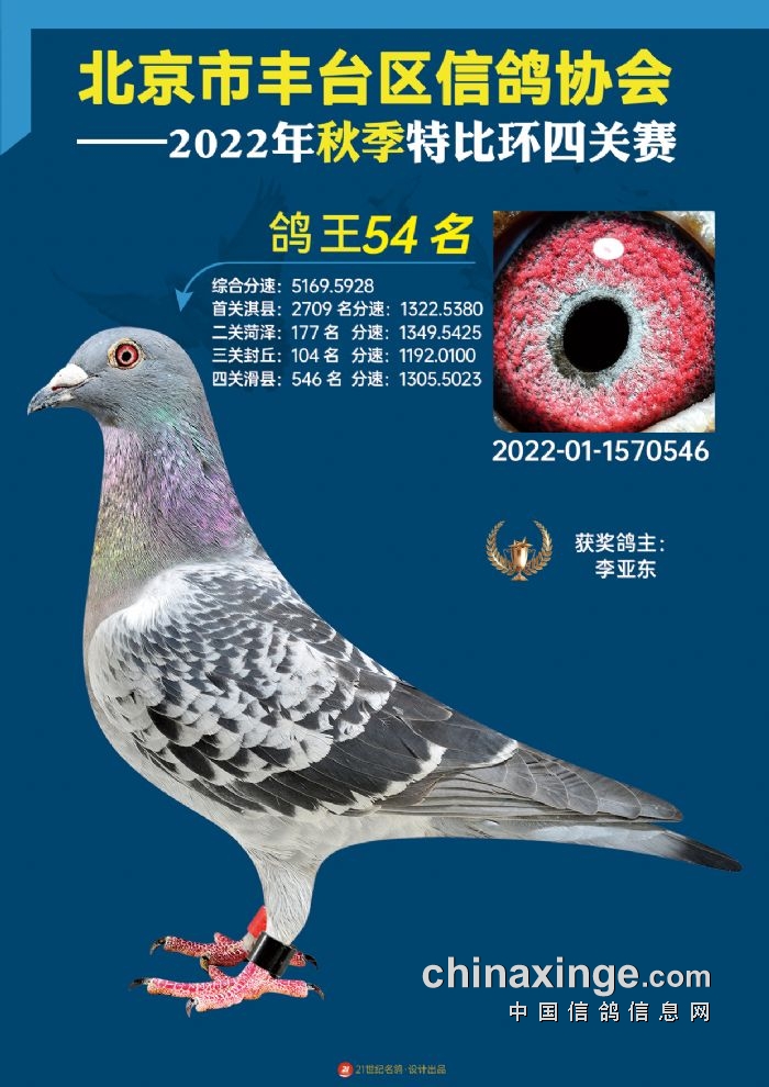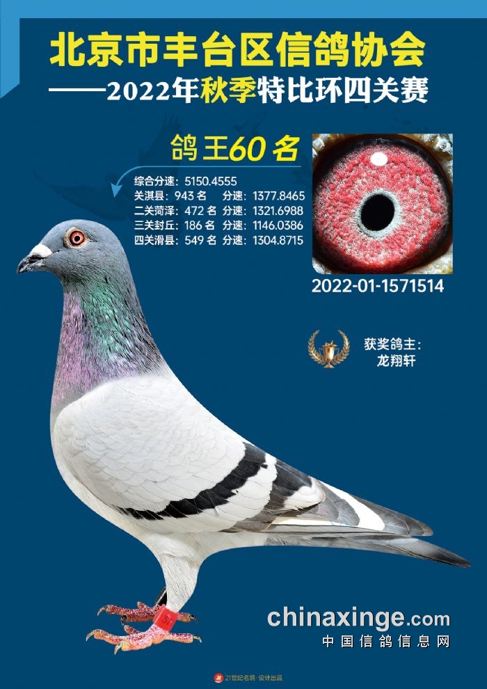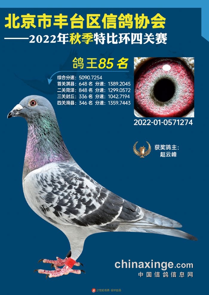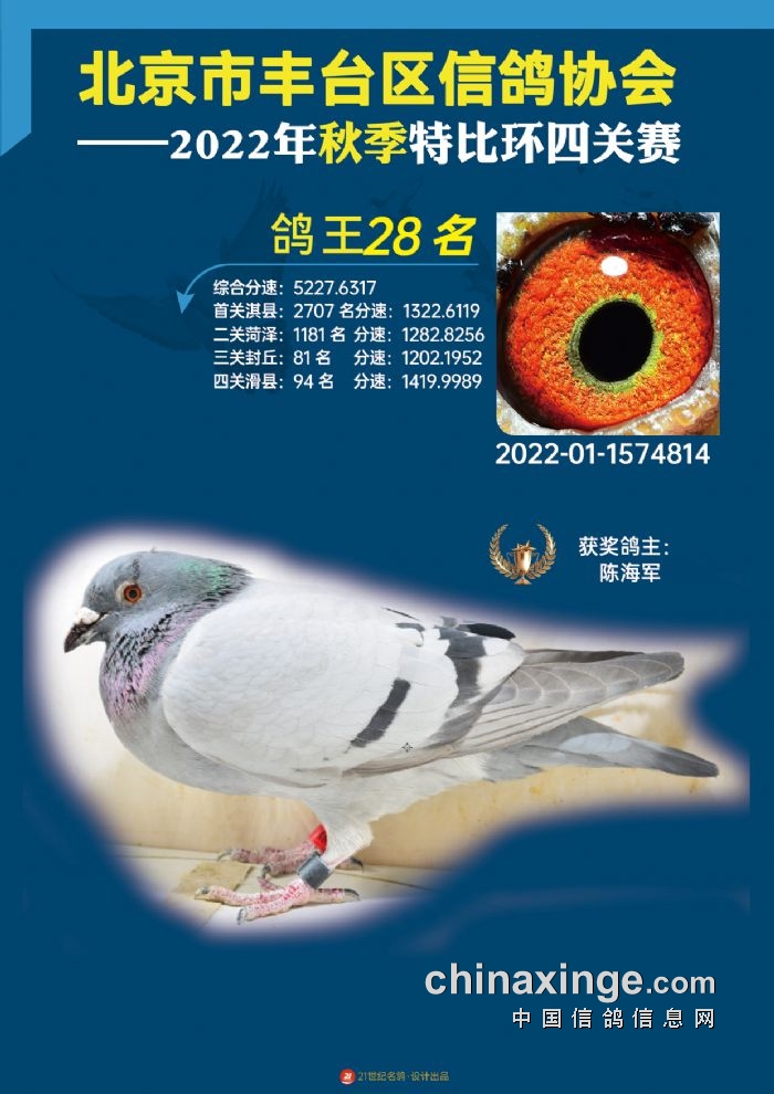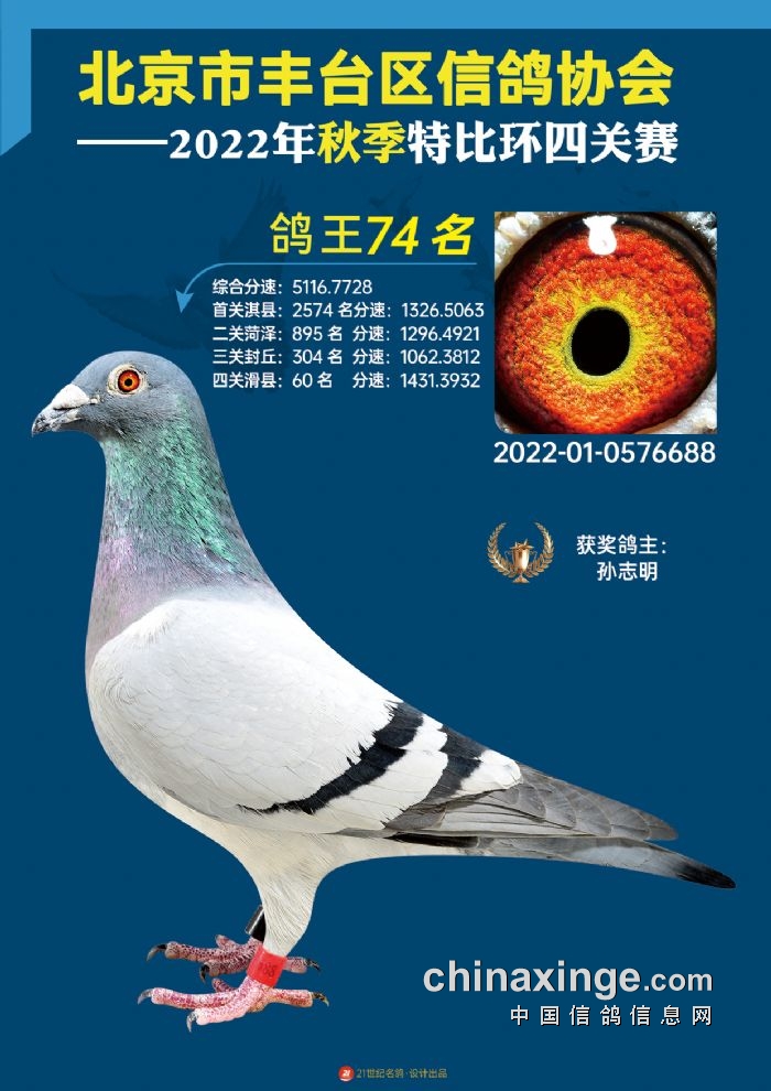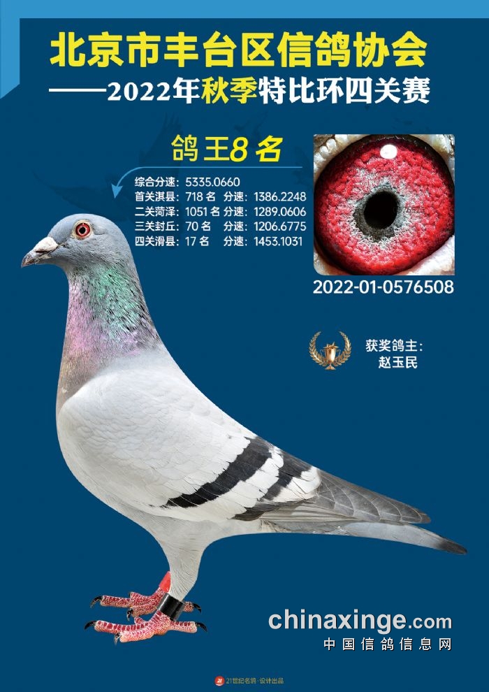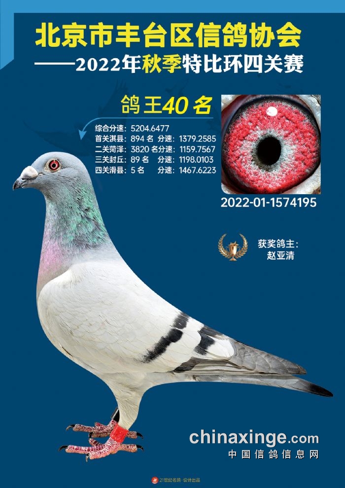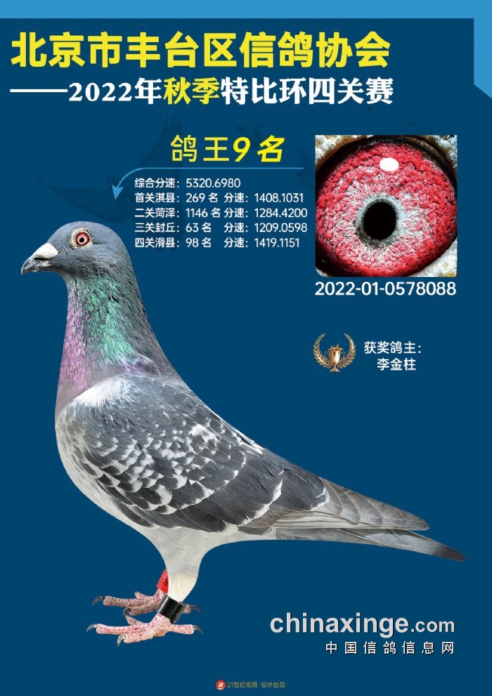 2022年丰台鸽会百元特比环四关综合鸽王前100名照片
