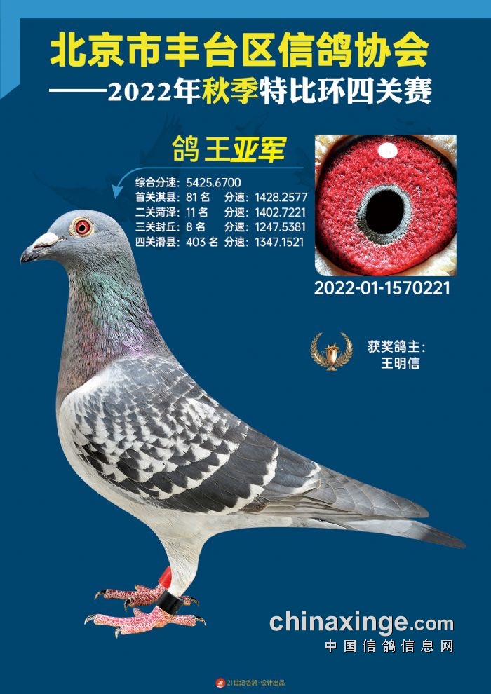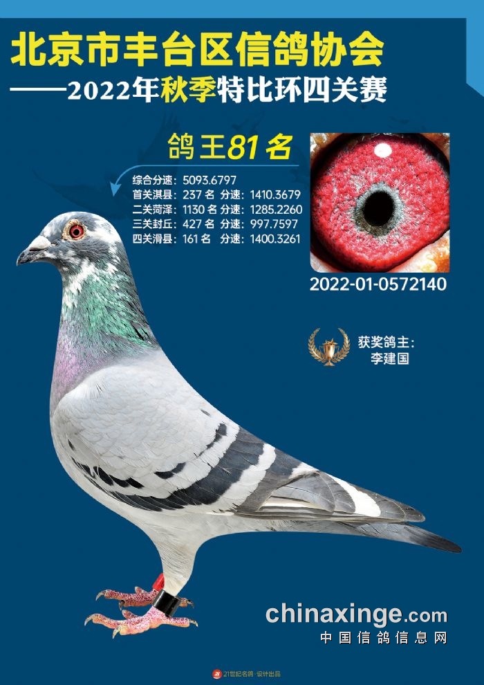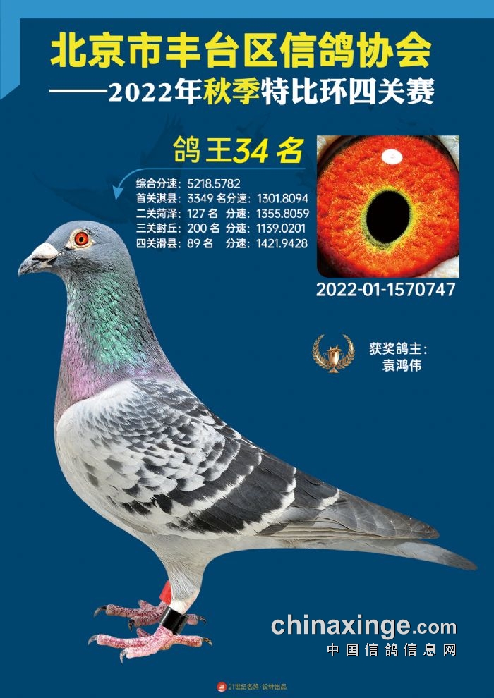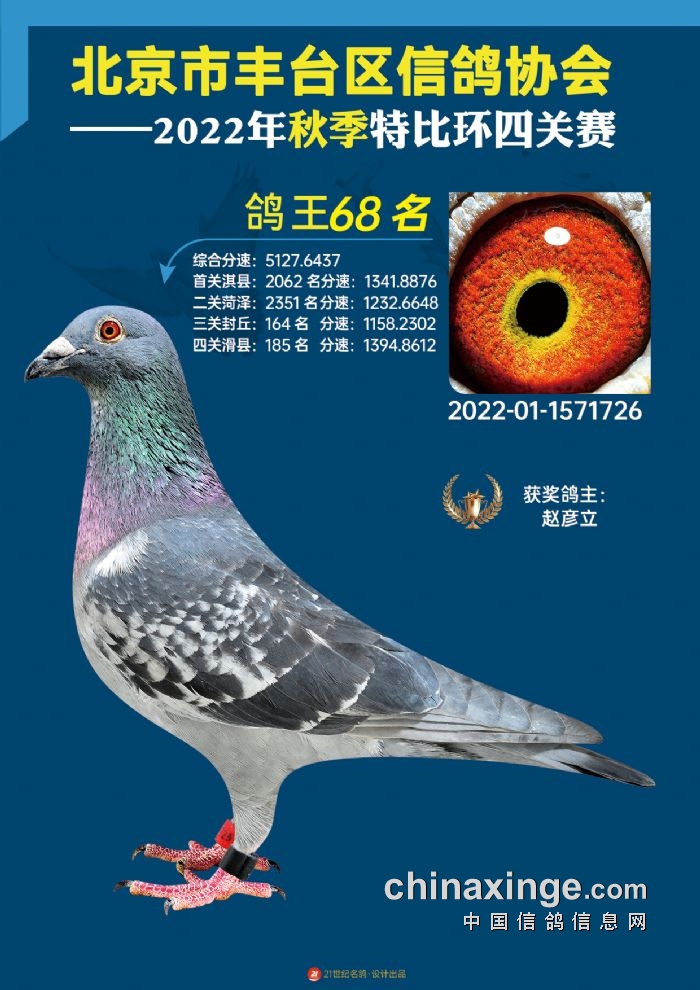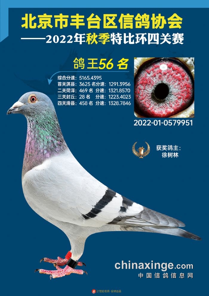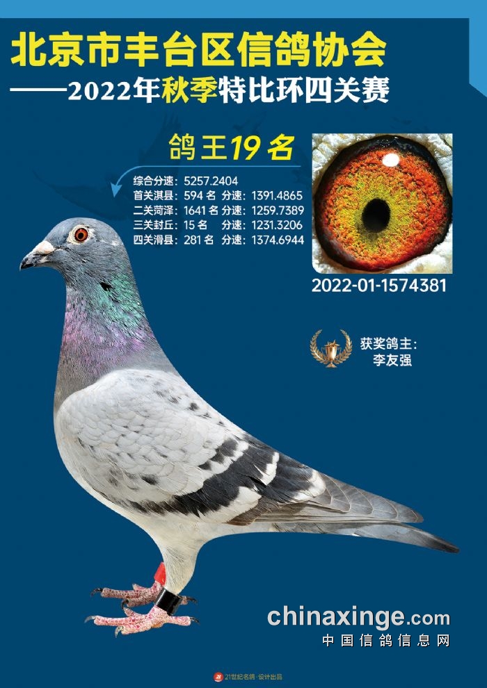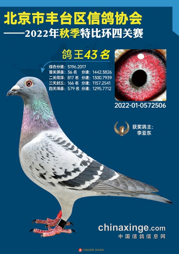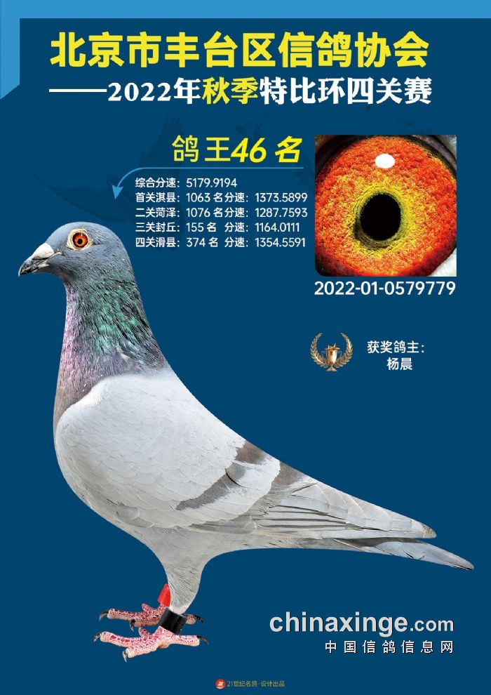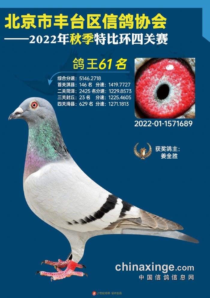 2022年丰台鸽会百元特比环四关综合鸽王前100名照片