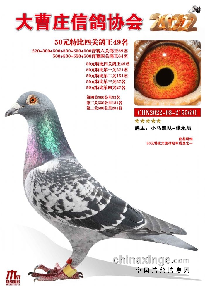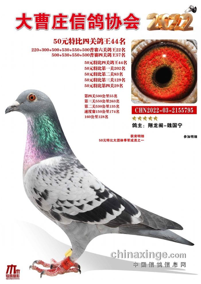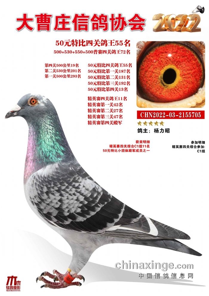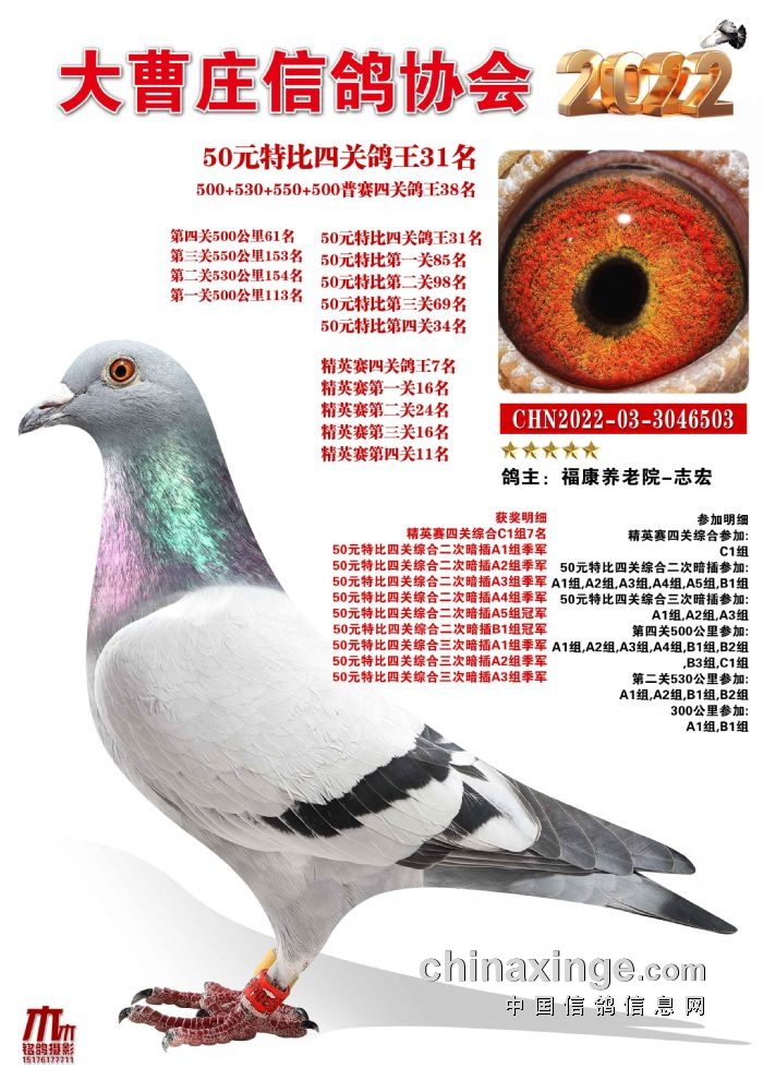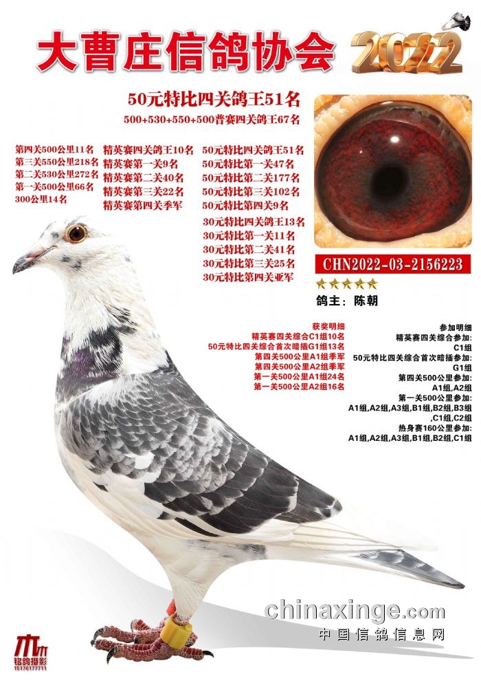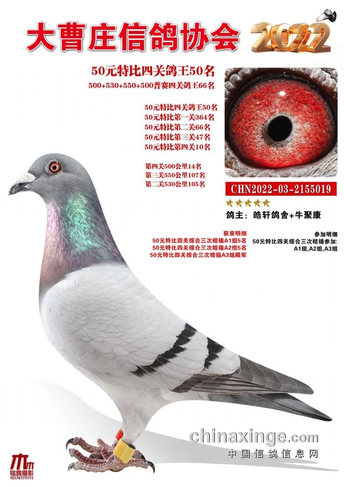 大曹庄鸽会50元特比环四关综合优胜鸽31-60名