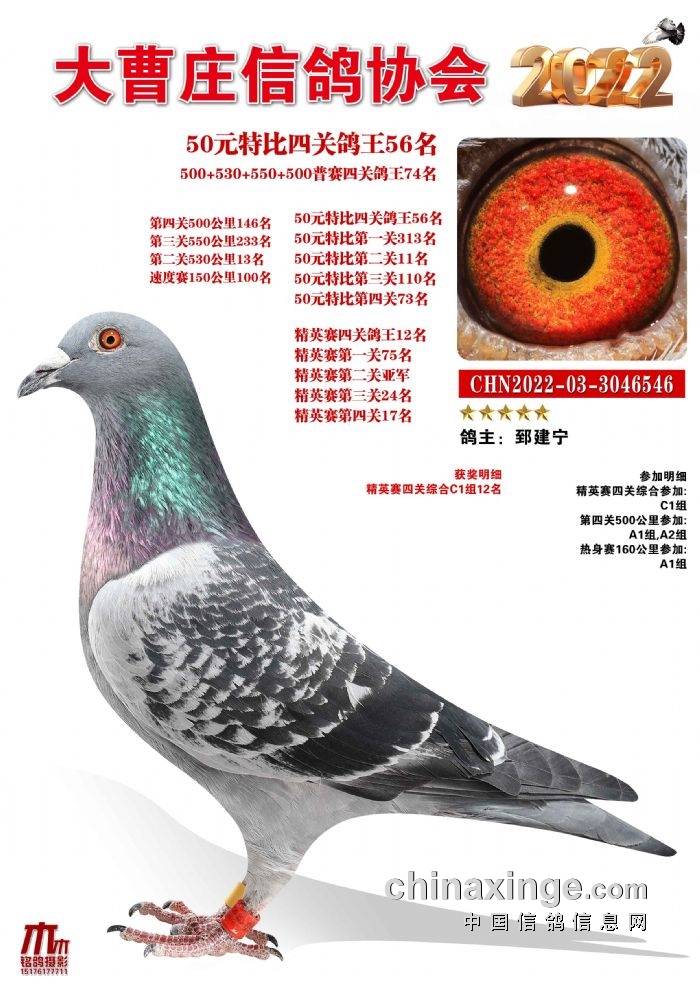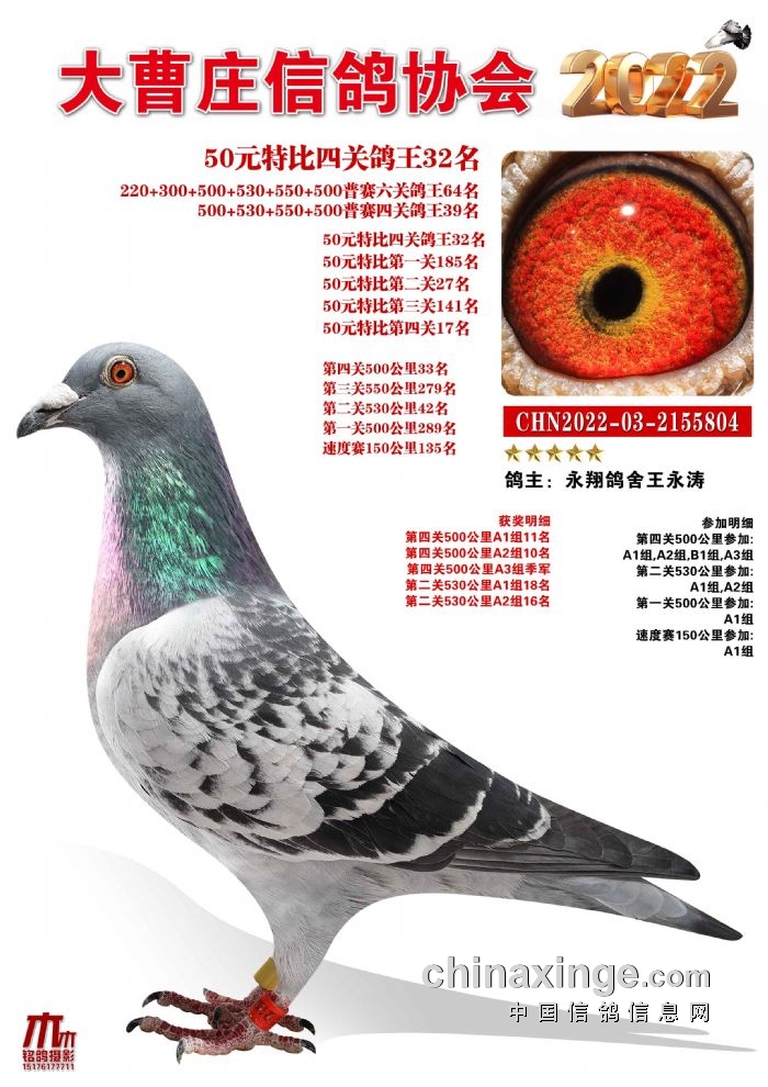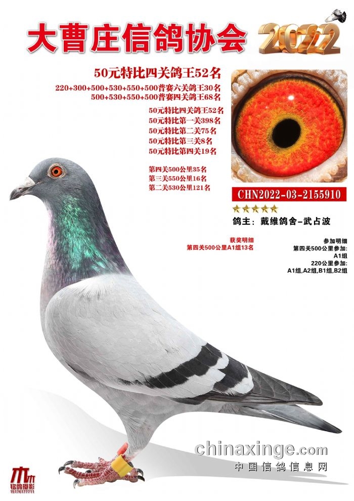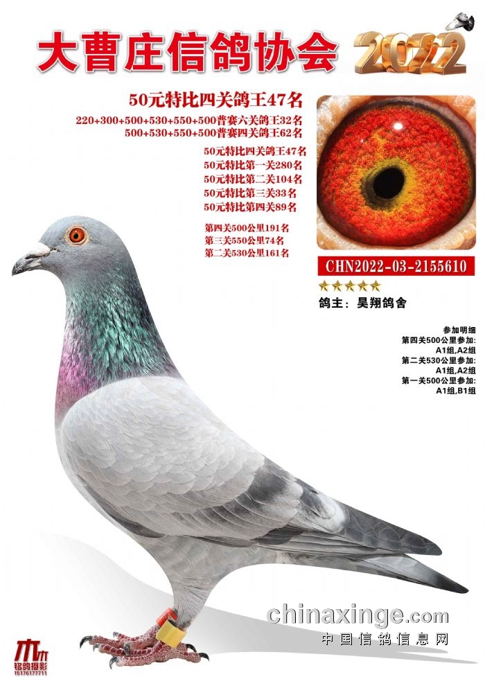 大曹庄鸽会25年秋220、280、340、380、500公里五关鸽王临时成绩