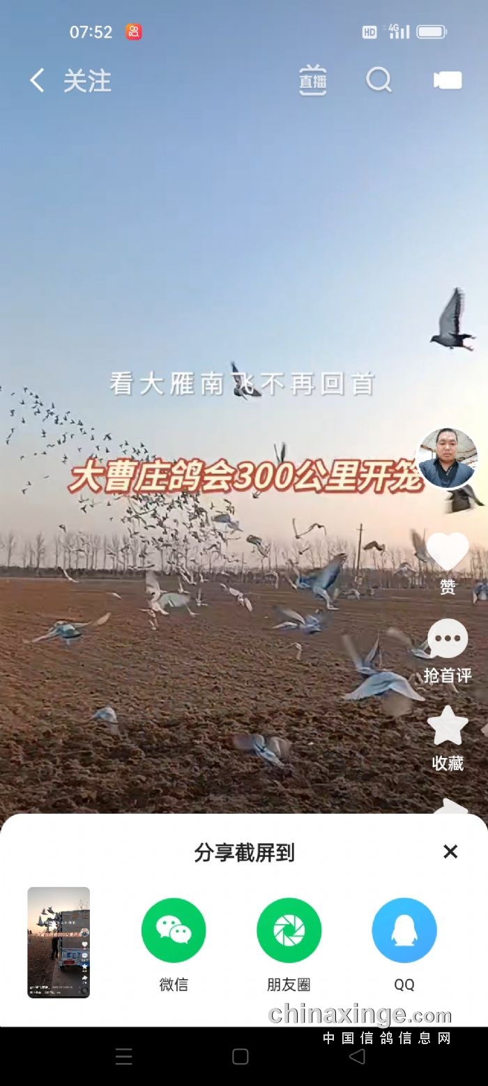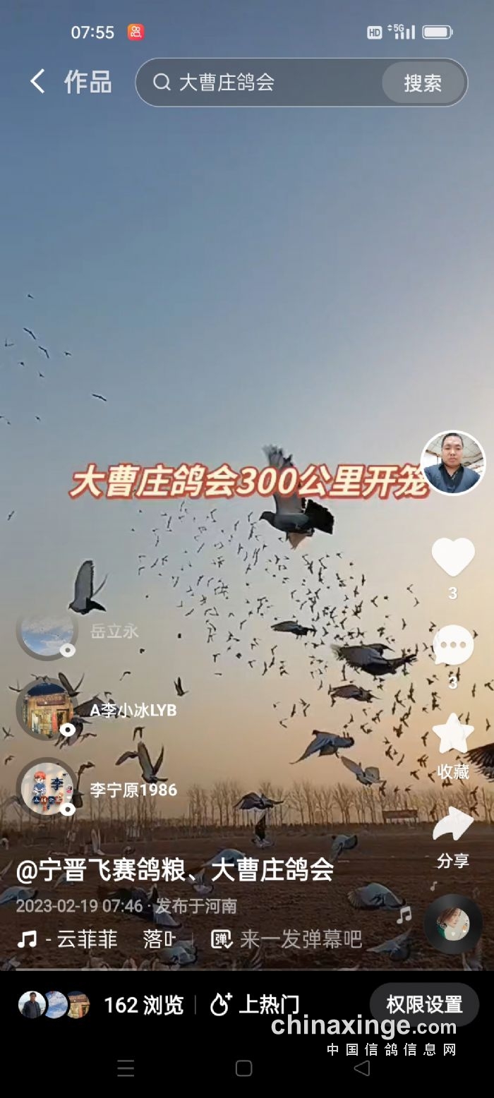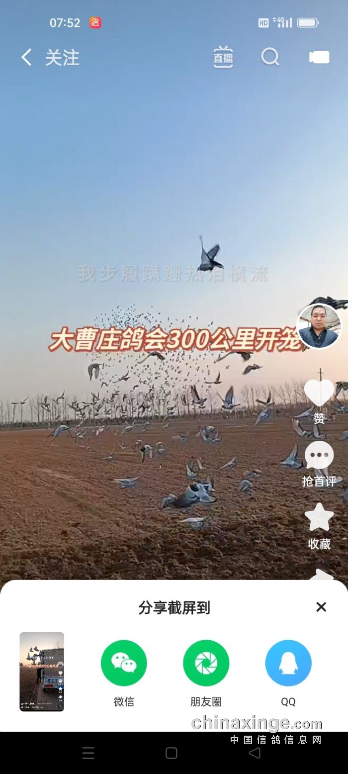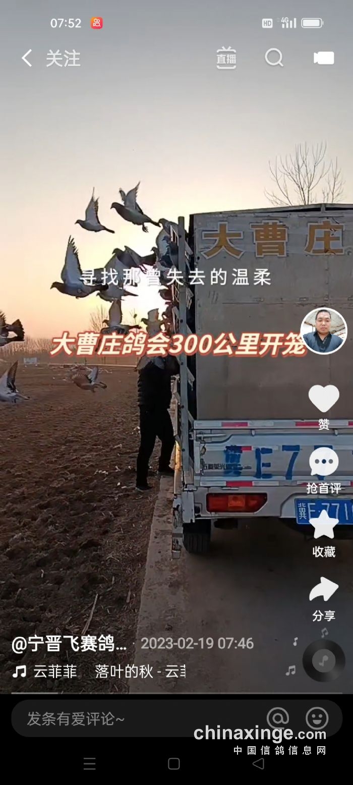 大曹庄鸽会300公里封丘出口7.40开笼,天气晴,鸽走势良好