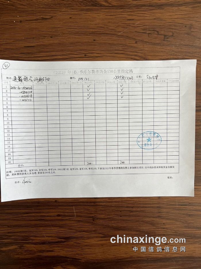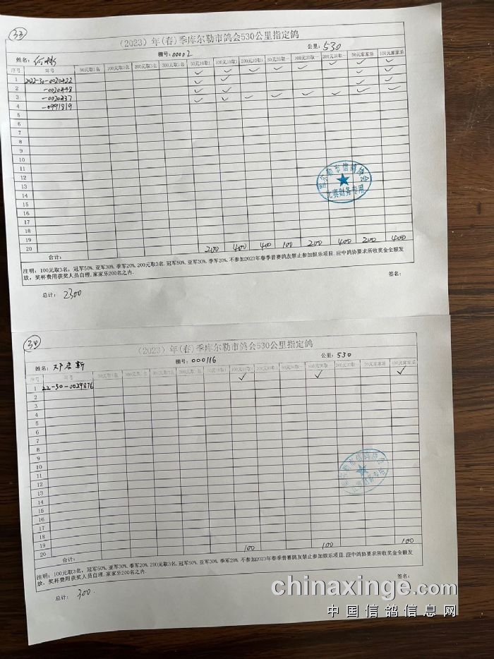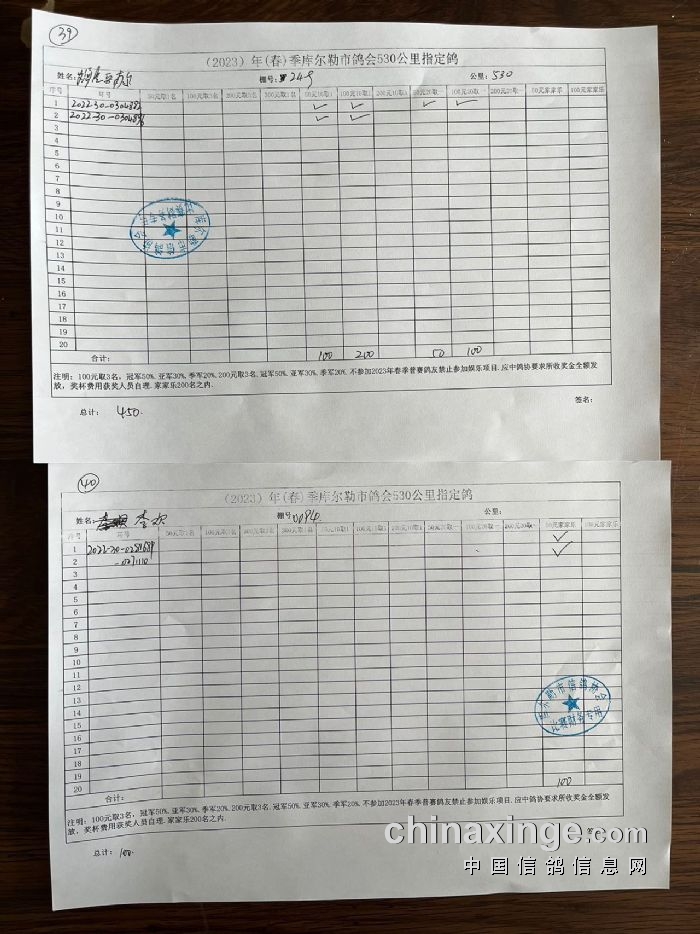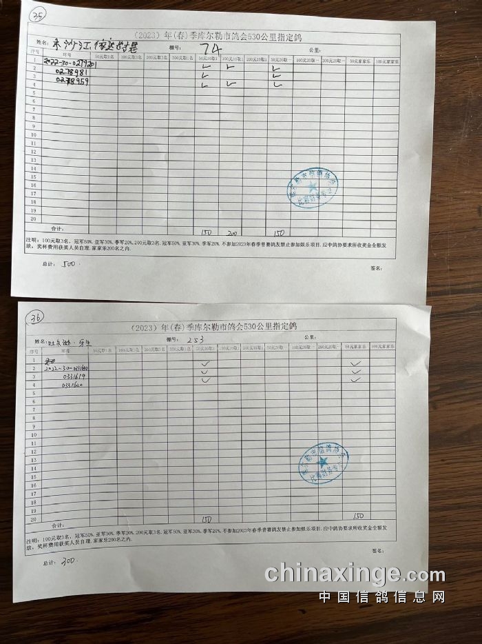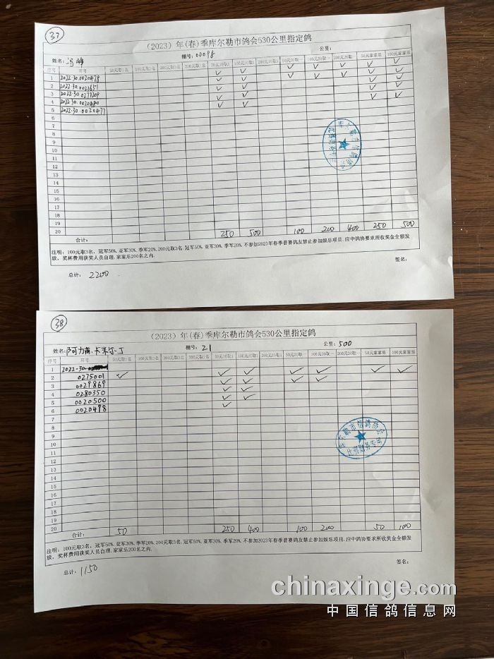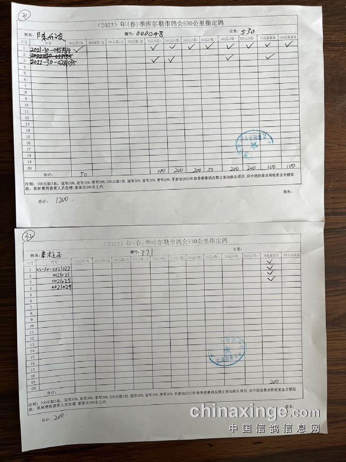2023年春第三关530公里指定鸽明细2