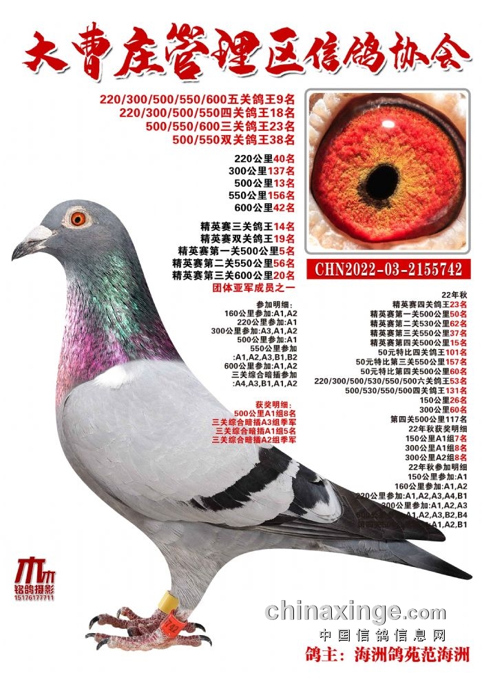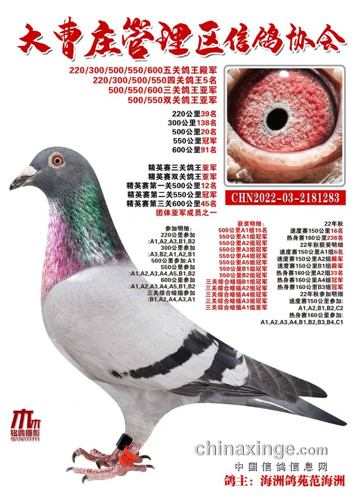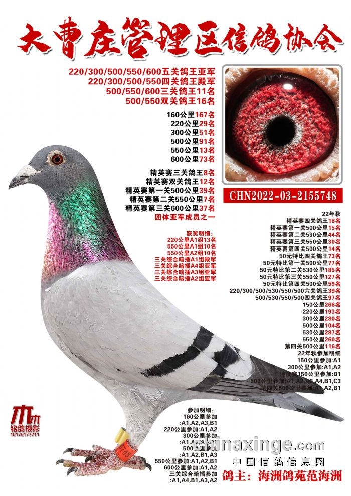 大曹庄鸽会25年秋220、280、340、380、500公里五关鸽王临时成绩