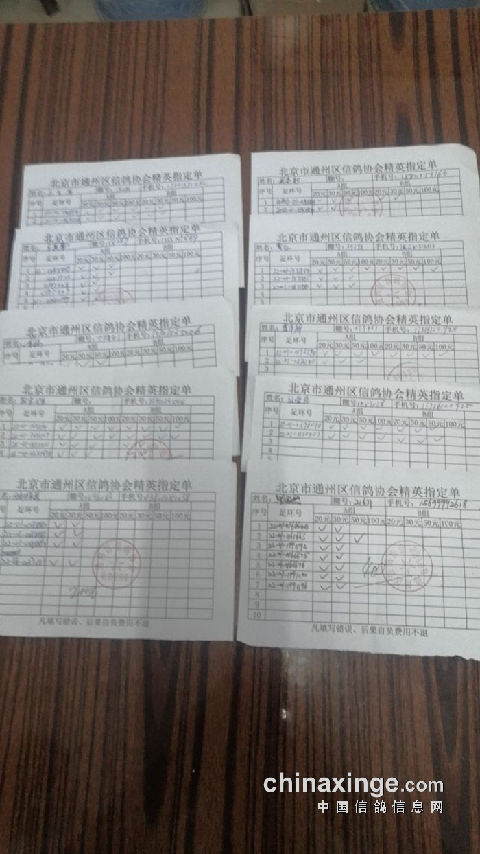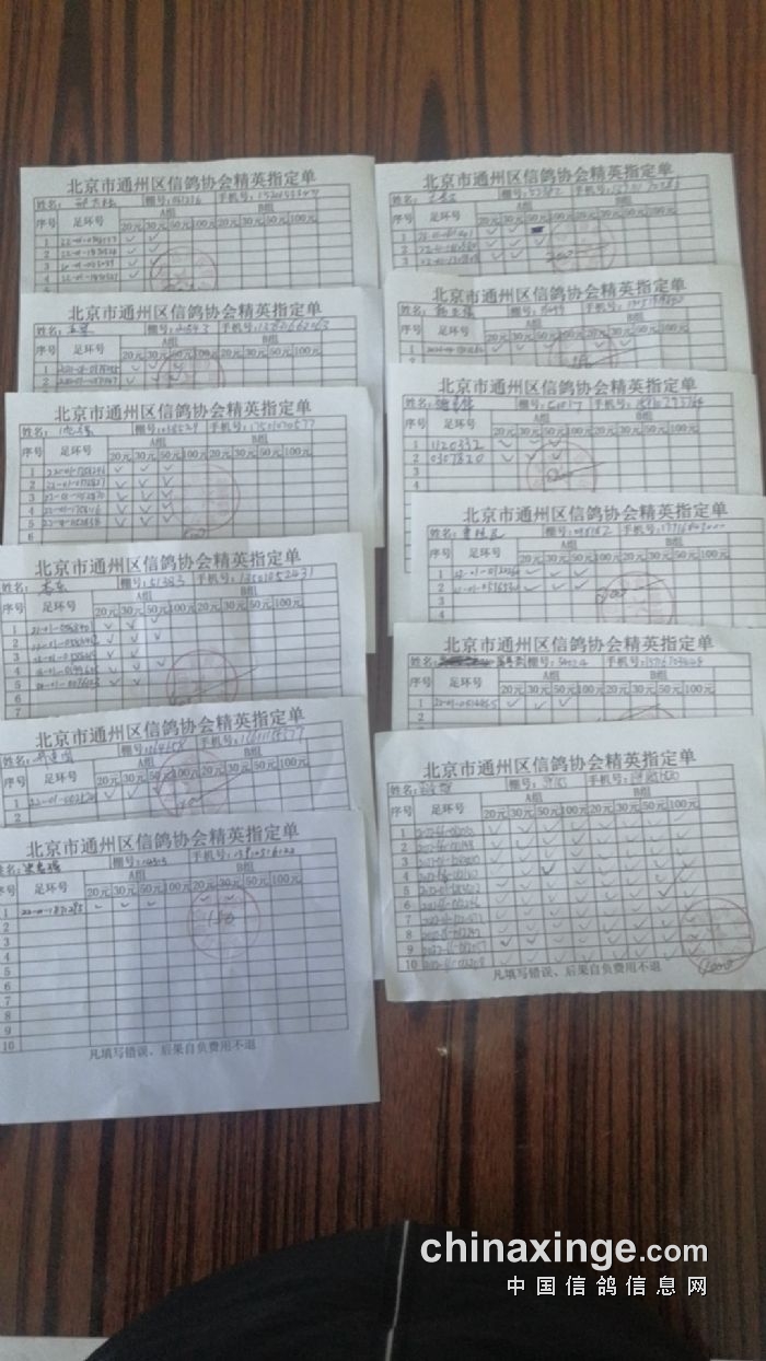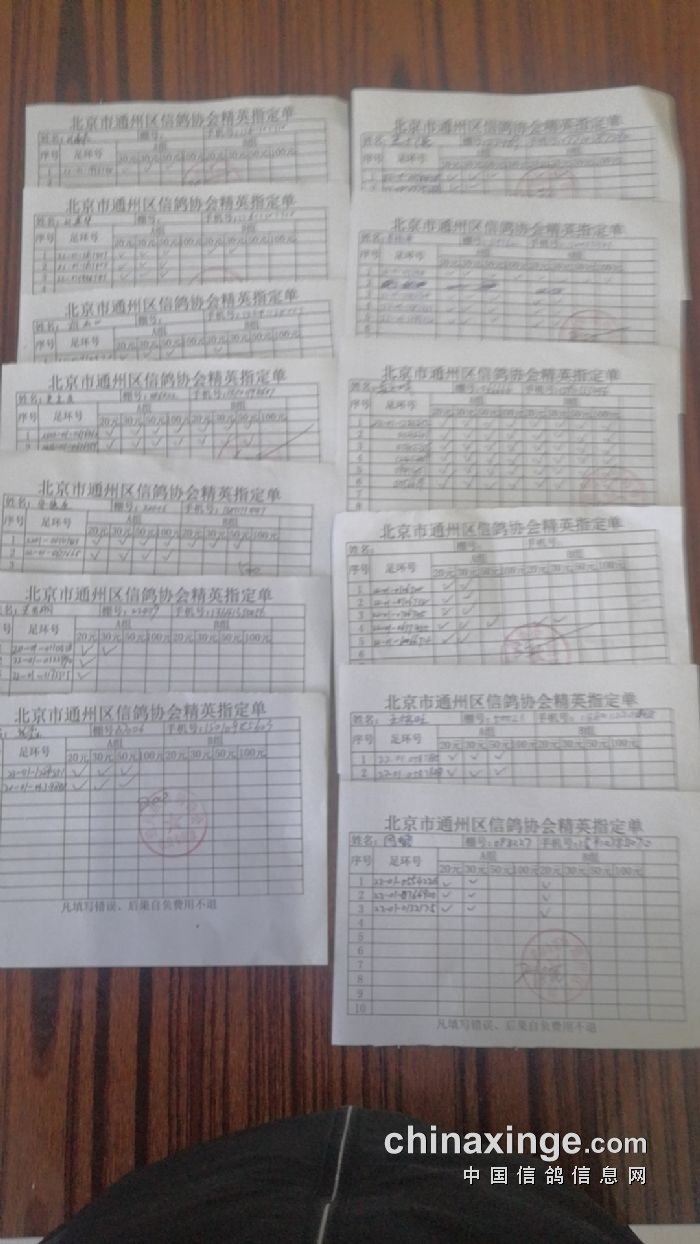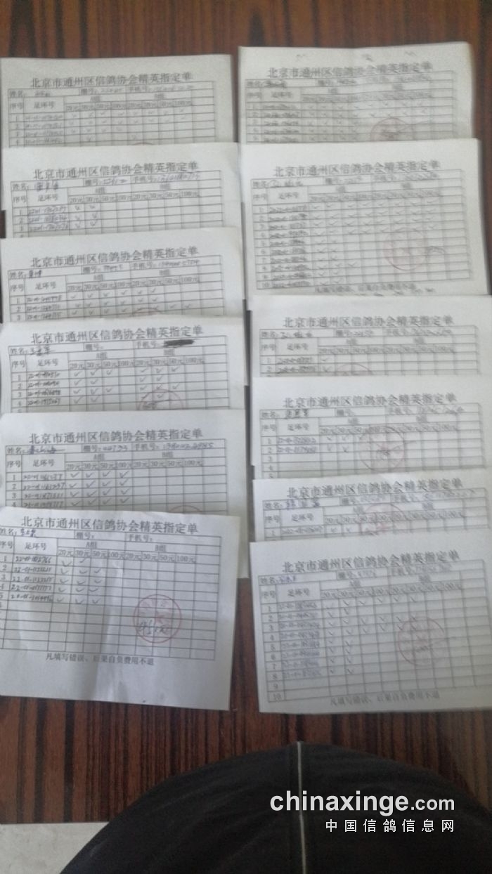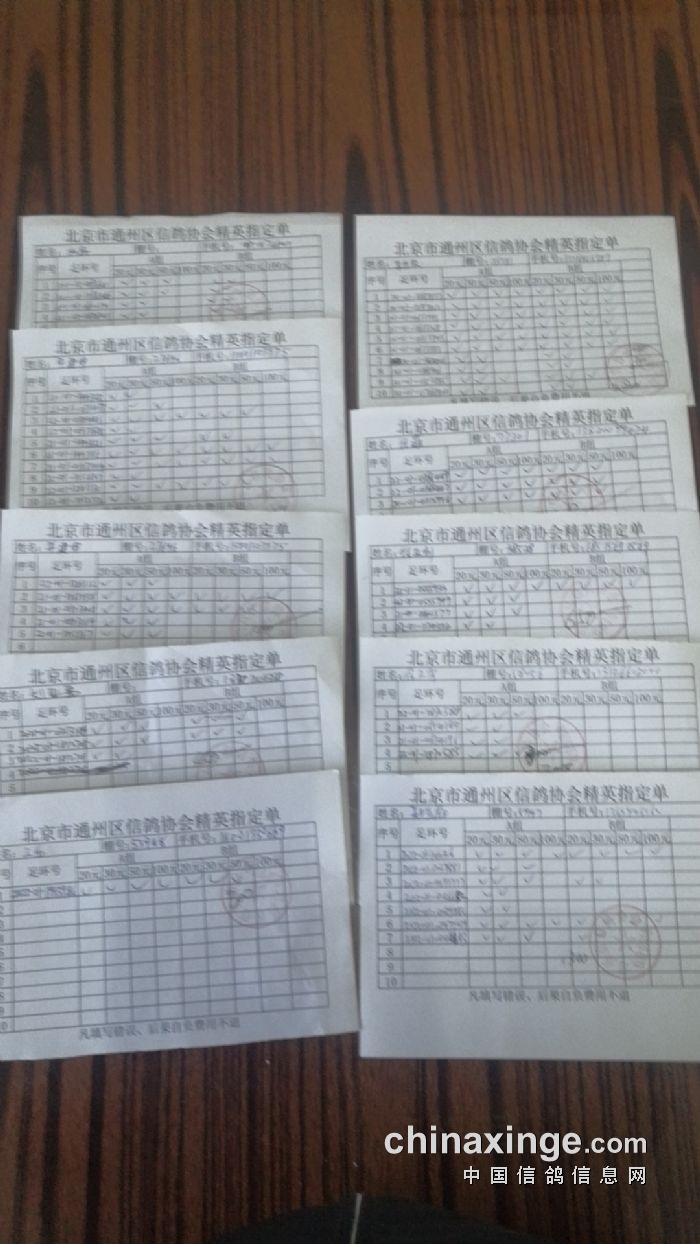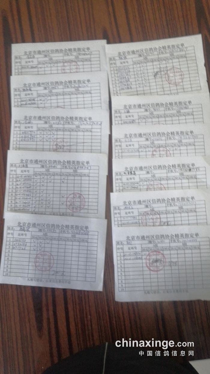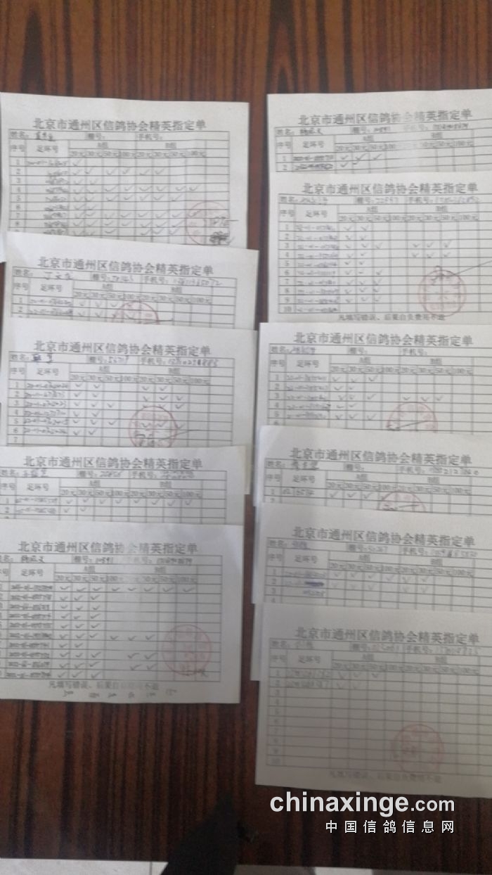 通州区信鸽协会2023年4月16日全市联翔550公里比赛指定原单