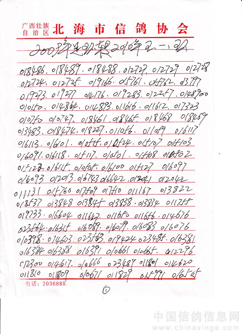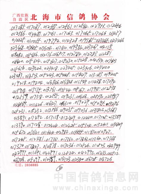 广西北海市信鸽协会