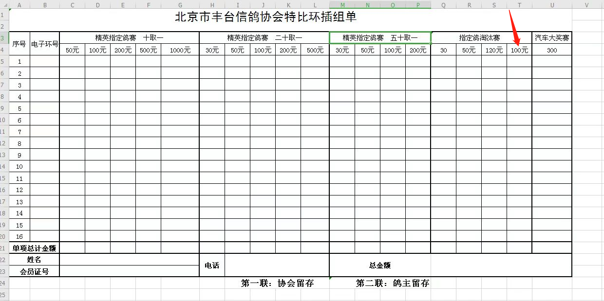 200元特比300元特比补齐参赛鸽剩余的参赛费,同时进行100特比首关综合暗指,200特比首关综合暗指,300特比一关综合暗指,插组项如下: