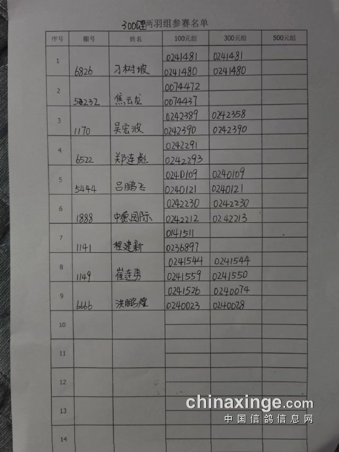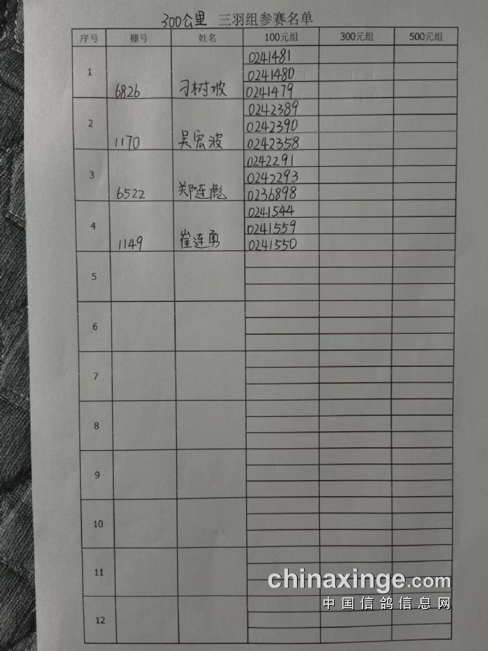 哈尔滨市2023年秋季300公里两羽组 三羽组参赛名单