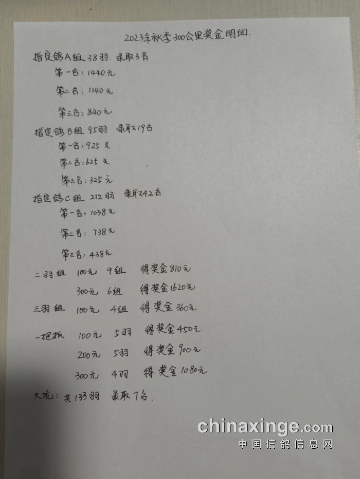 哈尔滨市2023年秋季300公里奖金明细