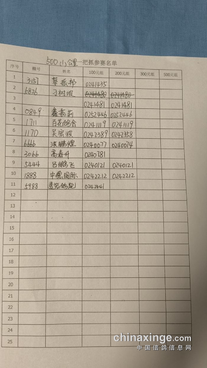 哈尔滨市2023年秋季500公里第一站一把抓参赛名单