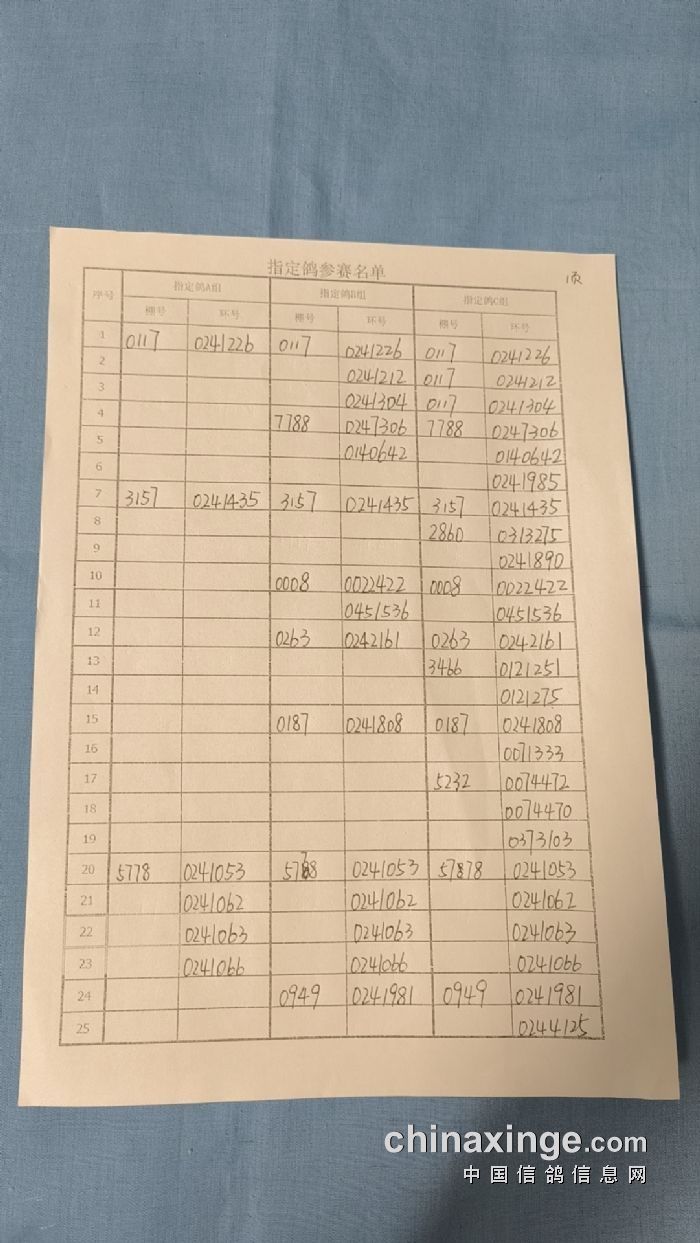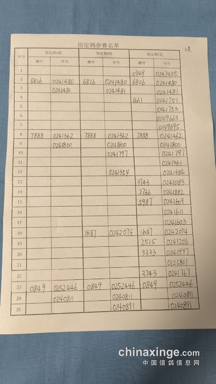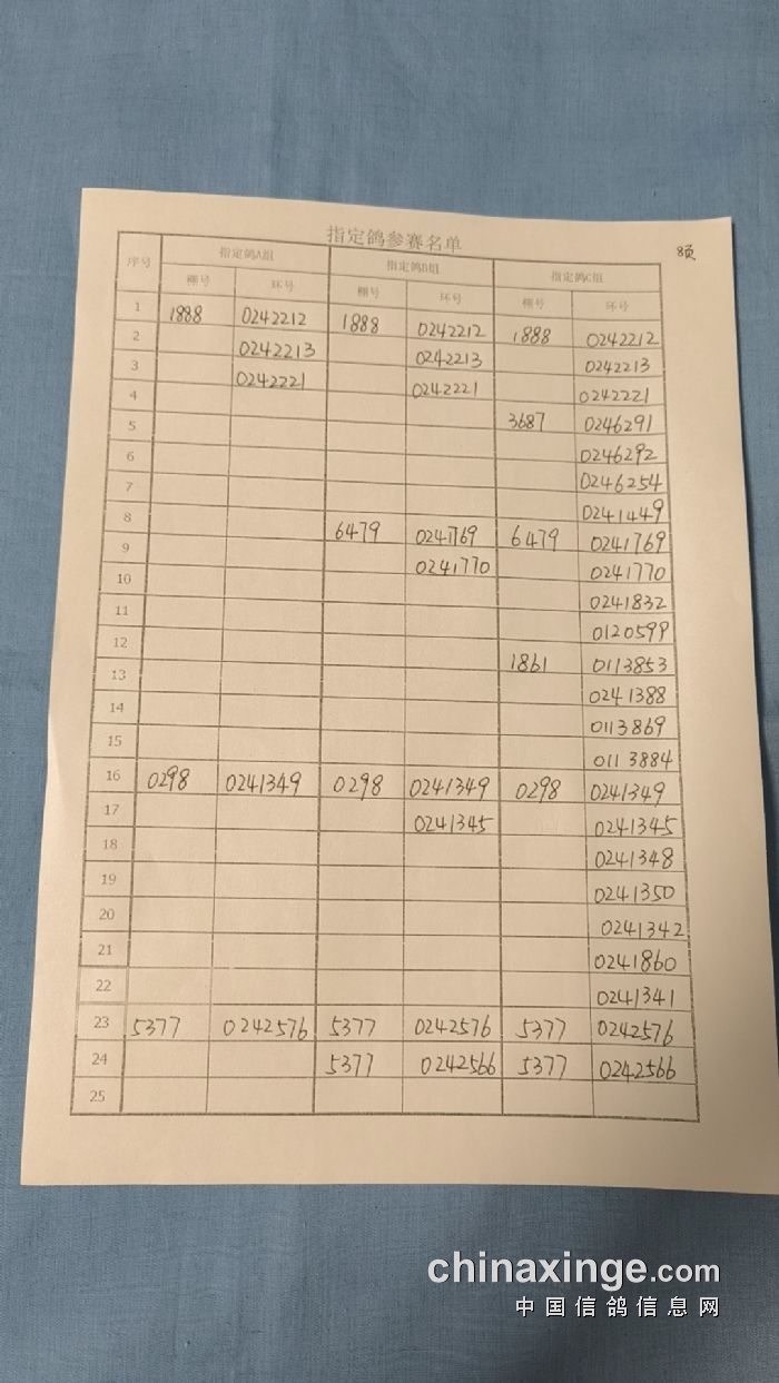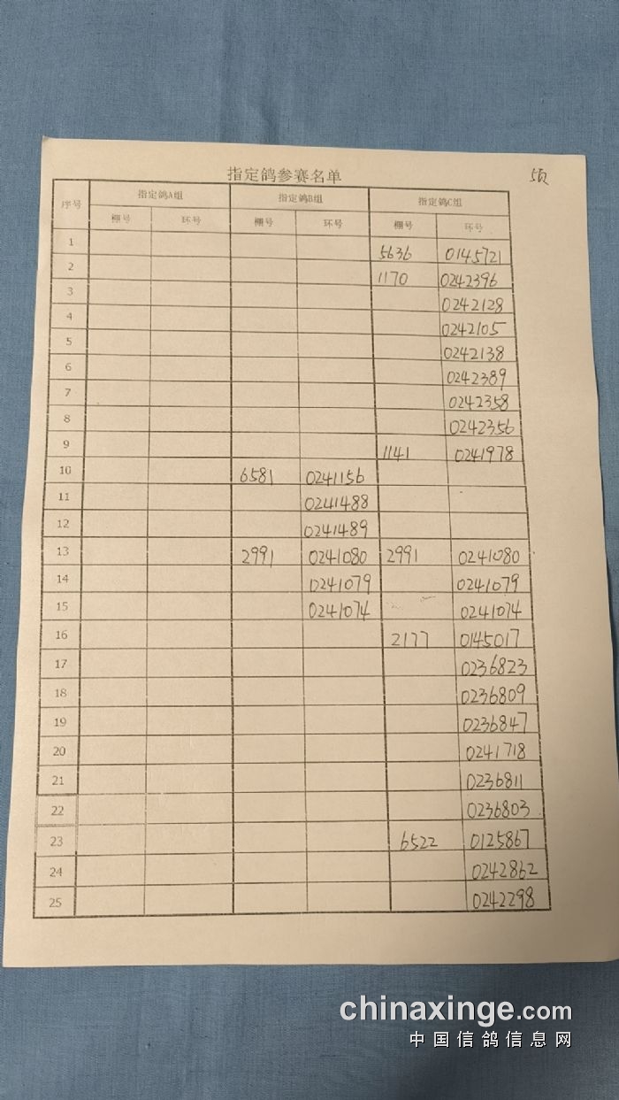 哈尔滨市2023年秋季500公里第一站指定鸽参赛名单