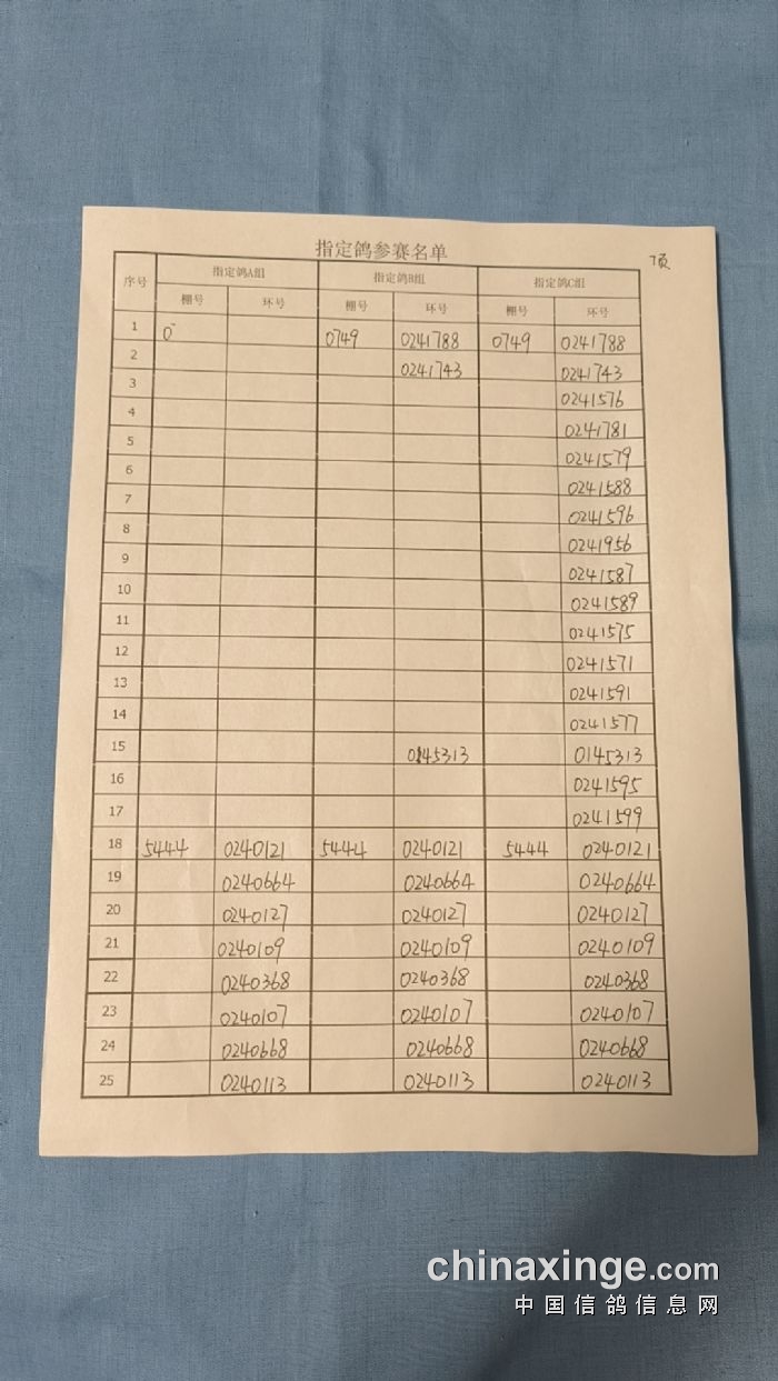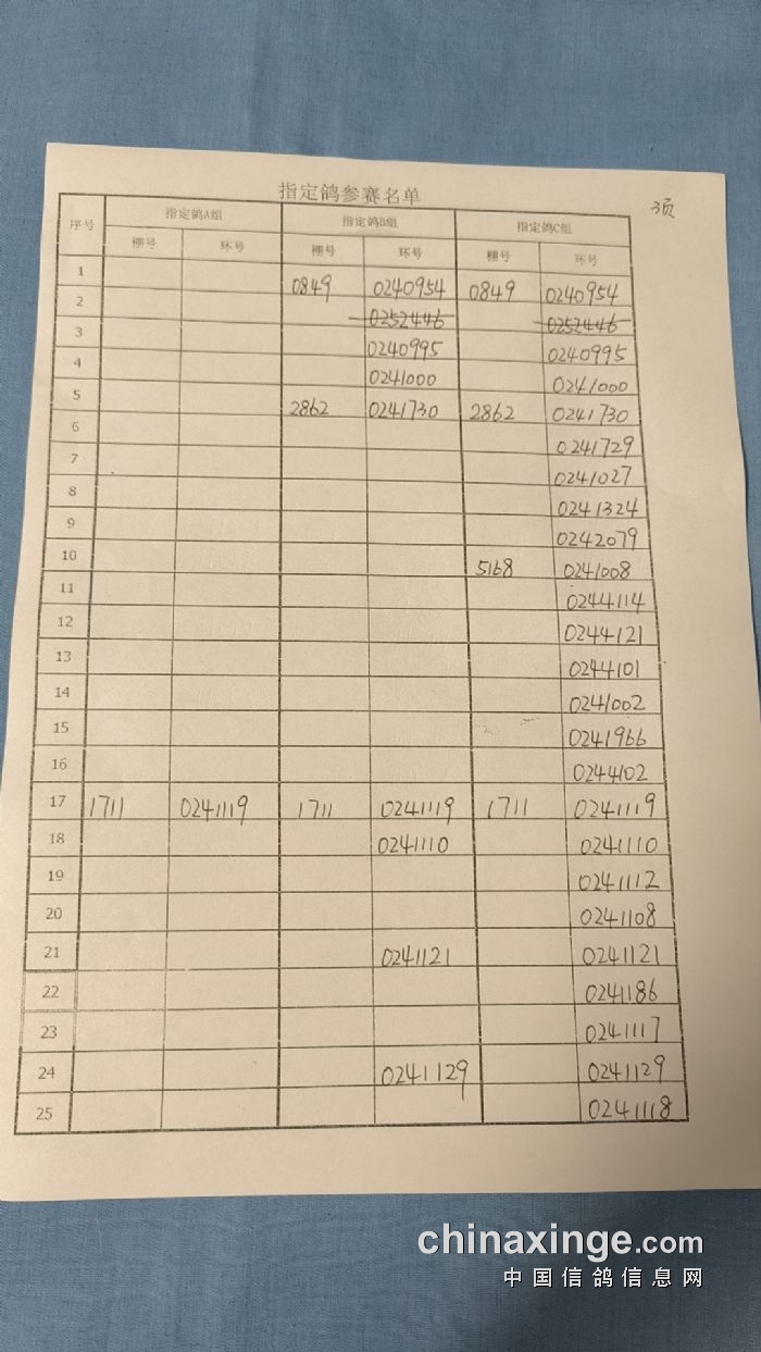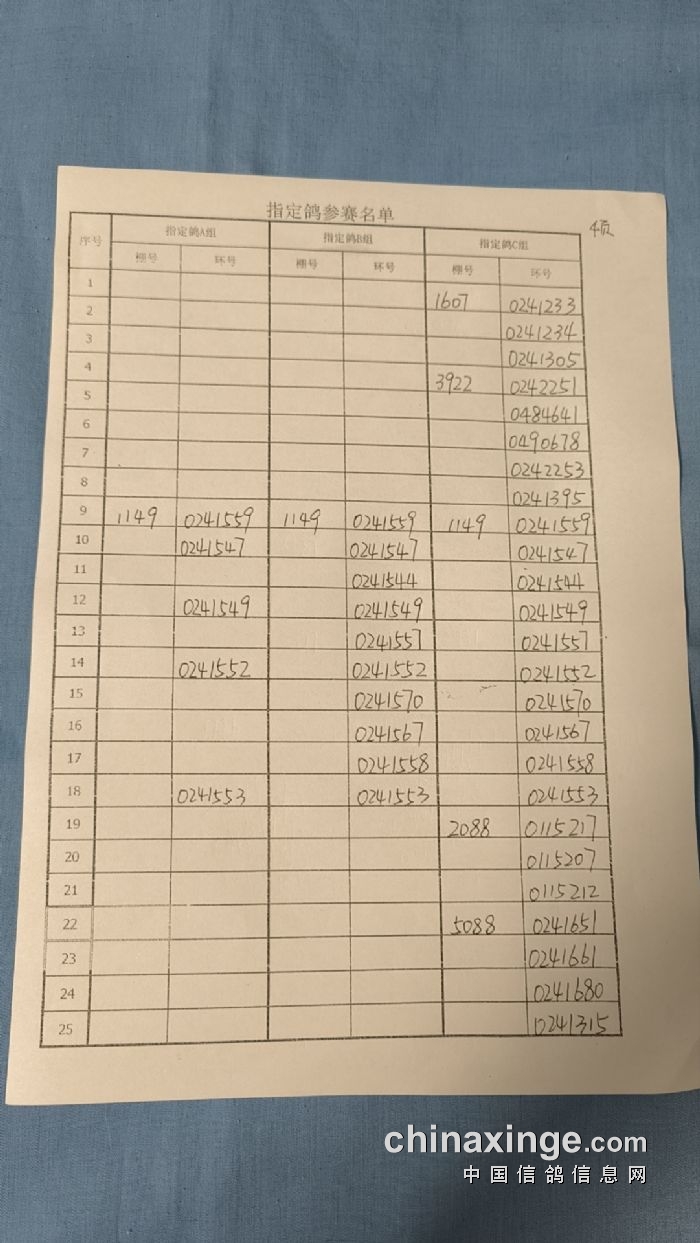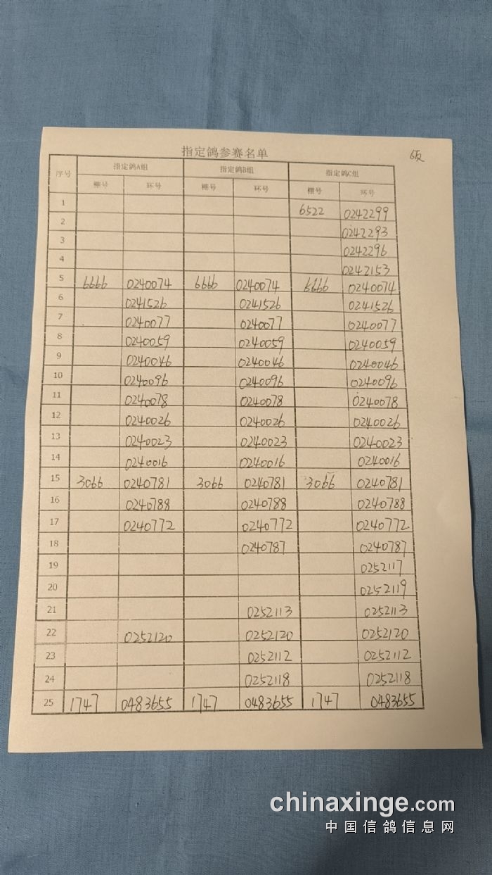 哈尔滨市2023年秋季500公里第一站指定鸽参赛名单
