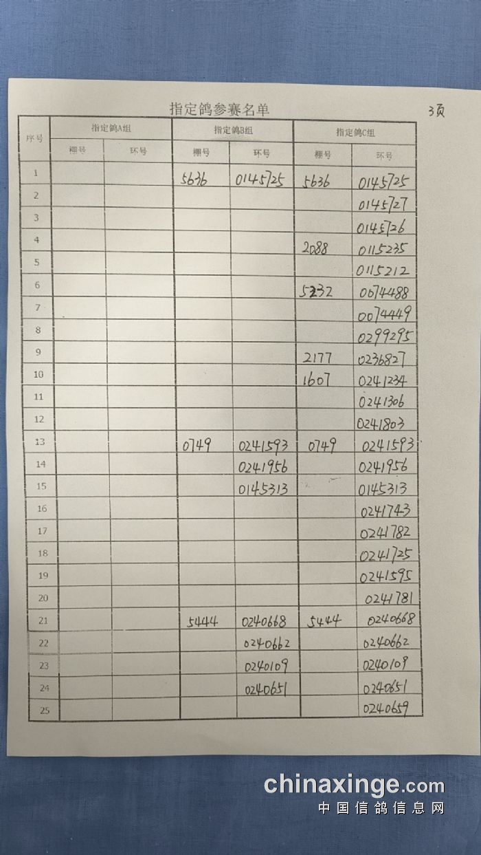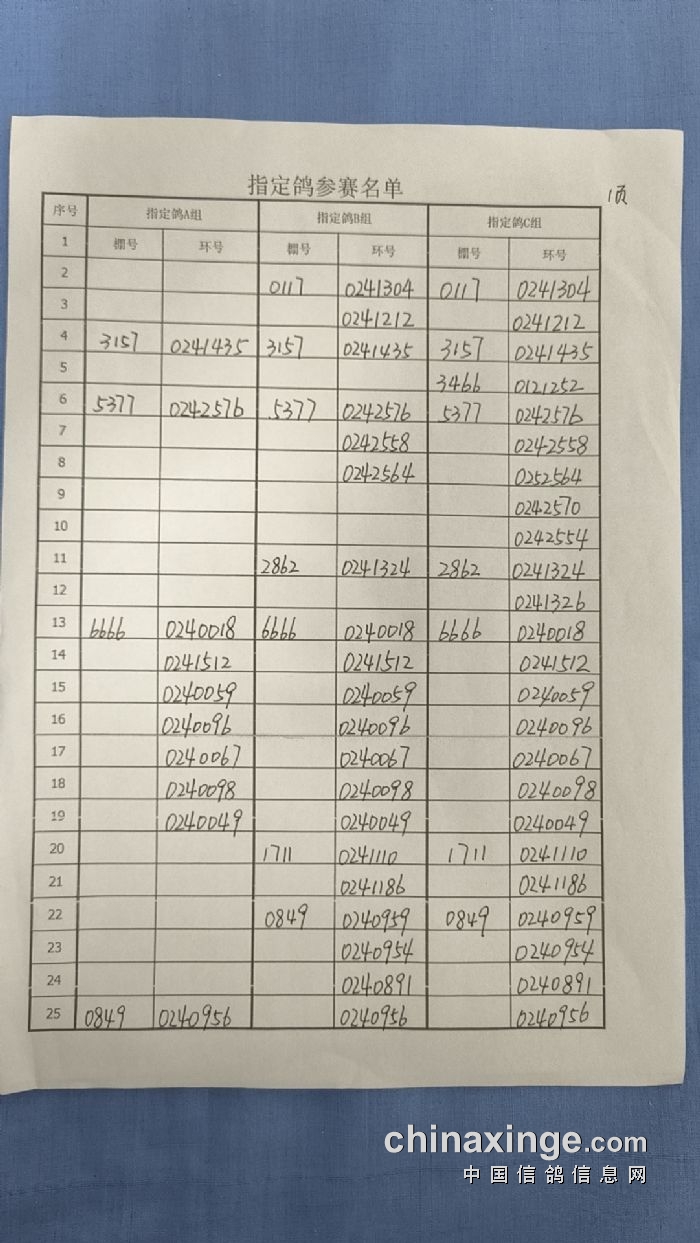 哈尔滨市2023年秋季500公里第三站指定鸽参赛名单