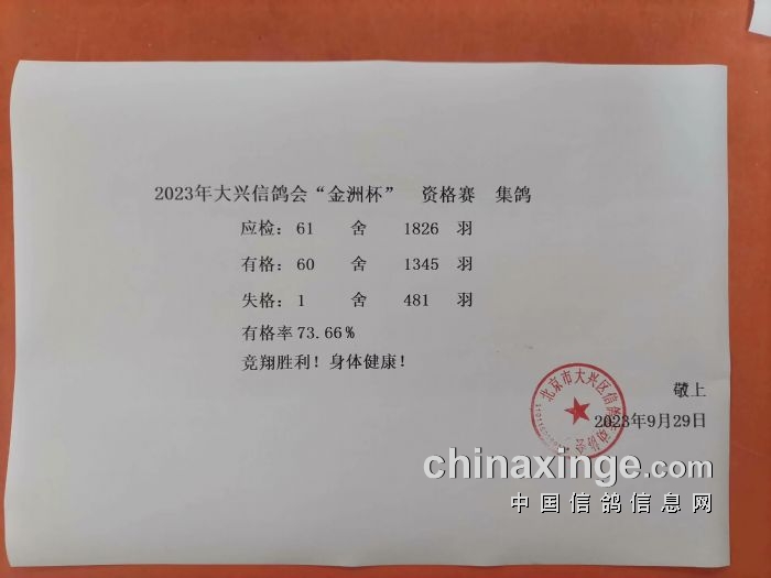 2023年大兴信鸽协会“金洲杯”资格赛集鸽圆满结束