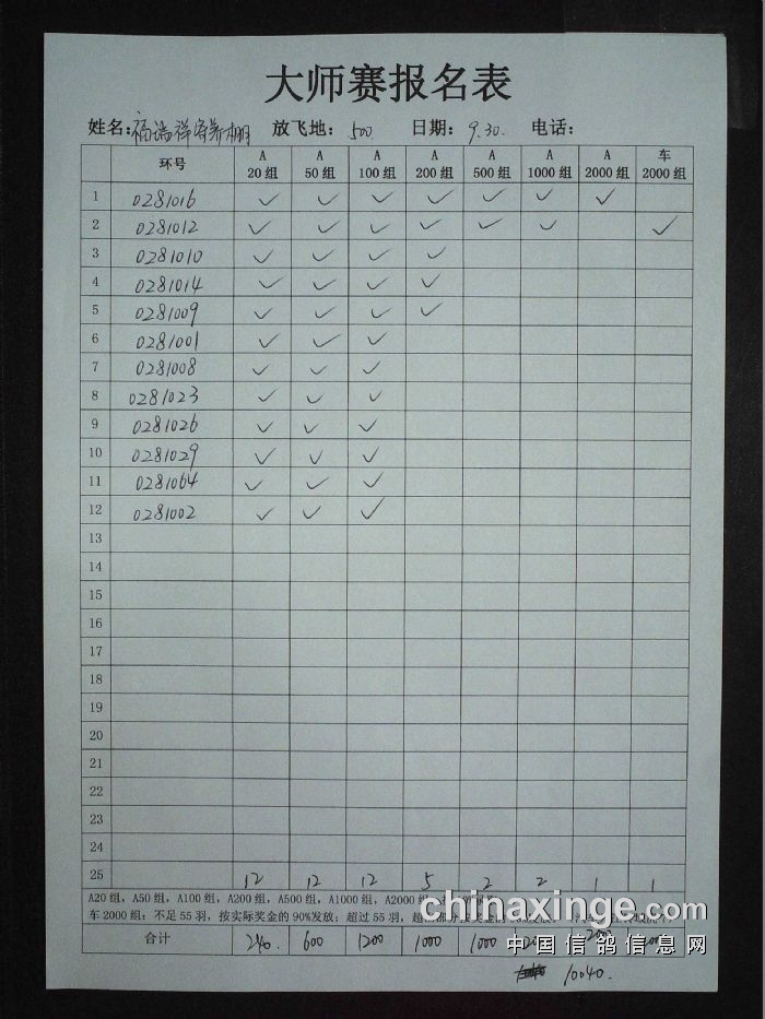 2023年秋季500公里第一站A组大师赛报名表(2)