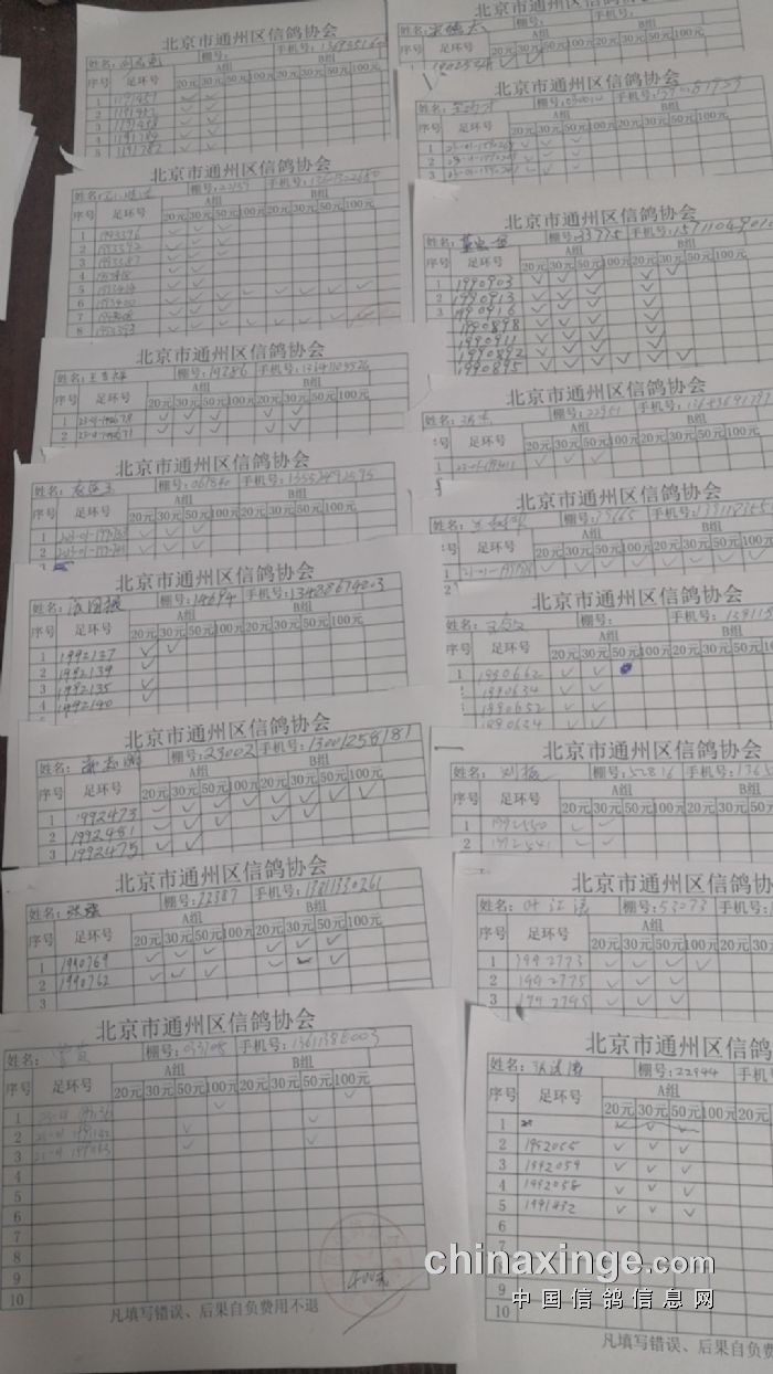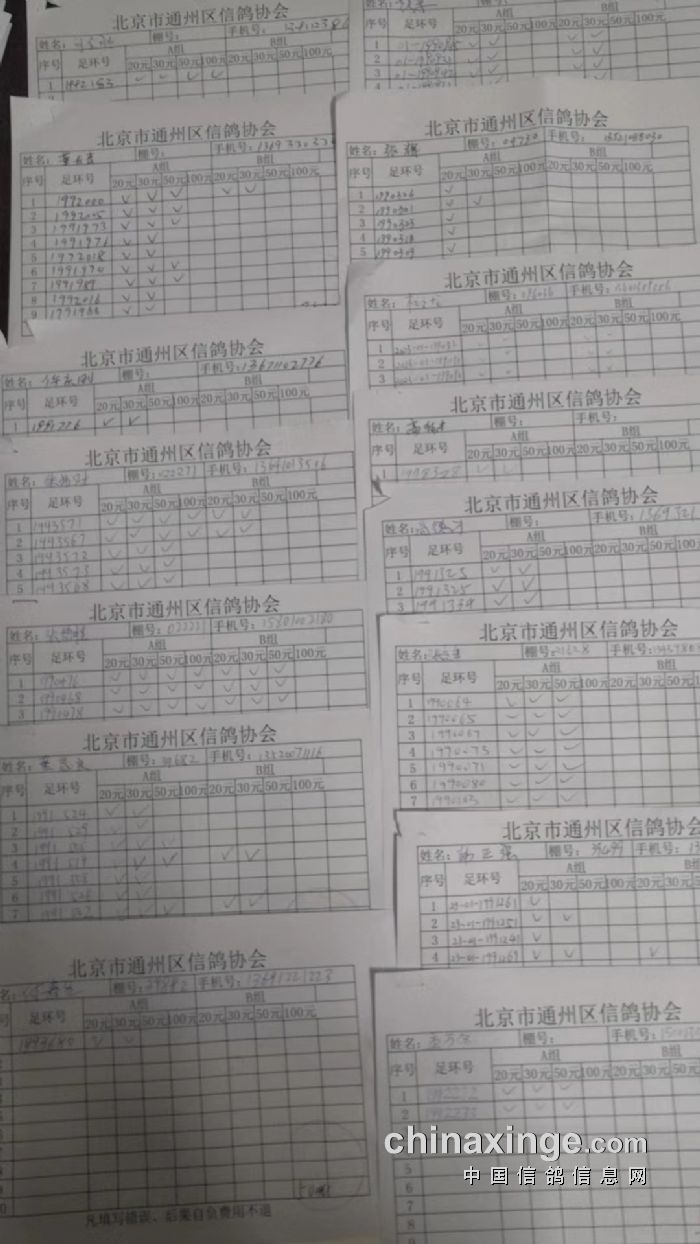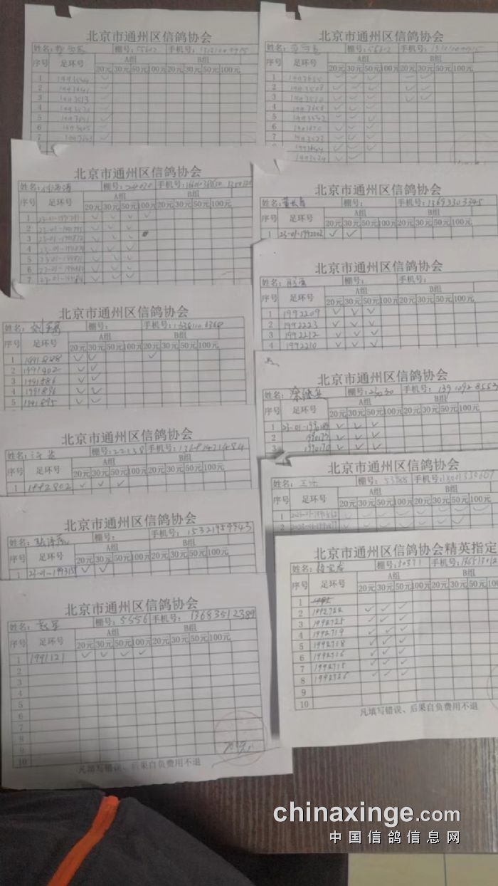 通州区信鸽协会2023年10月20日530公里特比环第二关现场AB组原单
