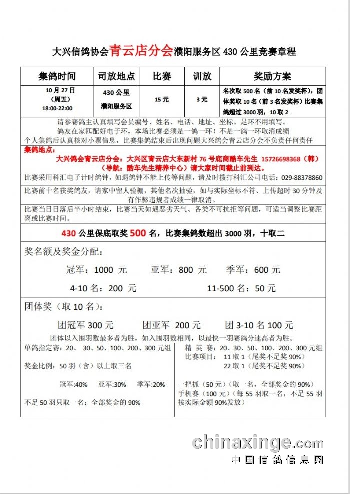 25年大兴“金洲杯”千元环一关有效归巢(按棚号)