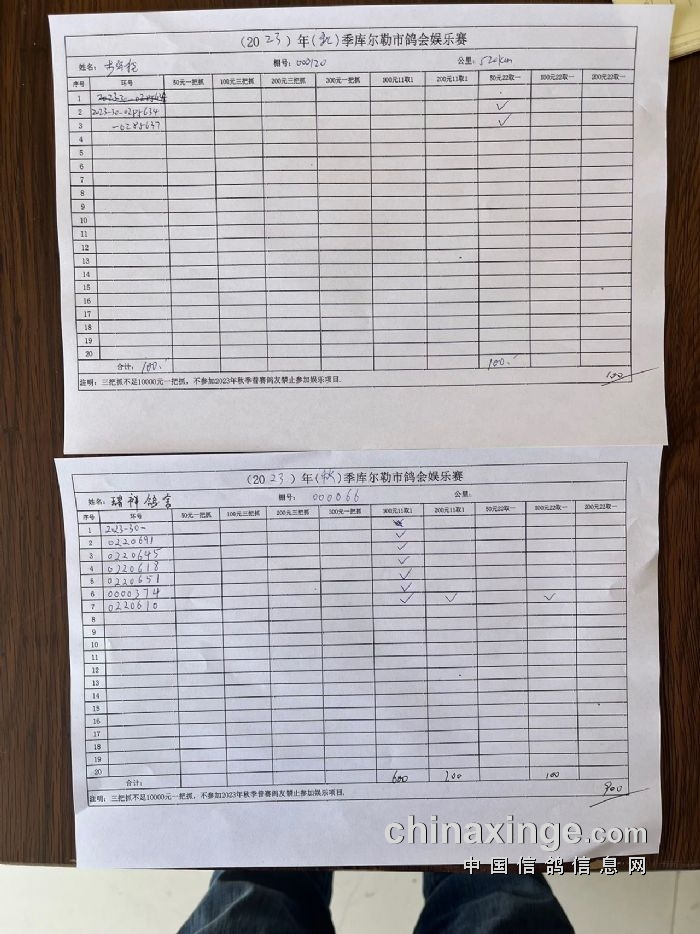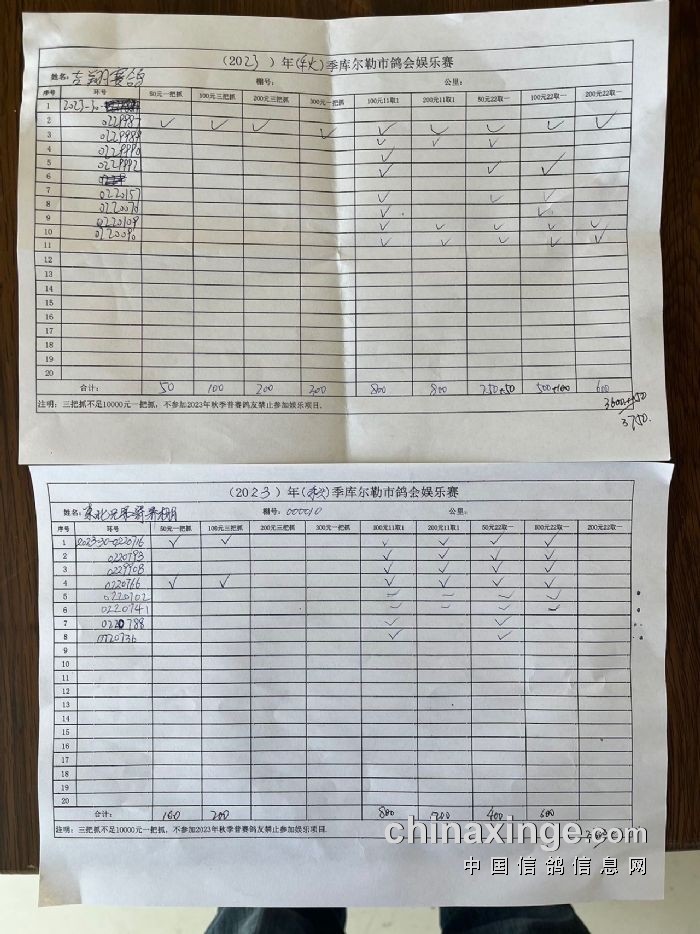 2023年秋第四关500公里指定鸽、聚宝盆明细