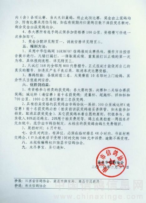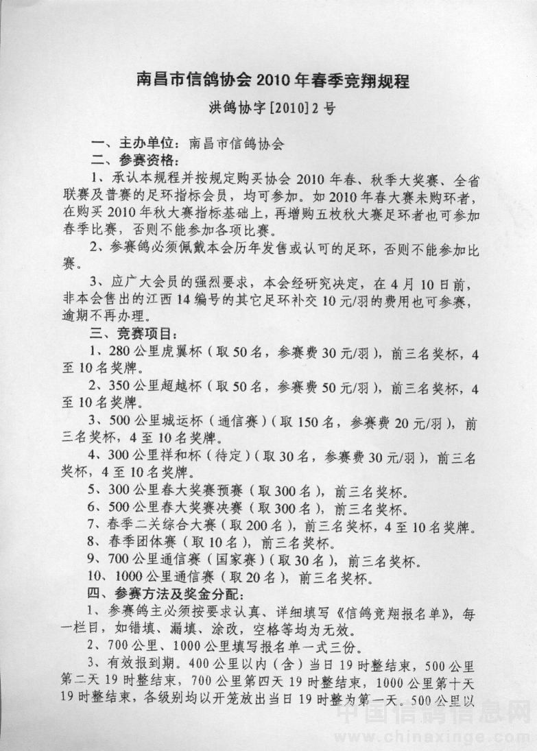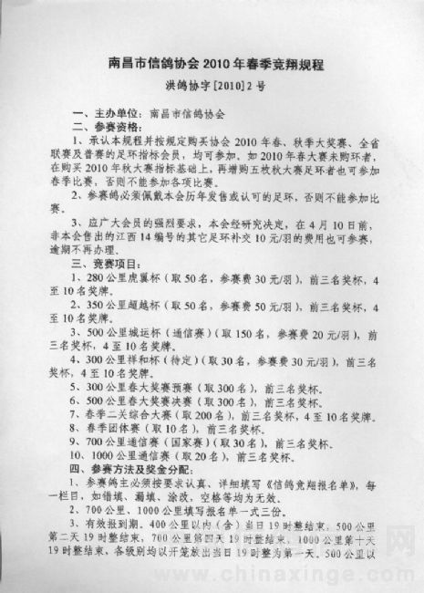 南昌市信鸽协会2025年春季大赛竟翔规程