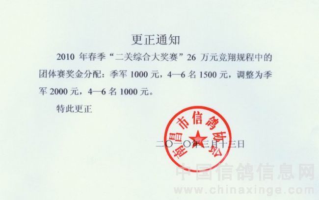 南昌市信鸽协会春季三关鸽王综合赛成绩