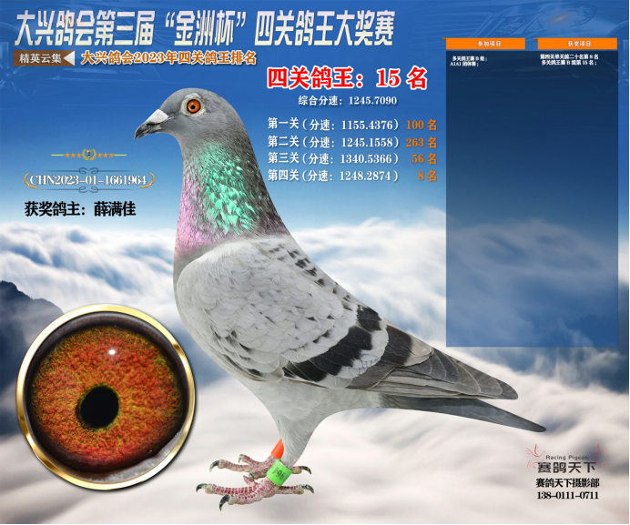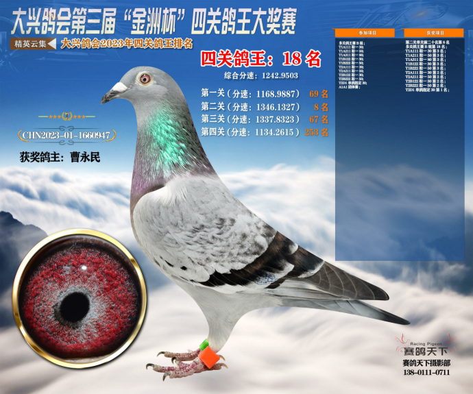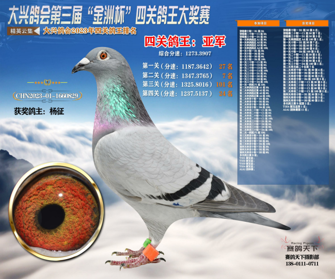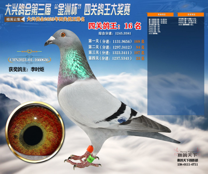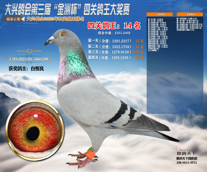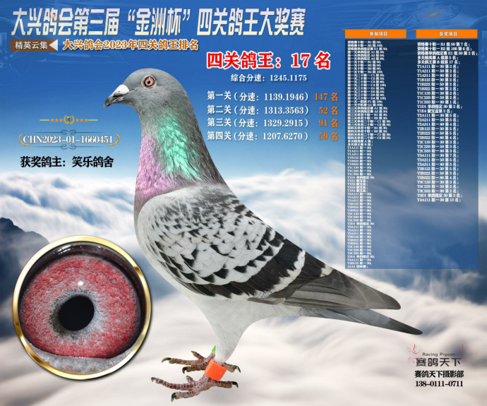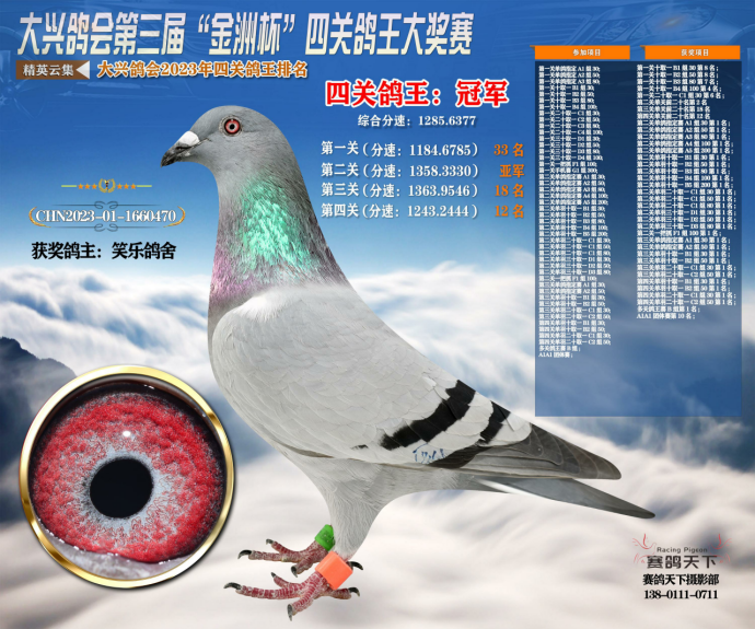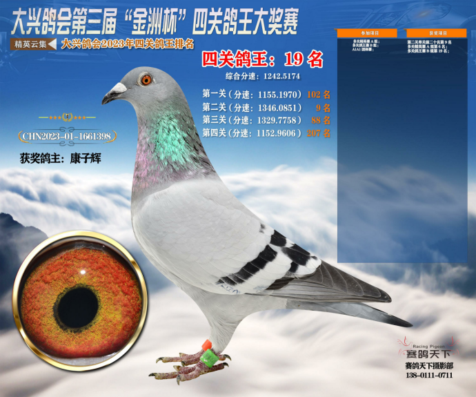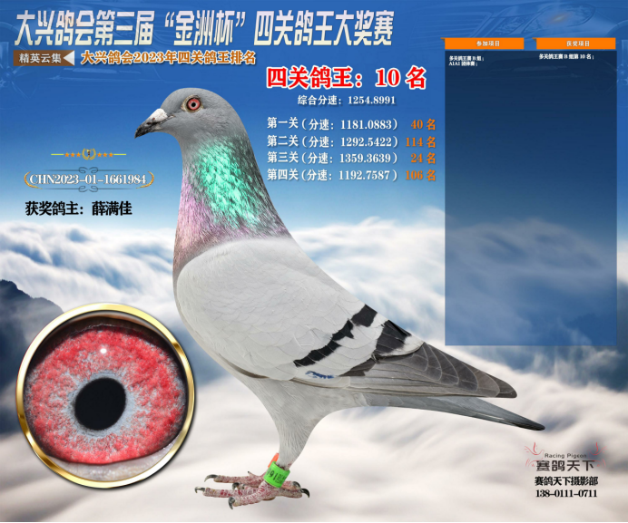 25年大兴“金洲杯”千元环一关有效归巢(按棚号)