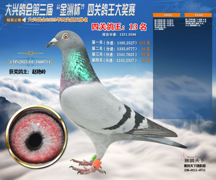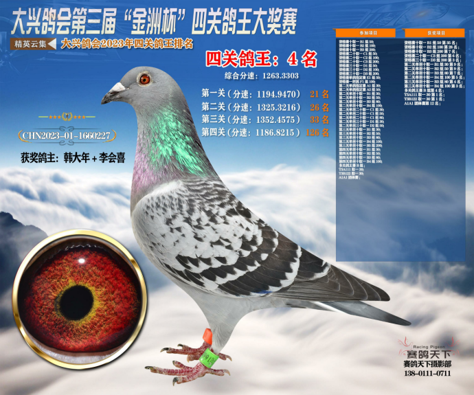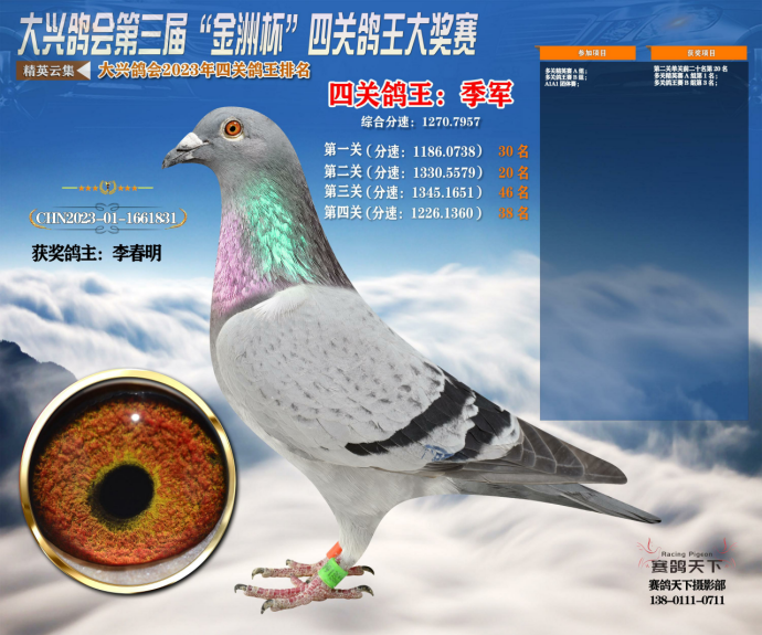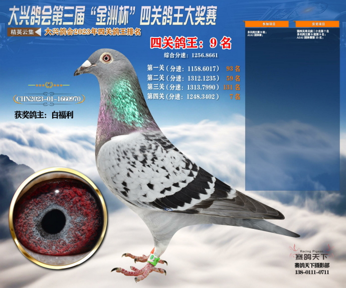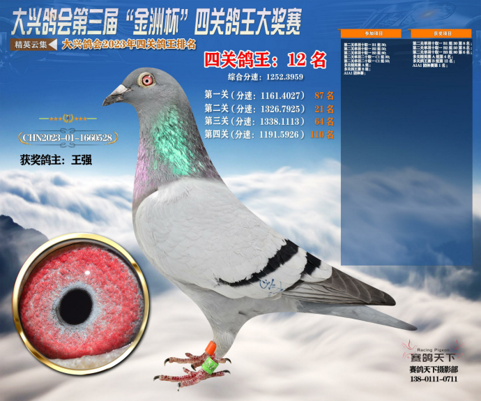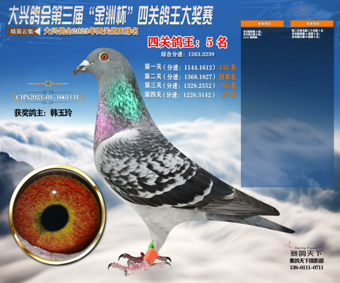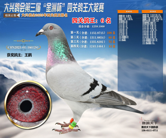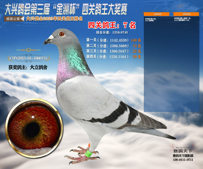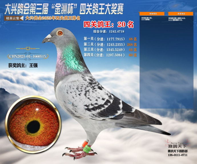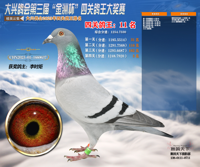 25年大兴“金洲杯”千元环一关有效归巢(按棚号)