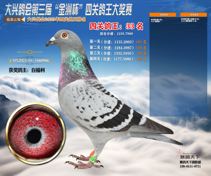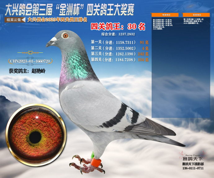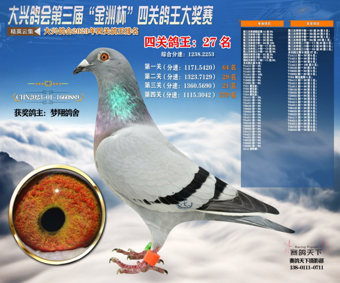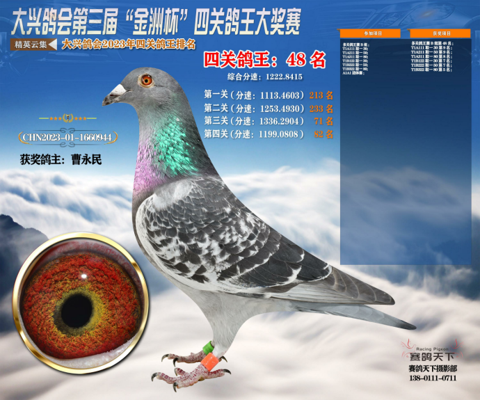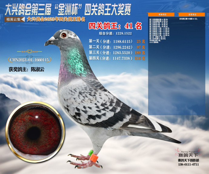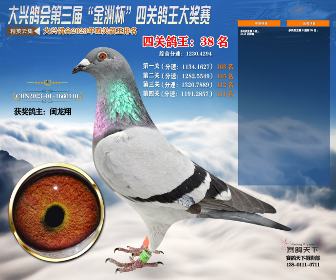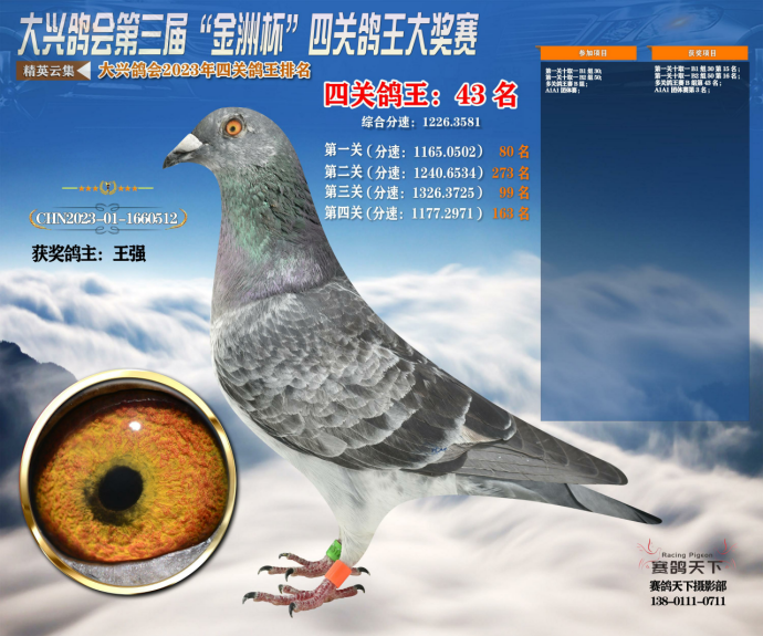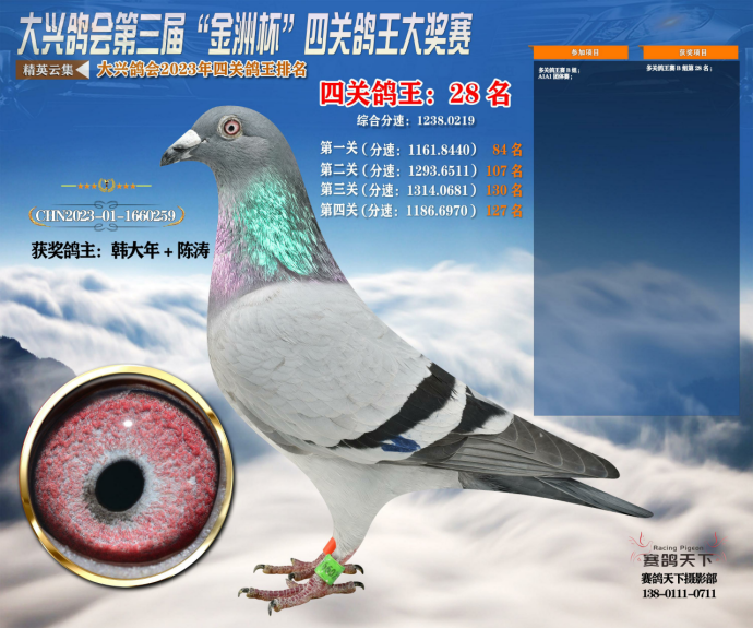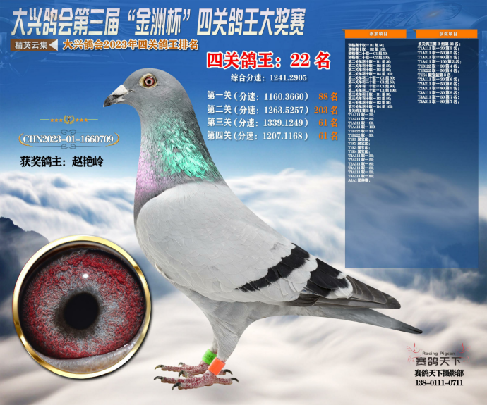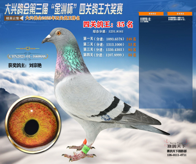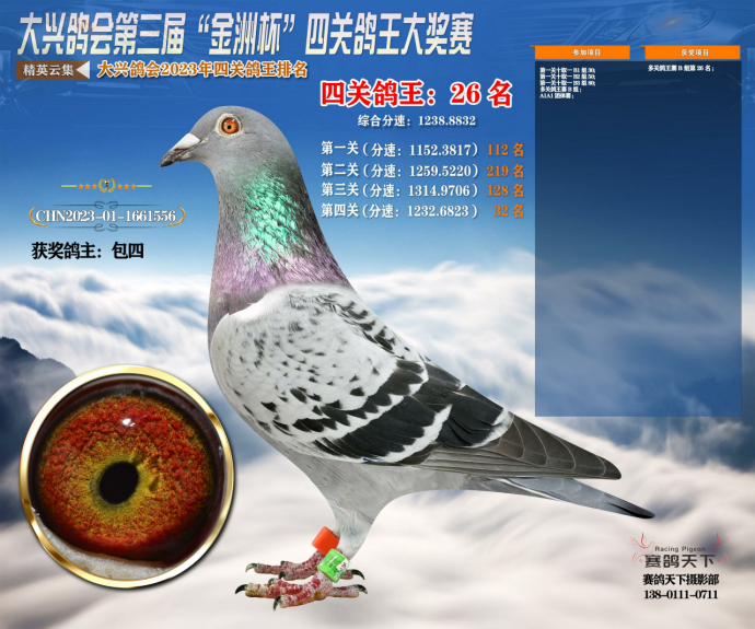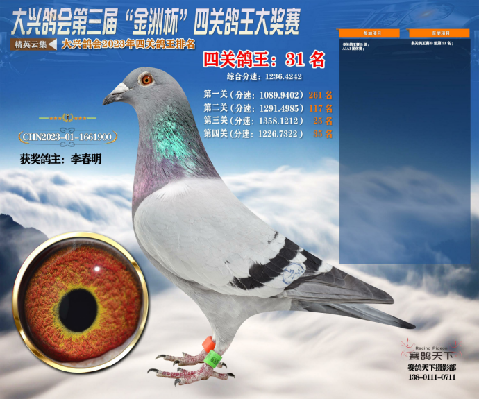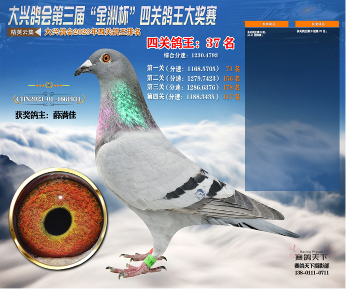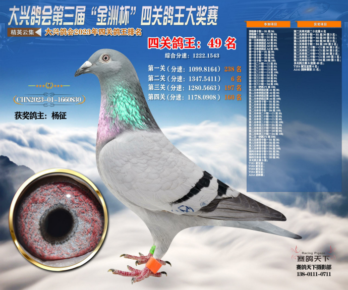 25年大兴“金洲杯”千元环一关有效归巢(按棚号)