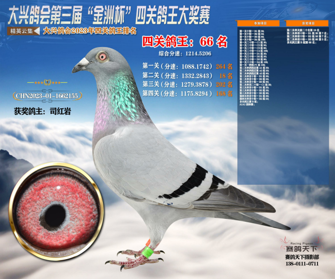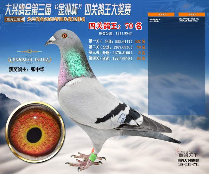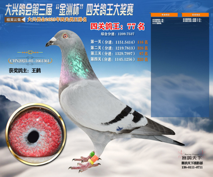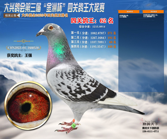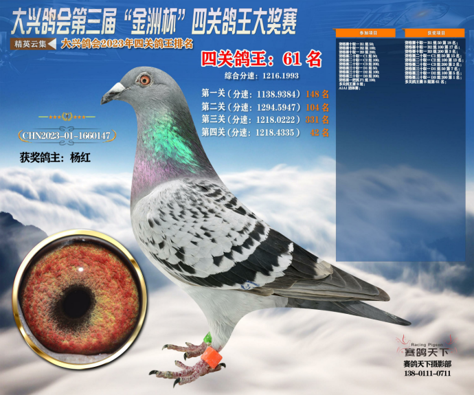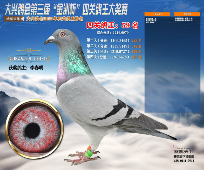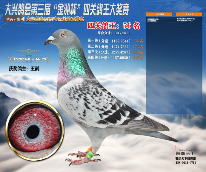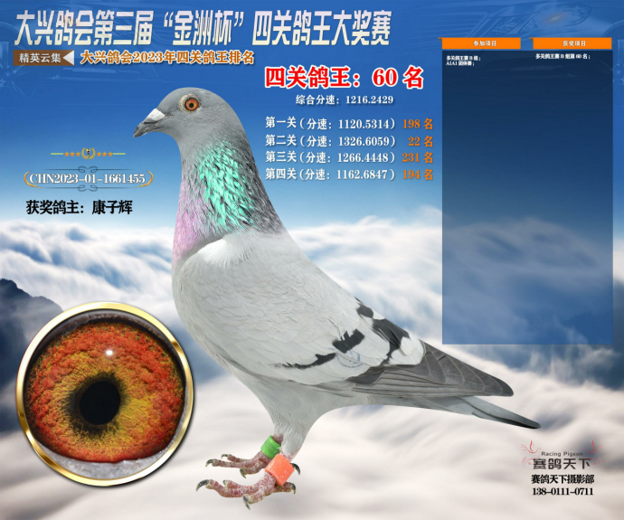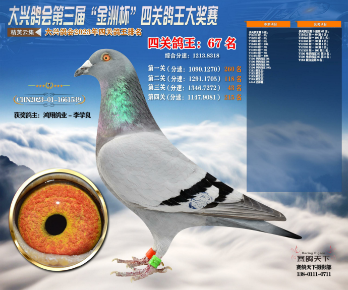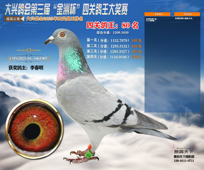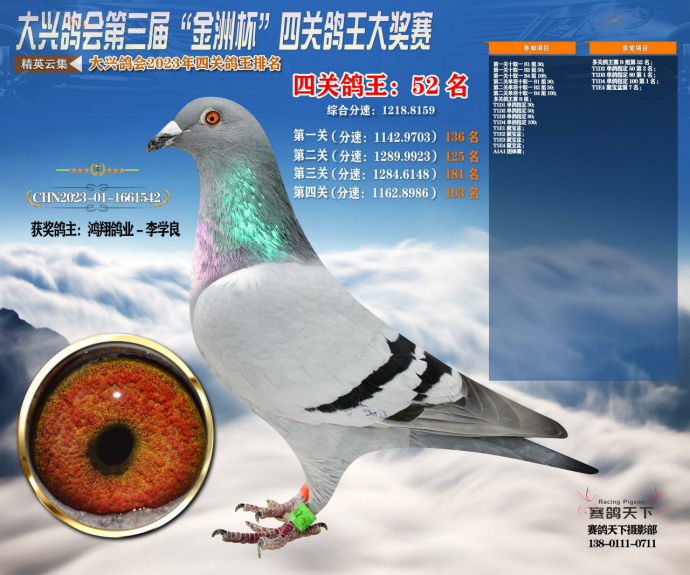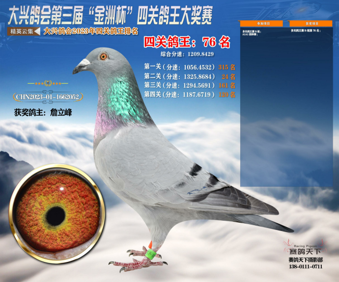 25年大兴“金洲杯”千元环一关有效归巢(按棚号)