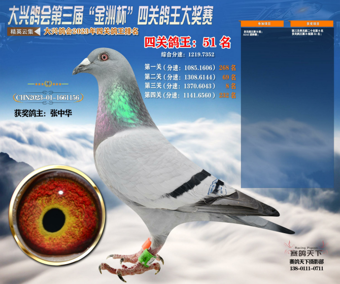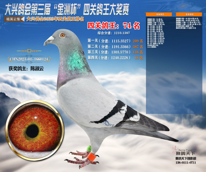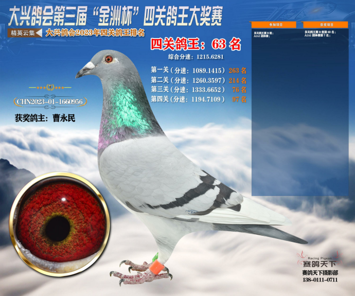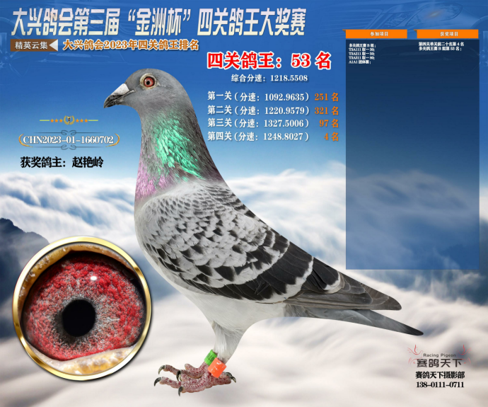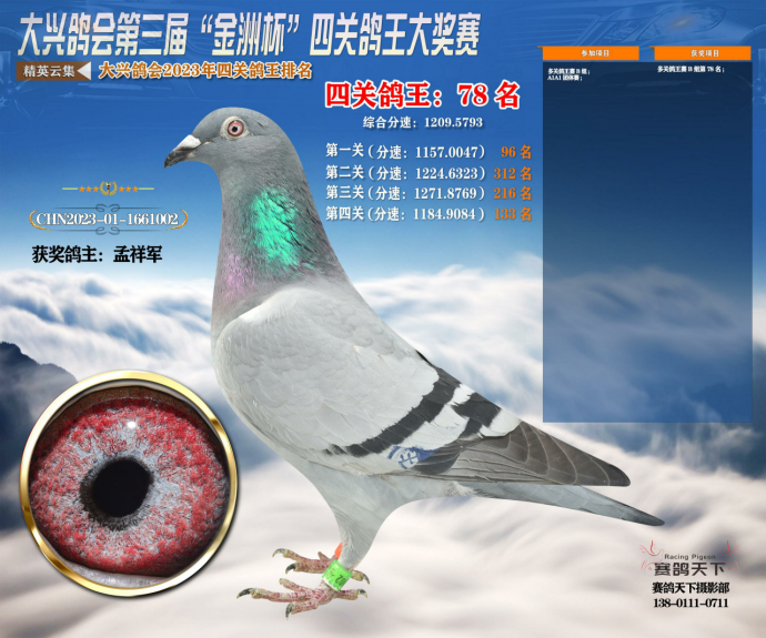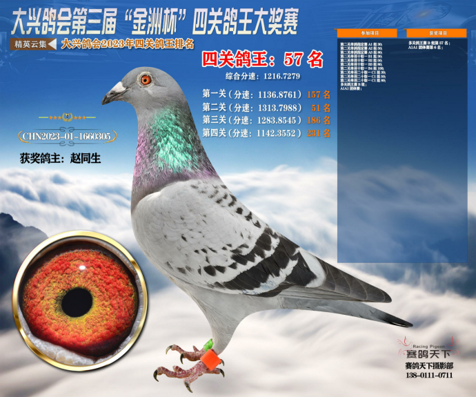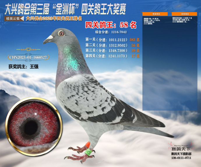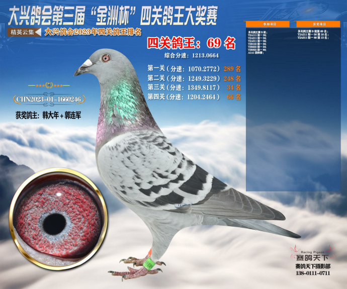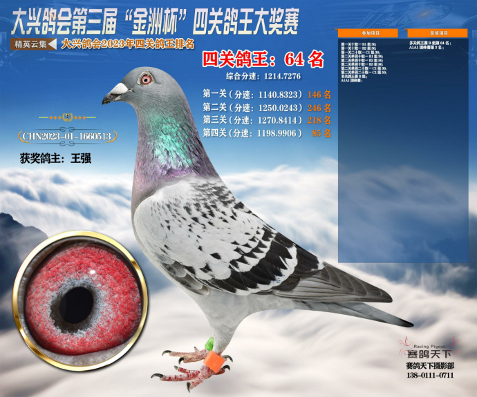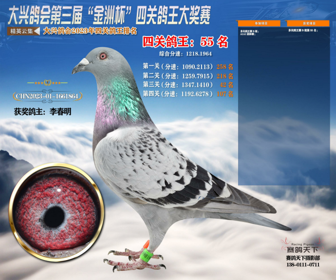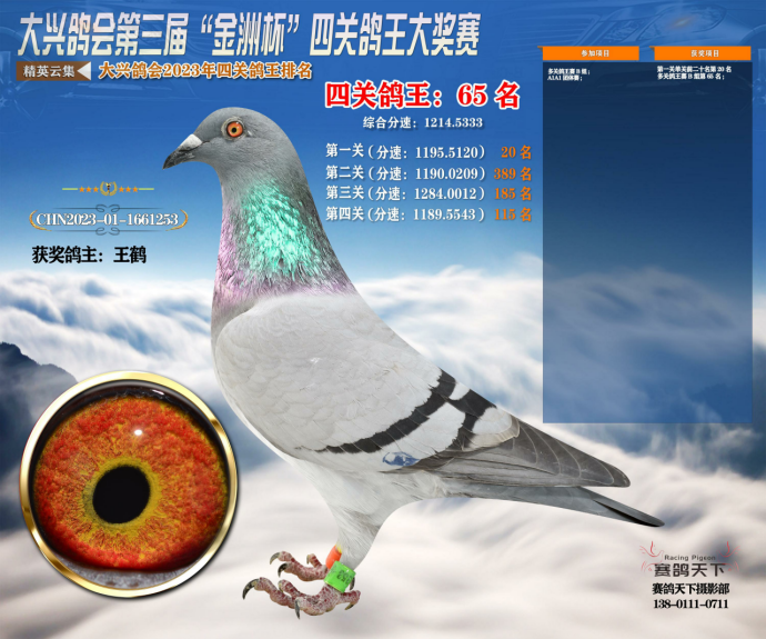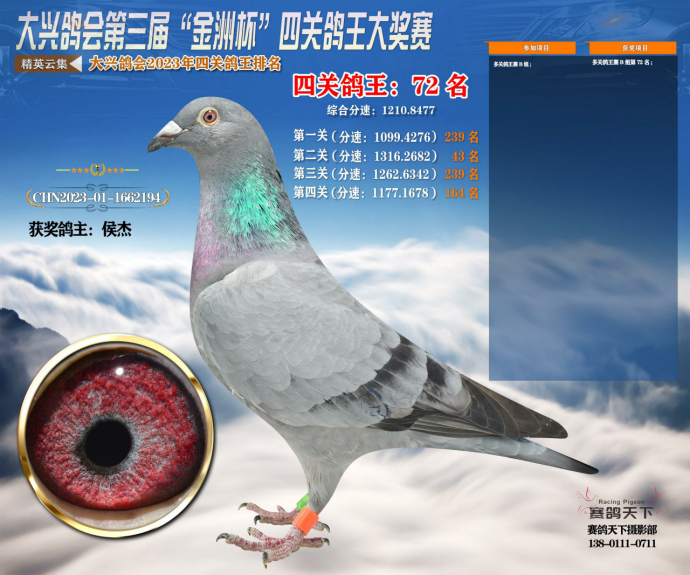 25年大兴“金洲杯”千元环一关有效归巢(按棚号)