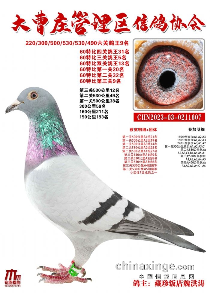 大曹庄鸽会25年秋220-280-340-380公里四关鸽王临时成绩