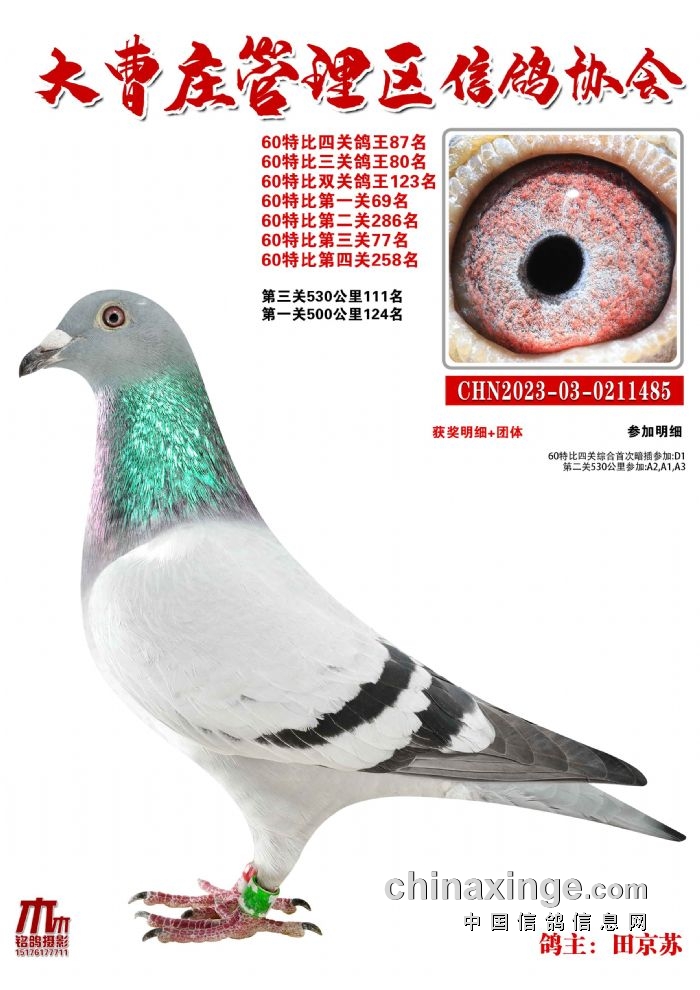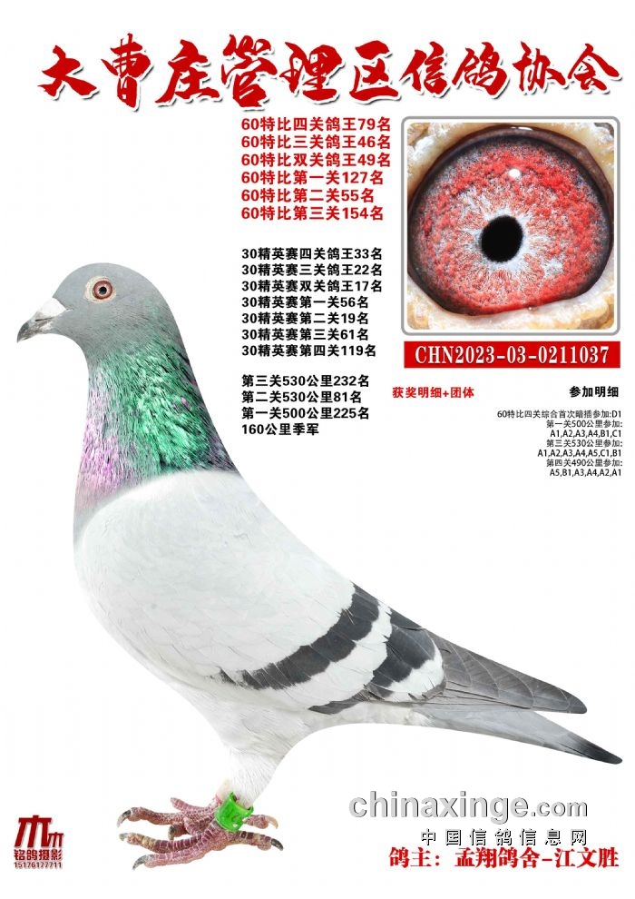 大曹庄管理区信鸽协会23年秋季60特比环四关鸽王优胜鸽61-90名欣赏