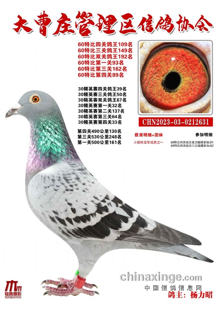 大曹庄管理区信鸽协会23年秋季60特比环四关鸽王优胜鸽91-180名欣赏