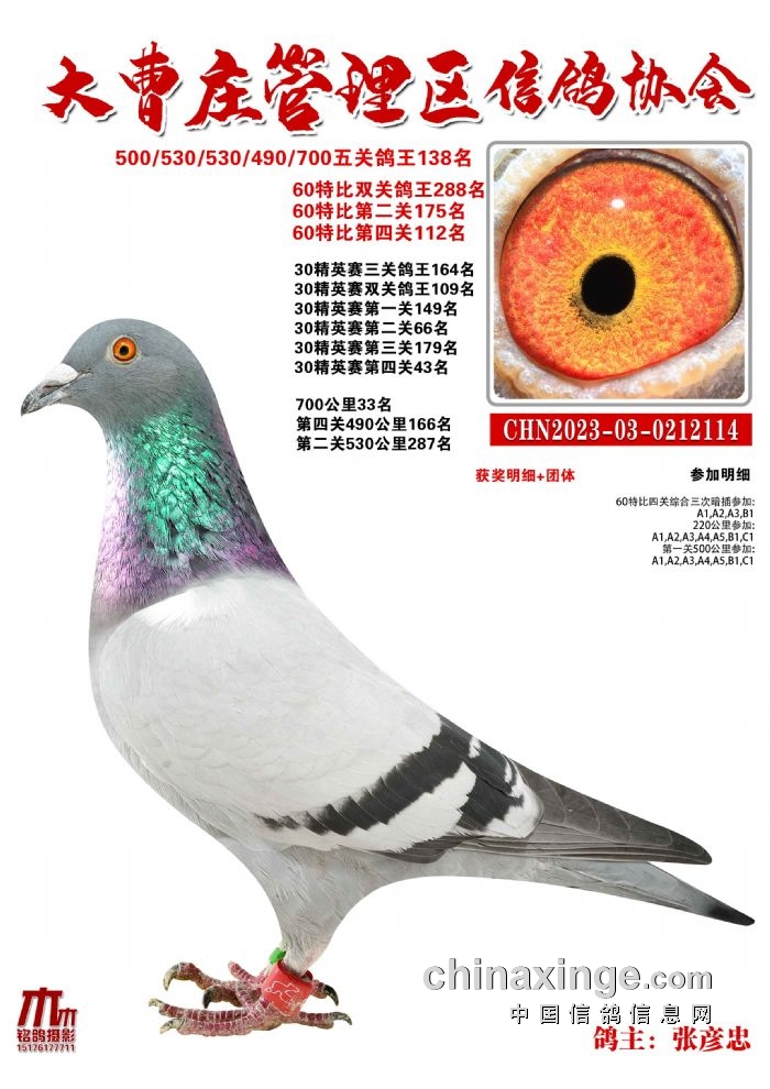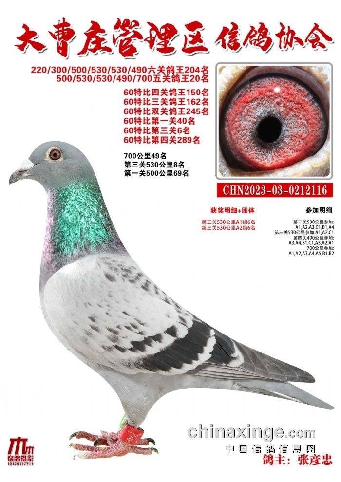 大曹庄管理区信鸽协会23年秋季700公里优胜鸽31-60名欣赏