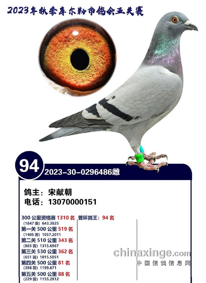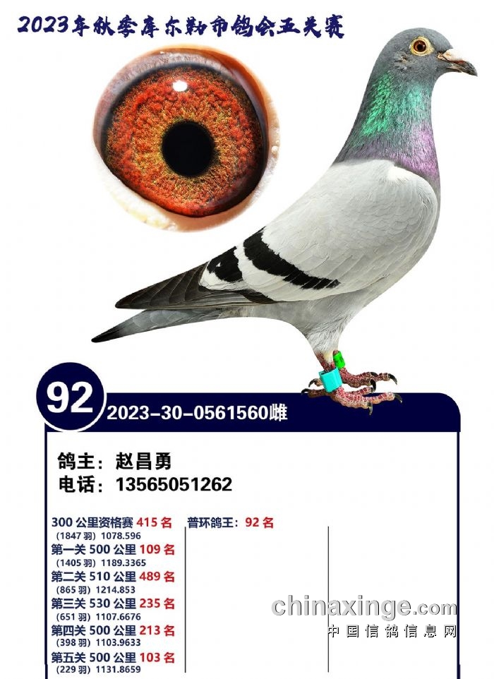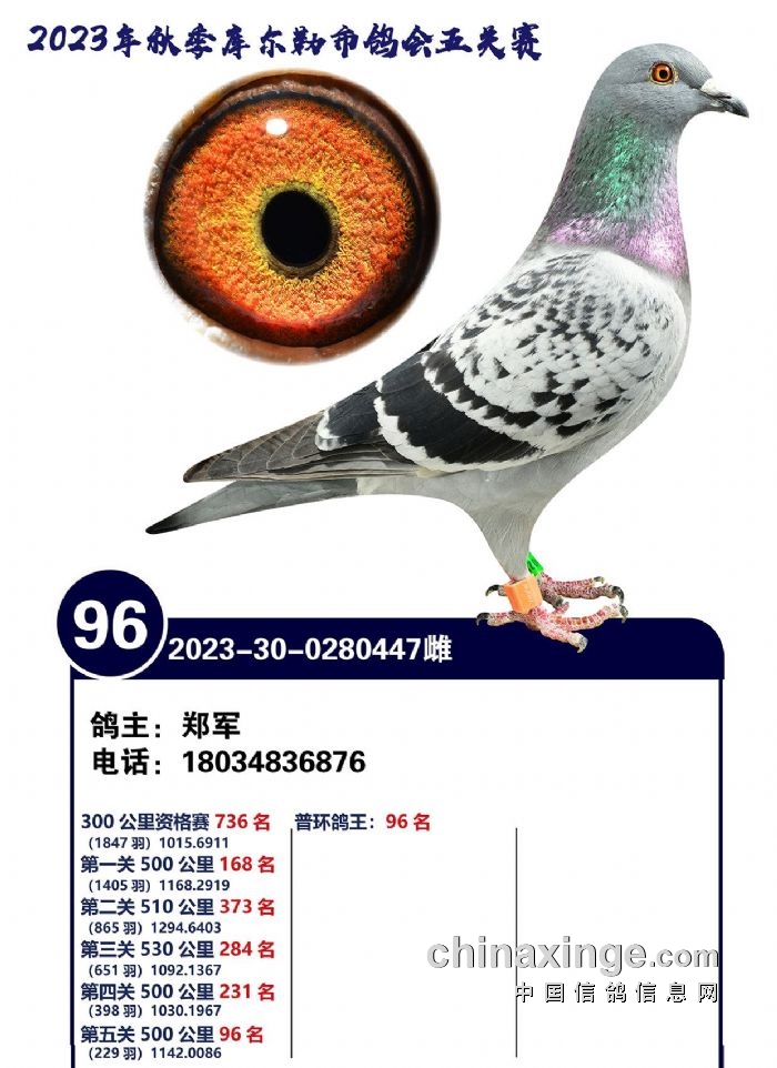 2023年秋季五关鸽王91-100名风采