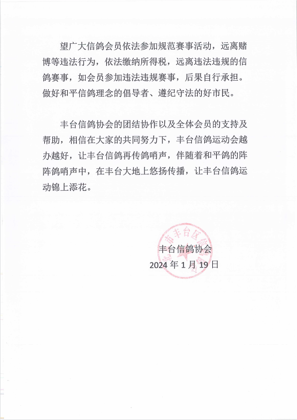 丰台信鸽协会特比环第三关停钟,开钟时间