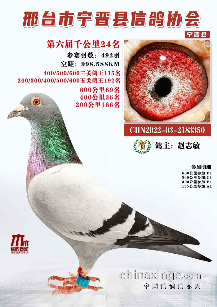 宁晋信鸽协会第六届千公里比赛,空距放飞到位,归巢赛鸽最远参赛距离1050公里,最近的985公里。